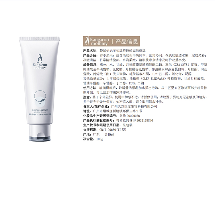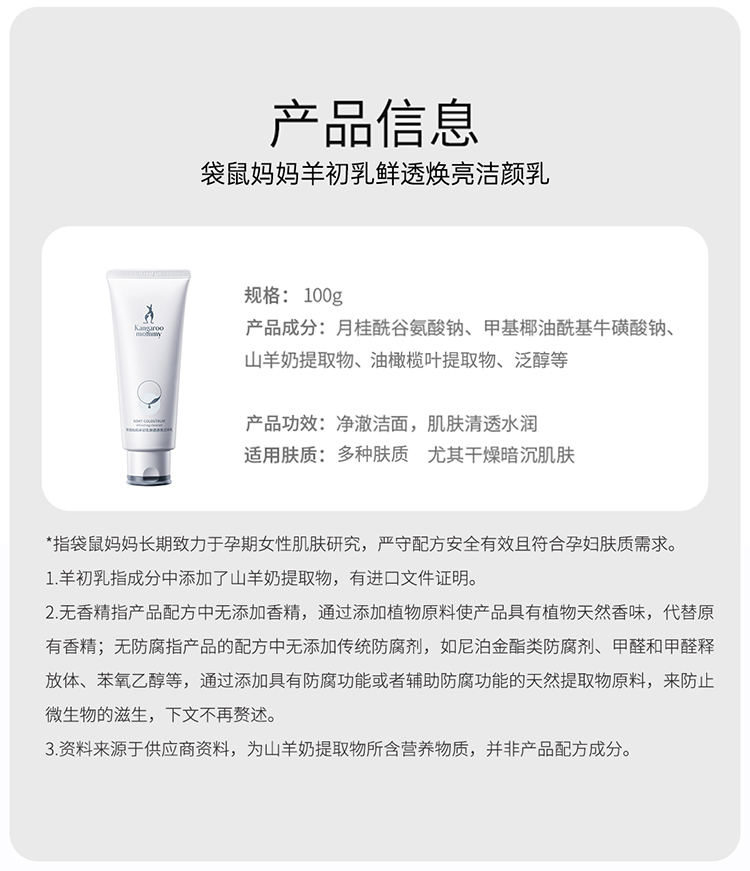 【焕亮洁面乳】准孕期可用 清洁毛孔 水润不干 改善暗哑 羊初乳鲜透焕采洁颜乳(100g)