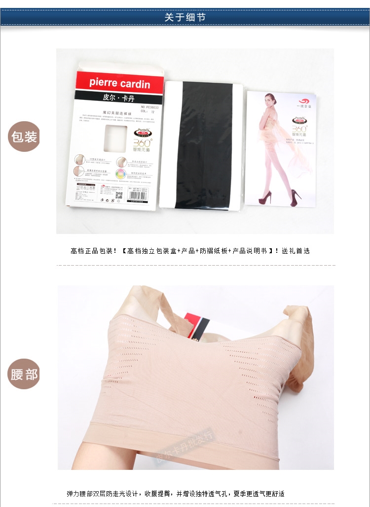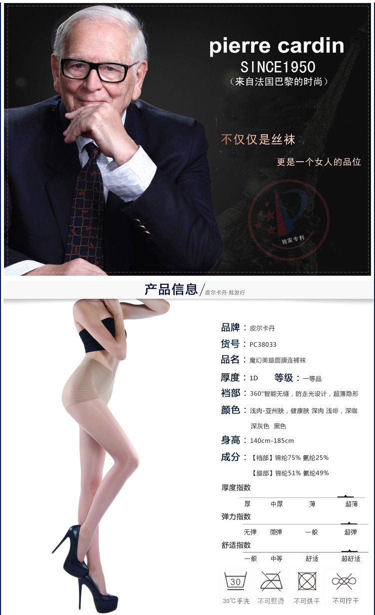 皮尔卡丹德国丝1D超薄防走光免穿底裤丝袜 粉底连裤袜 新PC38033