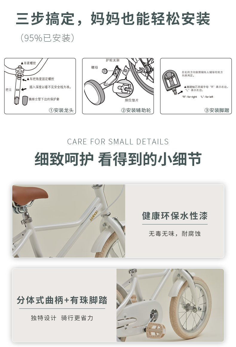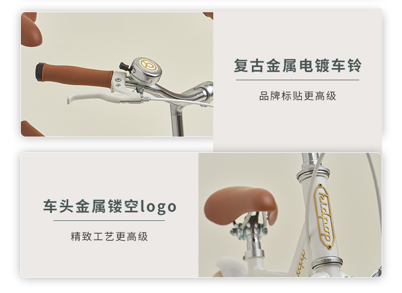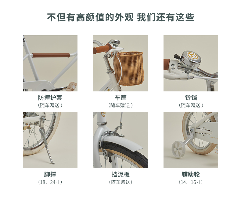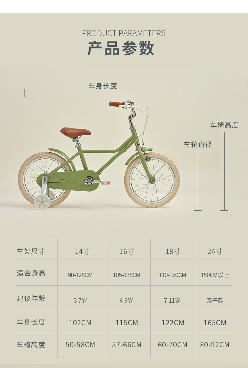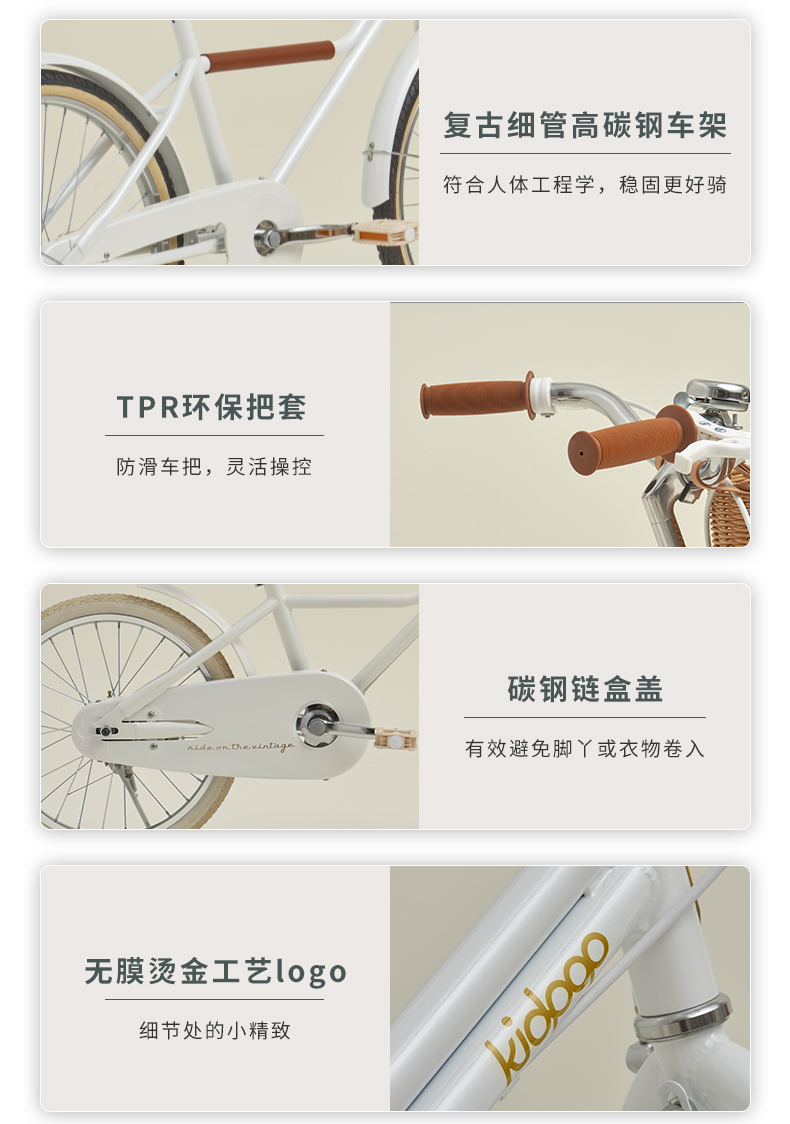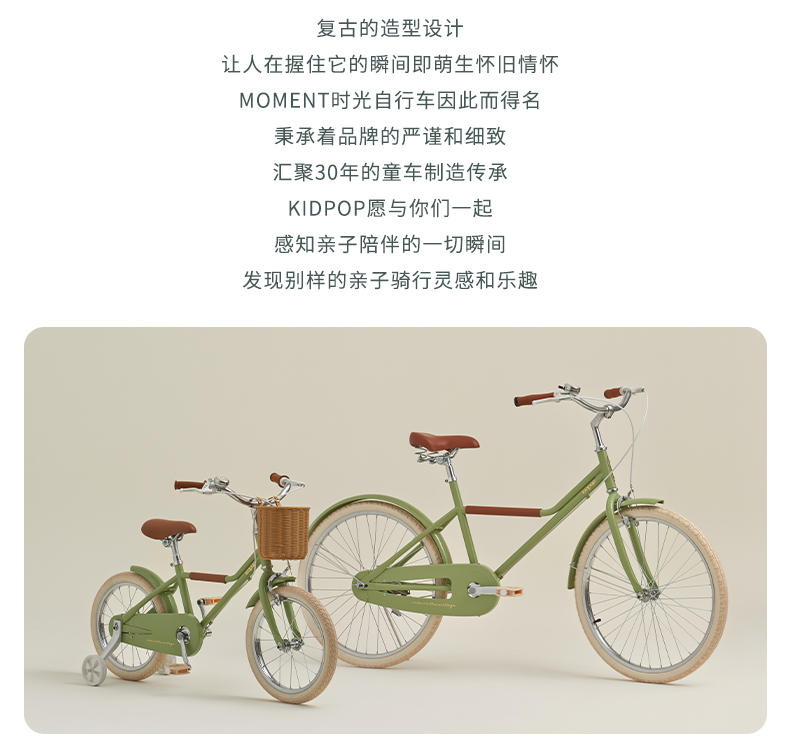 Kidpop 亲子同款 | 儿童自行车脚踏车可调节车头坐垫 经典复古风14-18寸 3-12岁 成人亲子款24寸