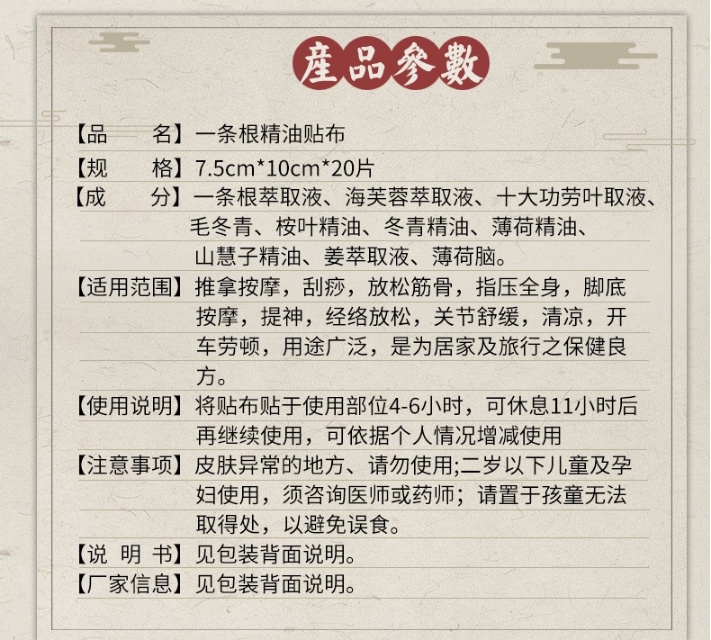 【到手2包】台湾金牌一条根膏贴/2包(单包7.5cm*10cm*20贴)