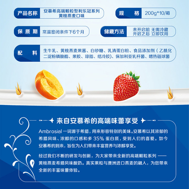 伊利安慕希希腊风味酸奶(黄桃+燕麦)200ml*10