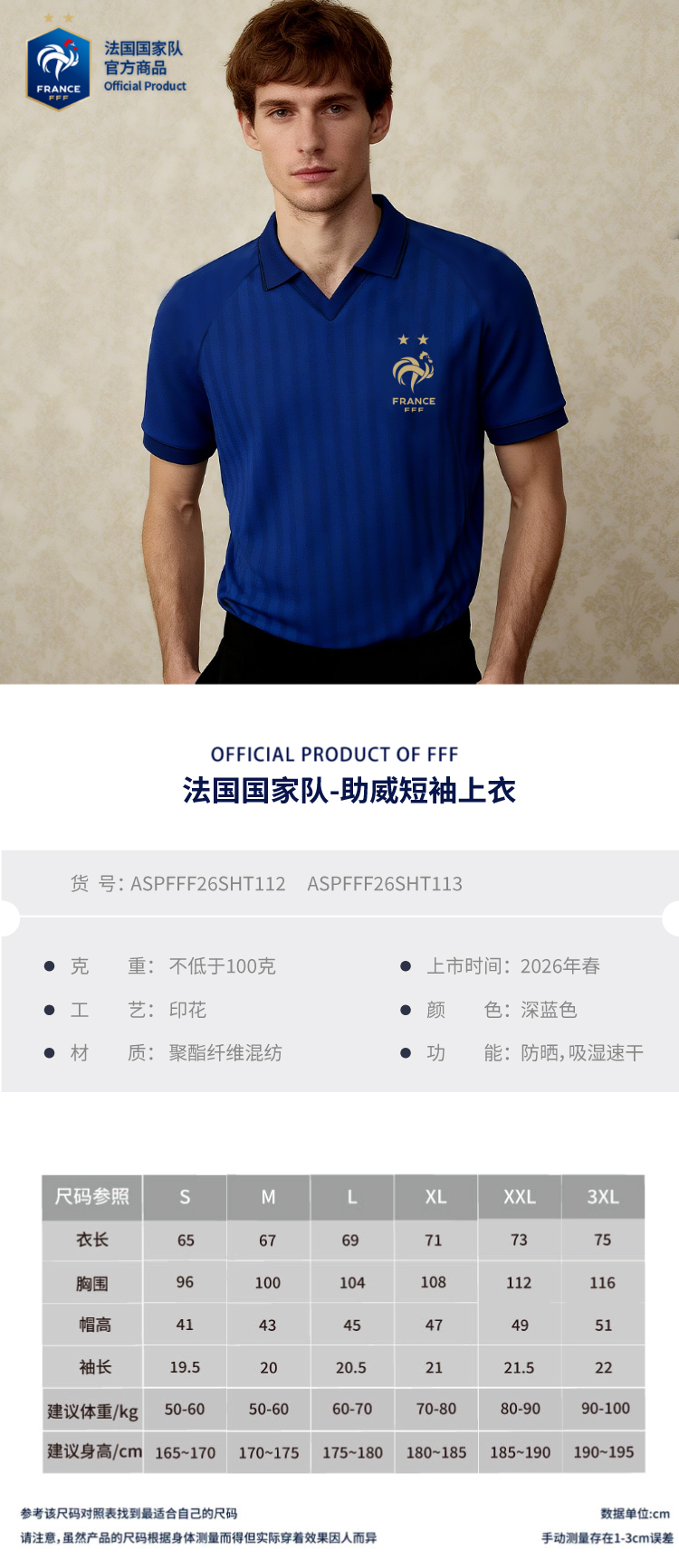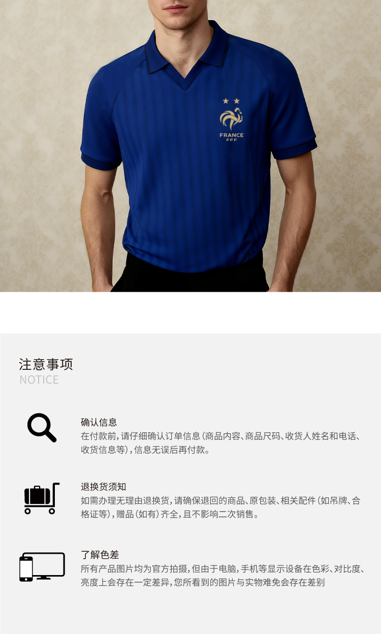 【国家队官方比赛助威服】|蓝色条纹速干运动T恤polo世界杯法国