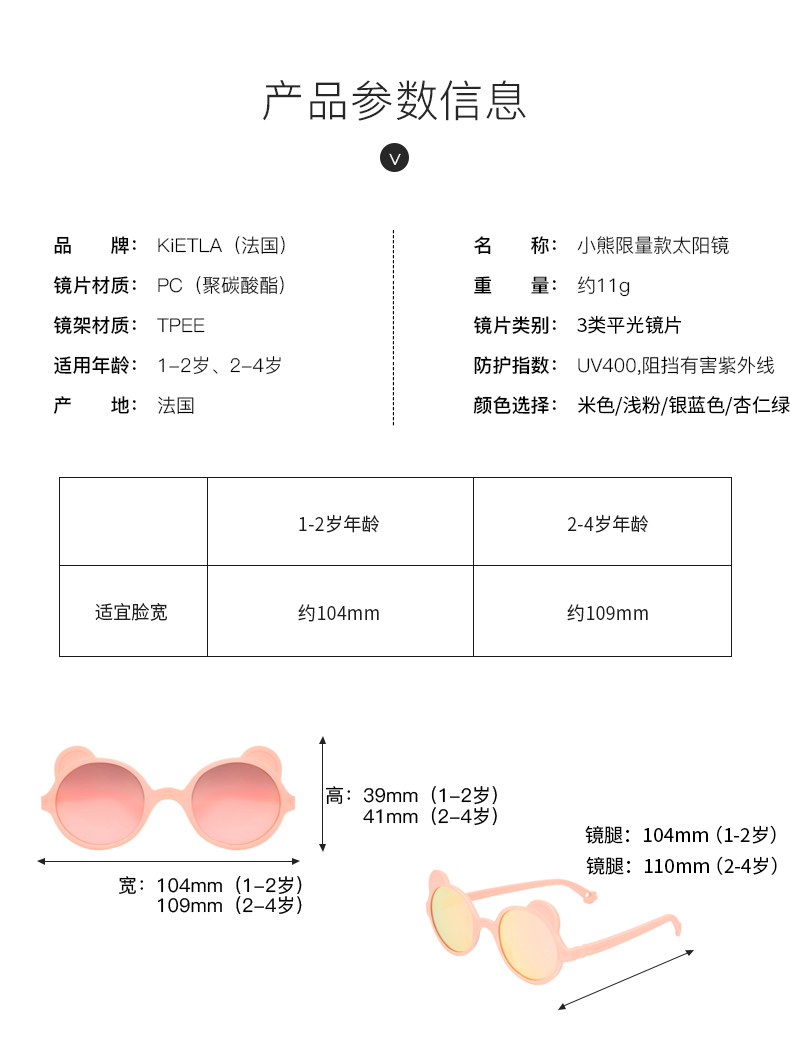 【代发】Ki ET LA法国 (小熊限量款)1-2、2-4岁儿童防晒防紫外线太阳镜