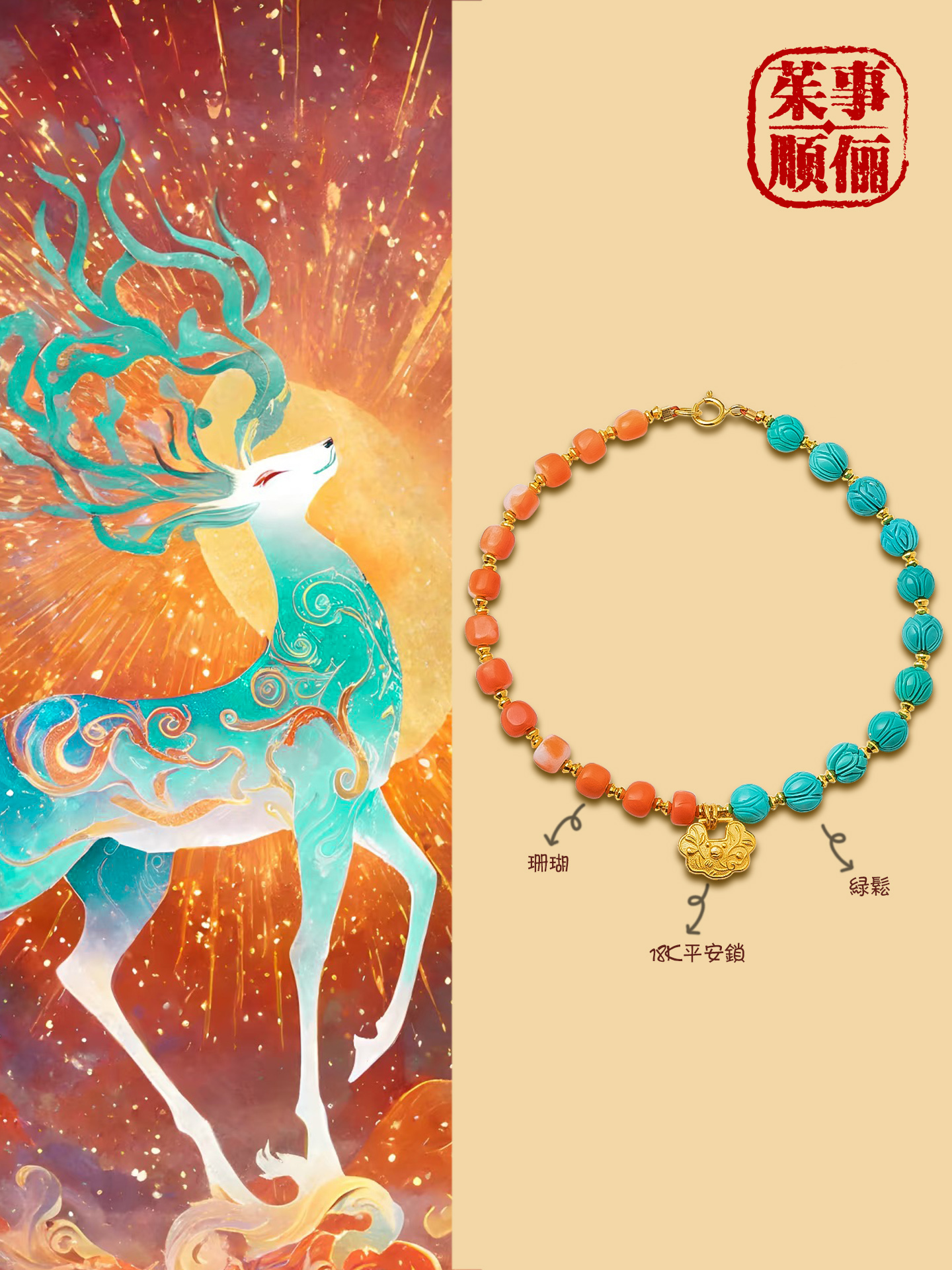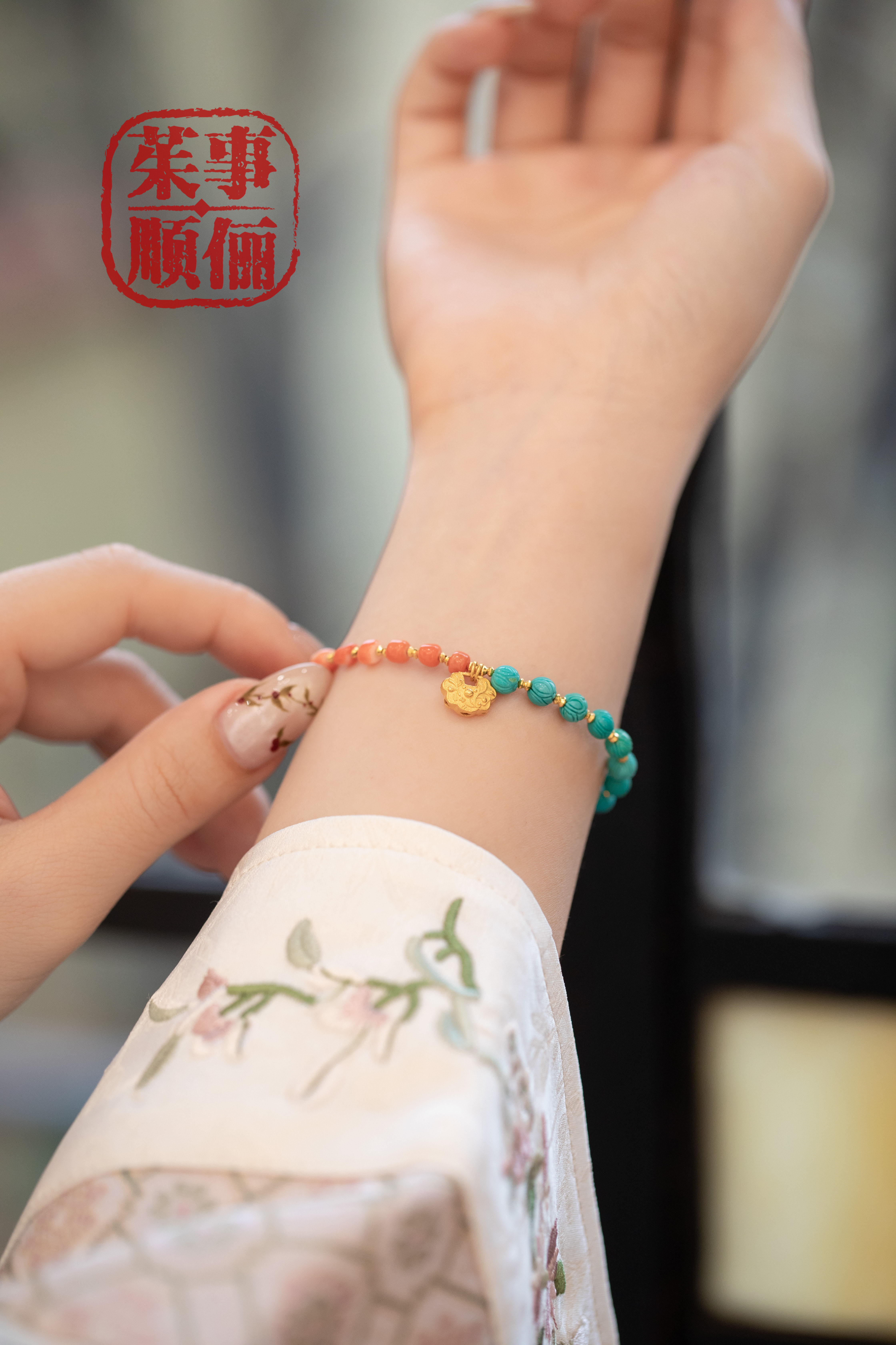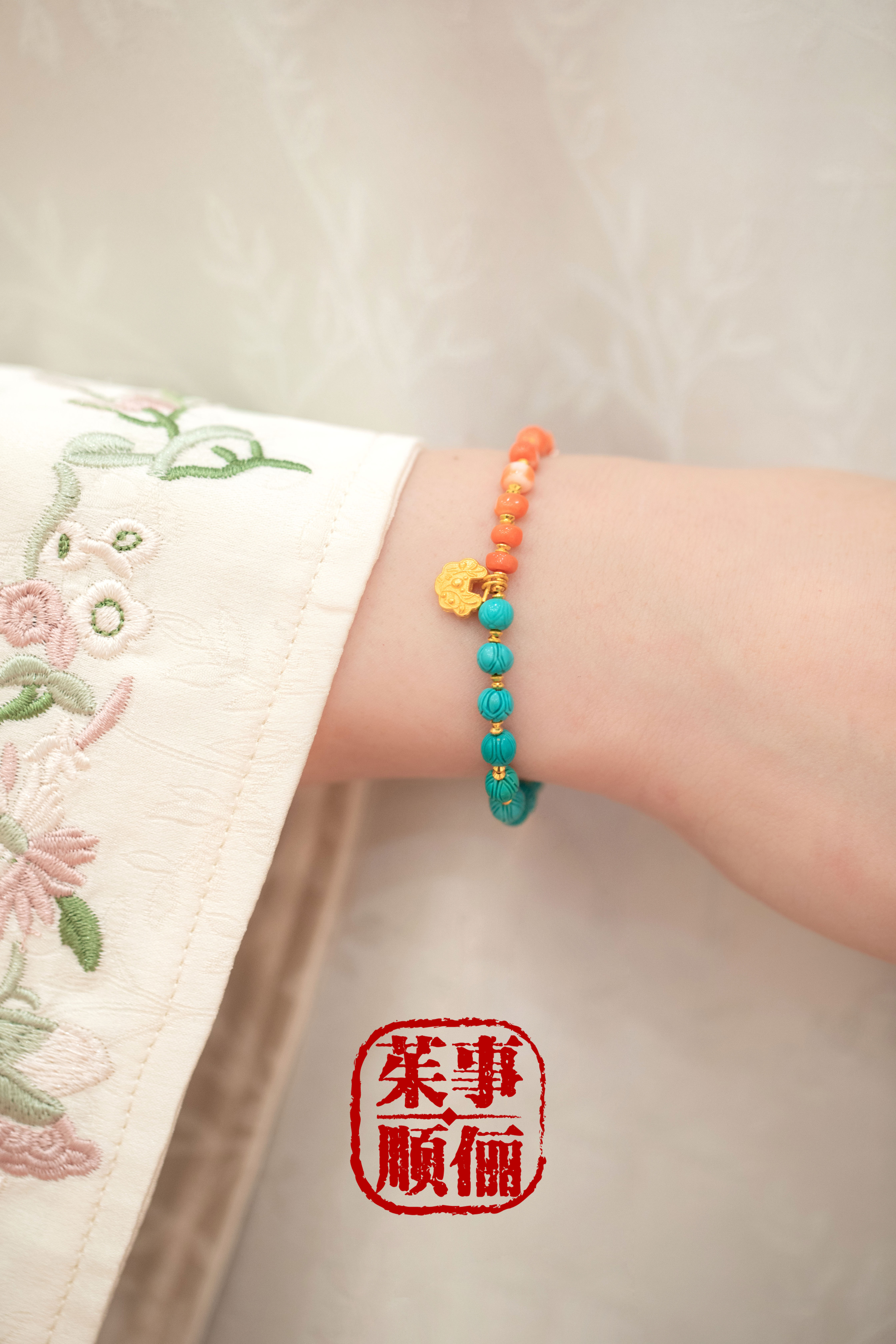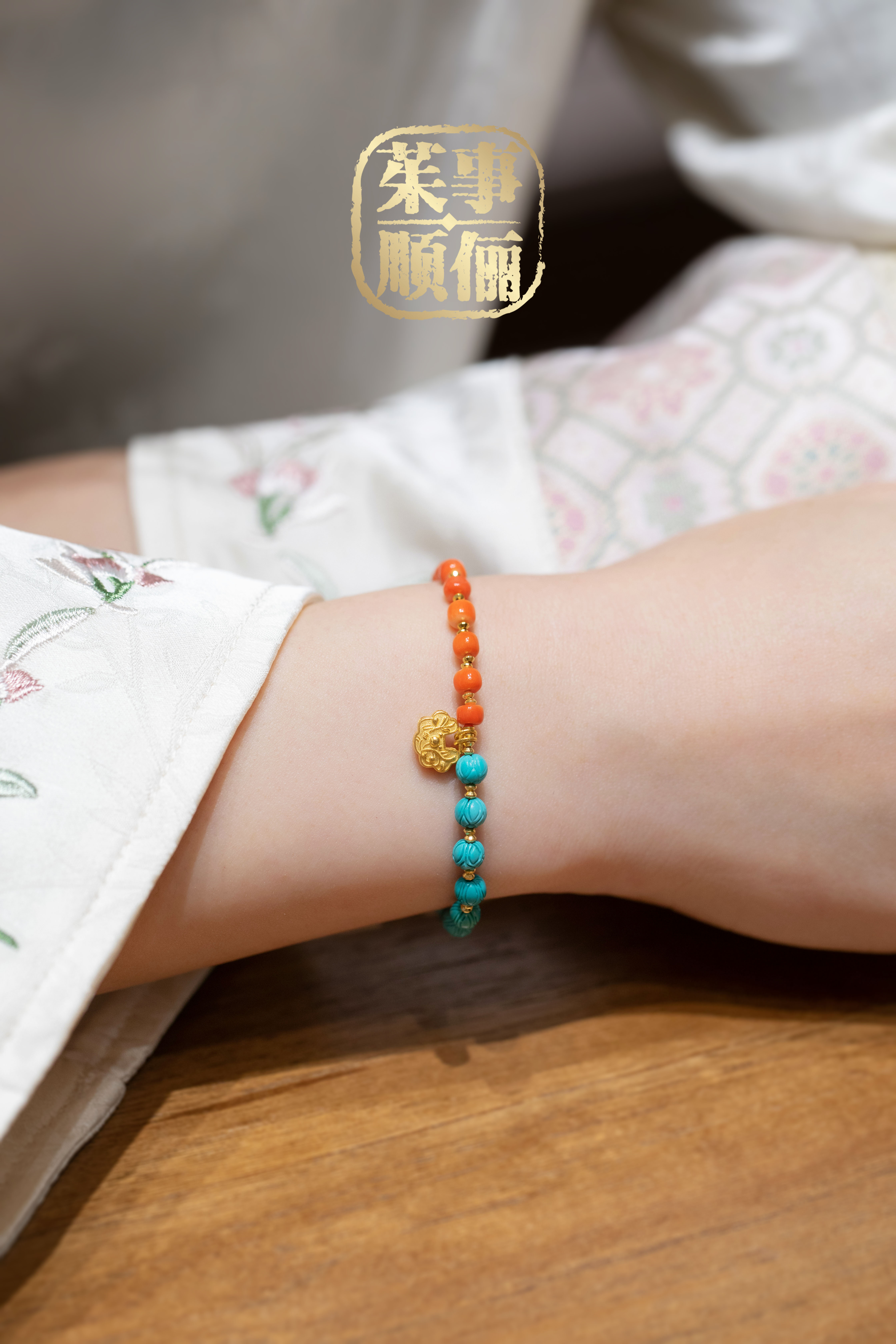 【茱事顺俪 18K黄金绿松石手链】