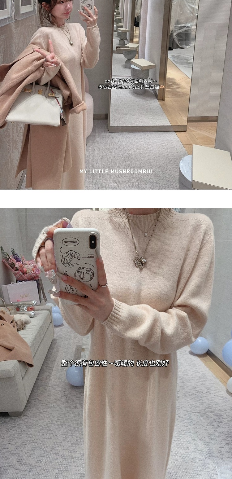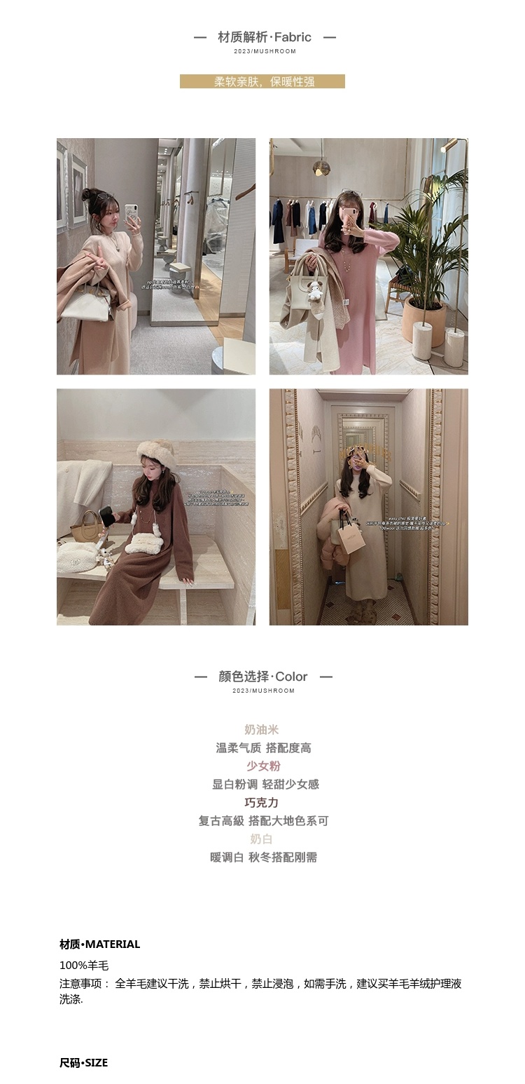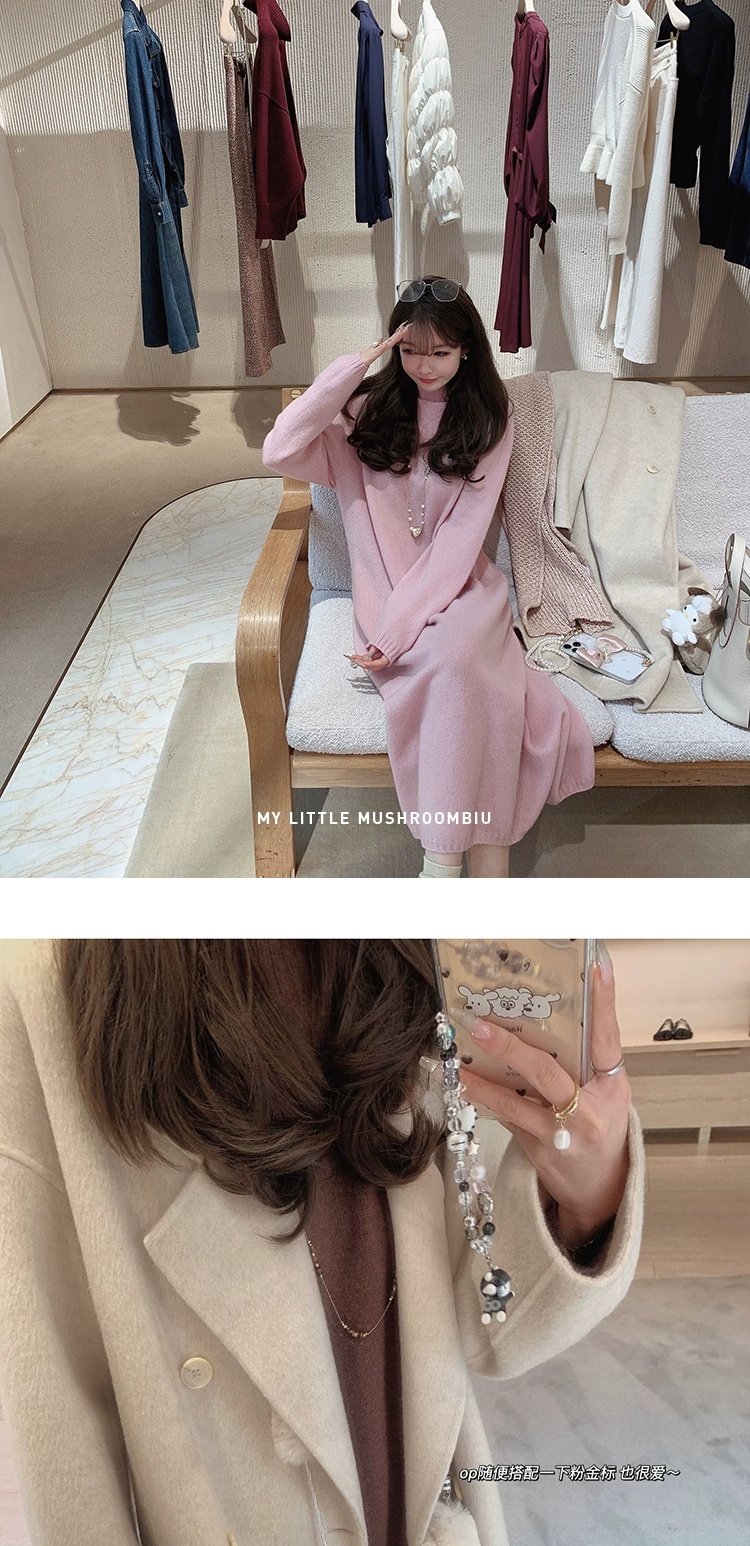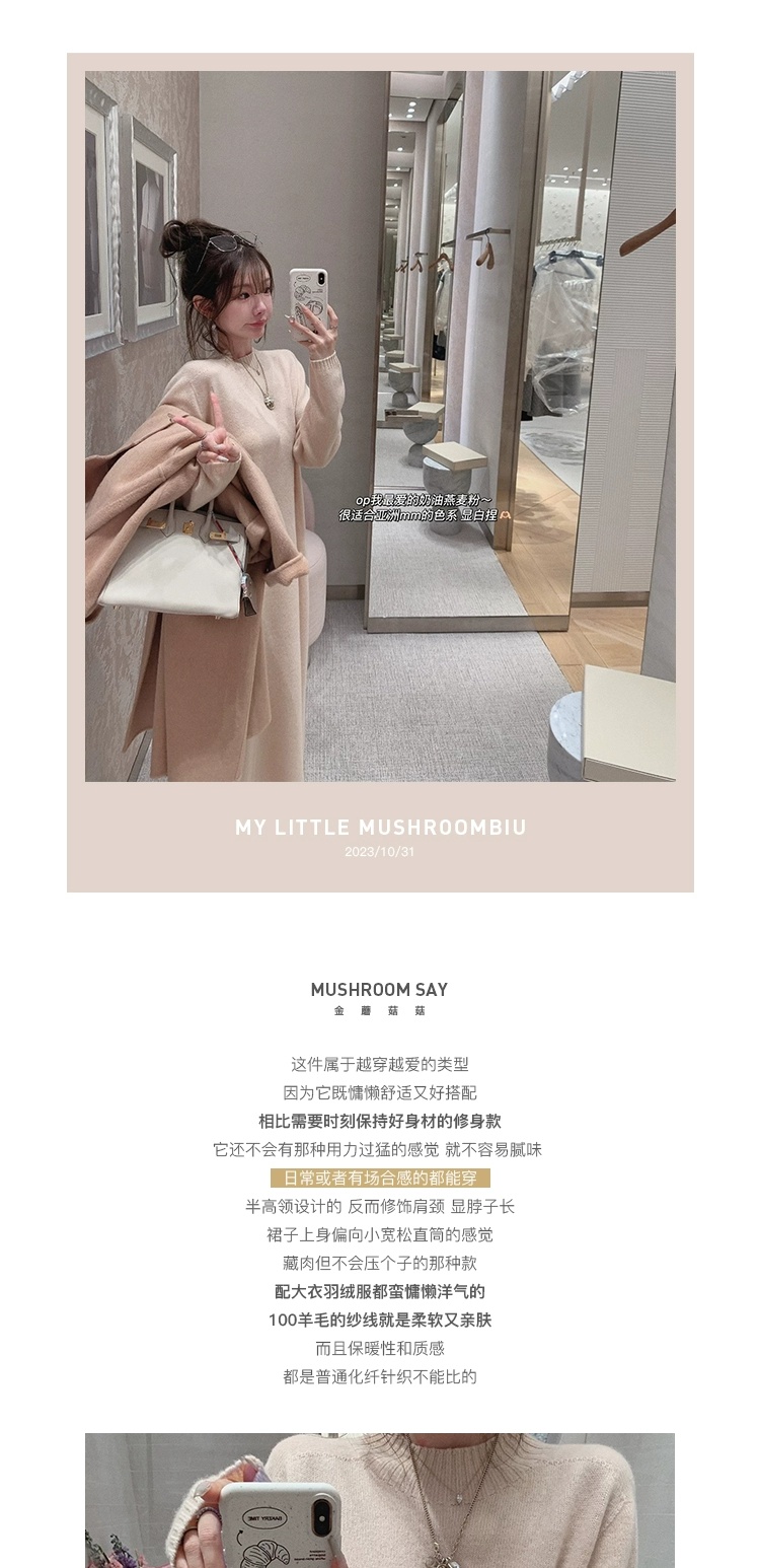 金蘑菇菇 懒人针织裙/ 极简慵懒宽松半高领毛衣裙