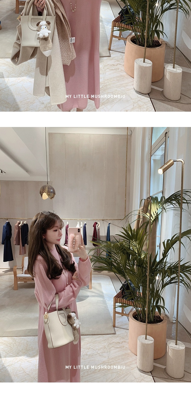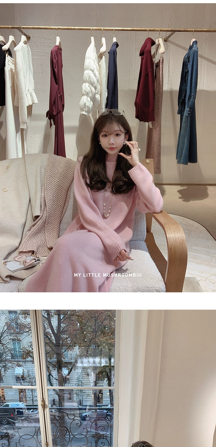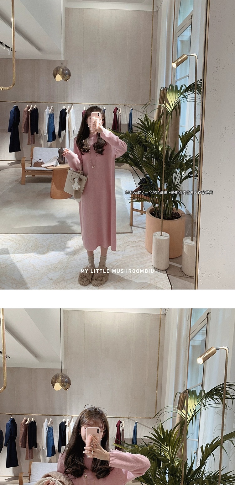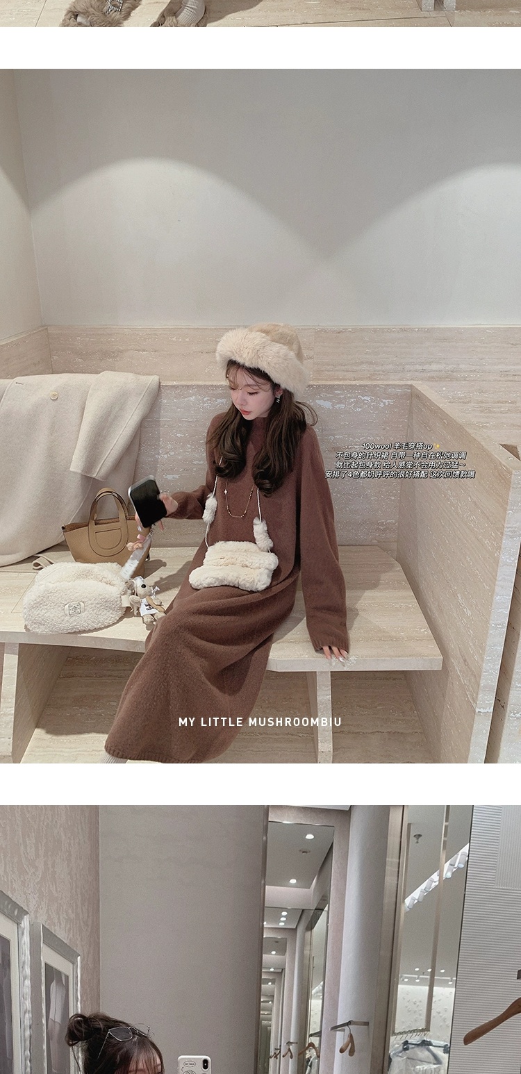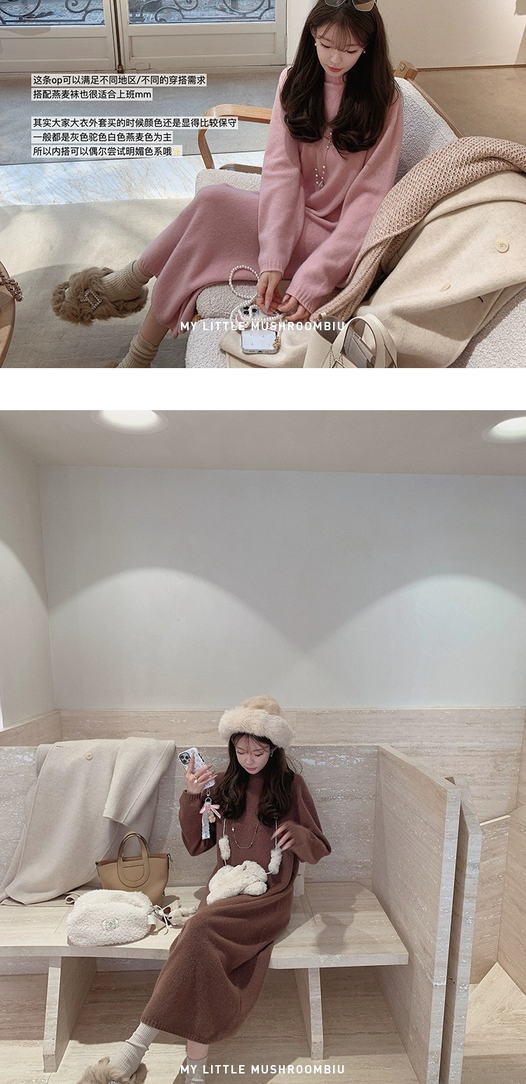 金蘑菇菇 懒人针织裙/ 极简慵懒宽松半高领毛衣裙