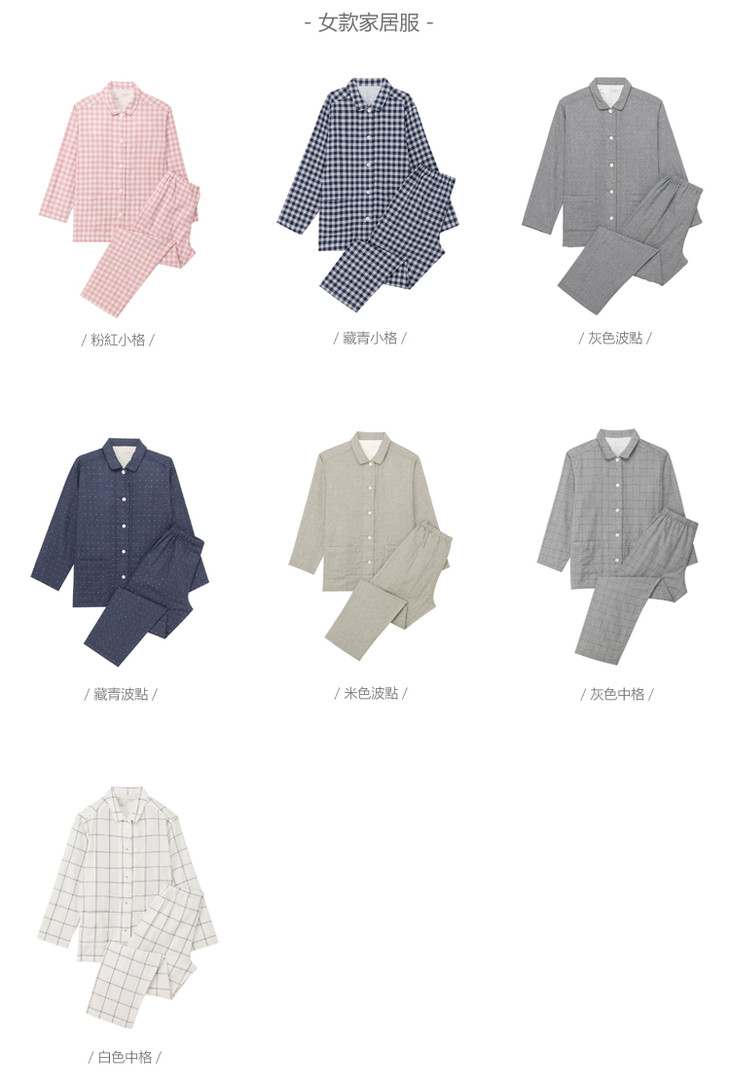 新款家居服,新款对面料进行调整,采用双层纱水洗面料,质感更加柔软,相对老款尺码进行微调整,同时也增加了新花色。