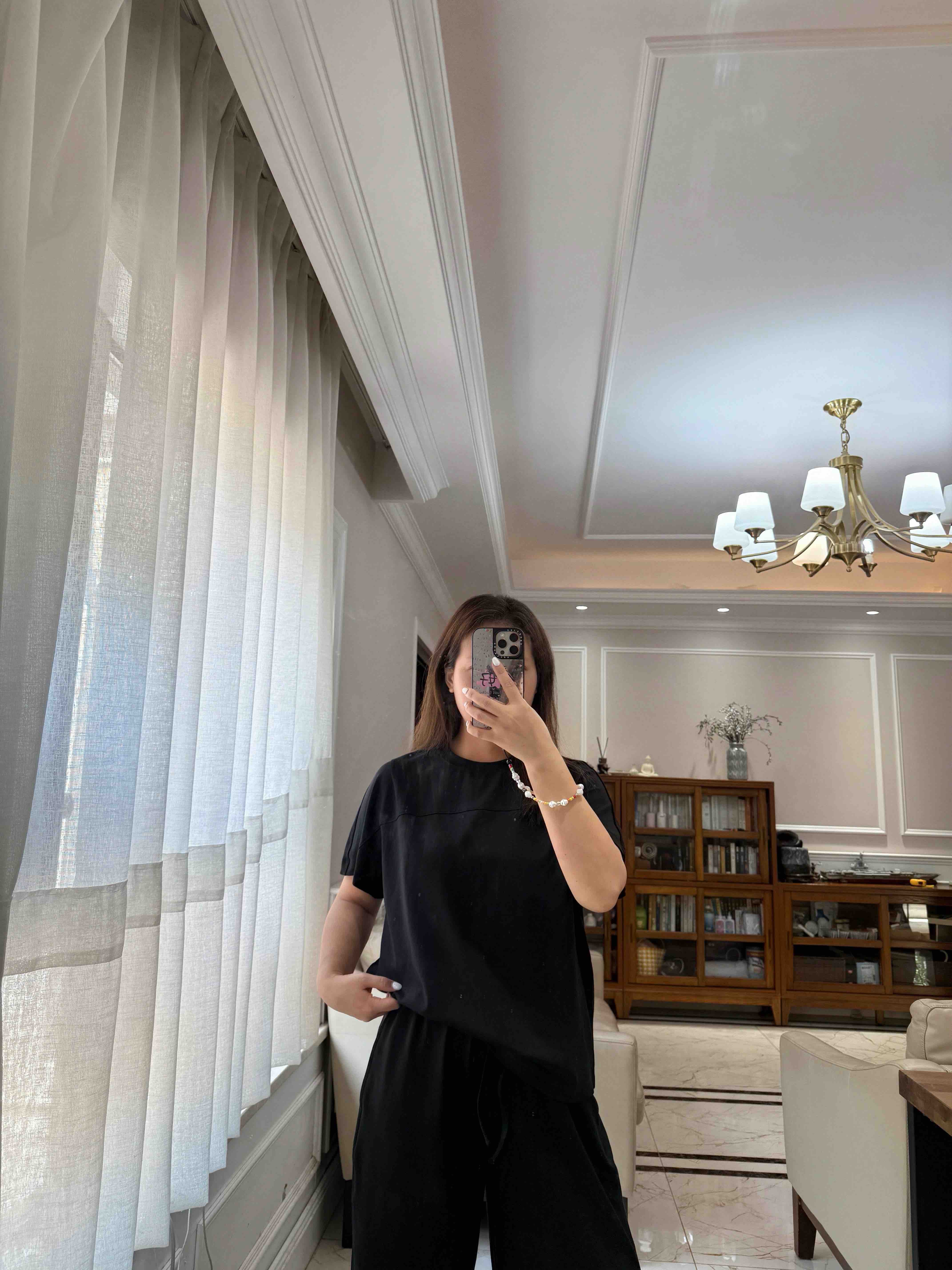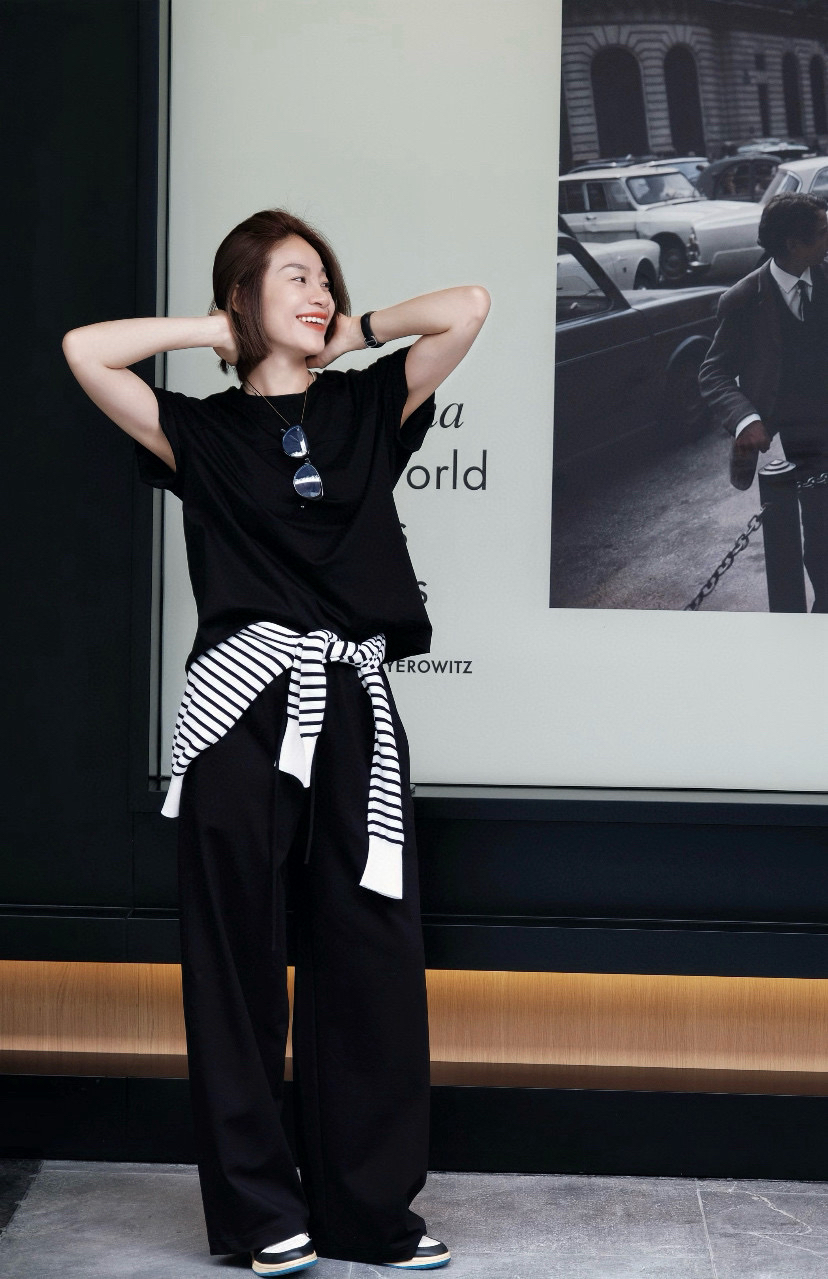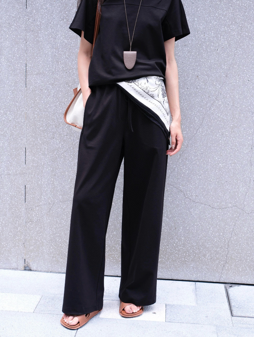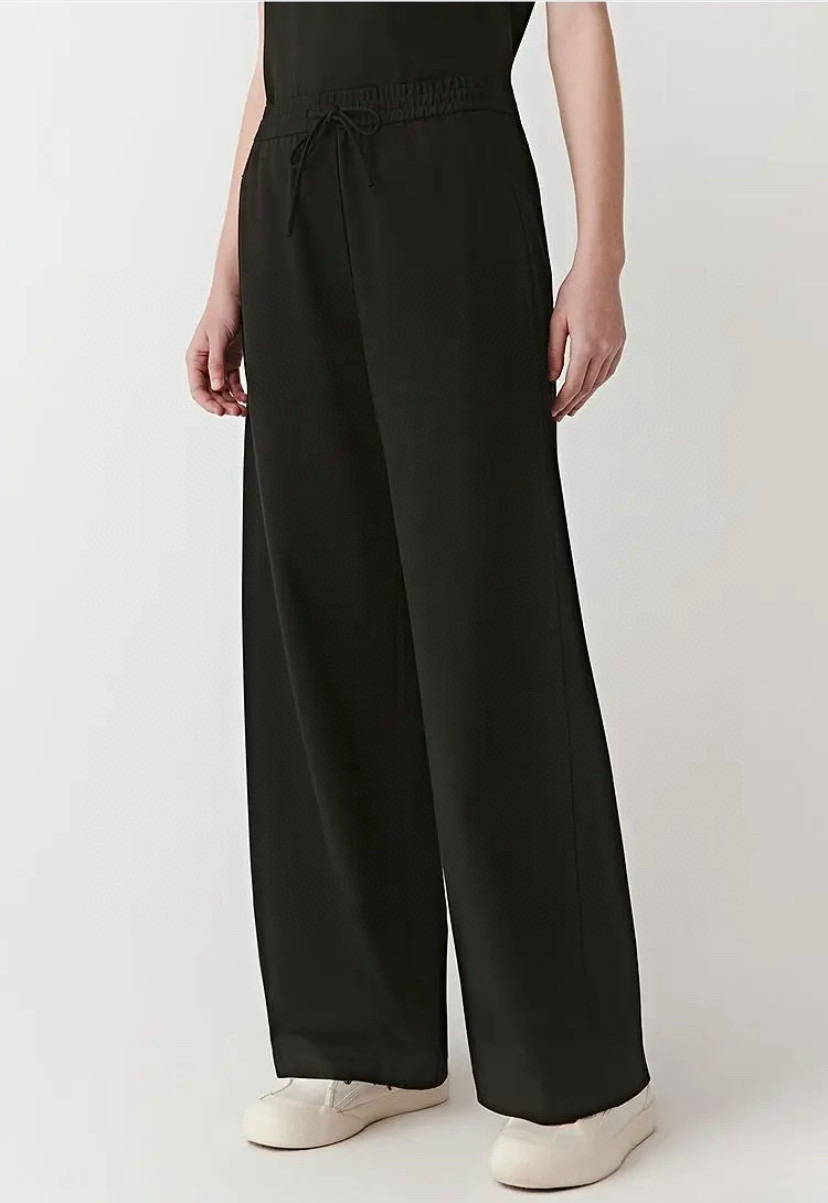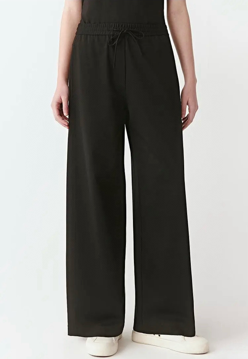 尤其裤子,松紧腰休闲抽绳设计的,是一条超级好穿的直身阔腿长裤,春夏秋季节都好穿。