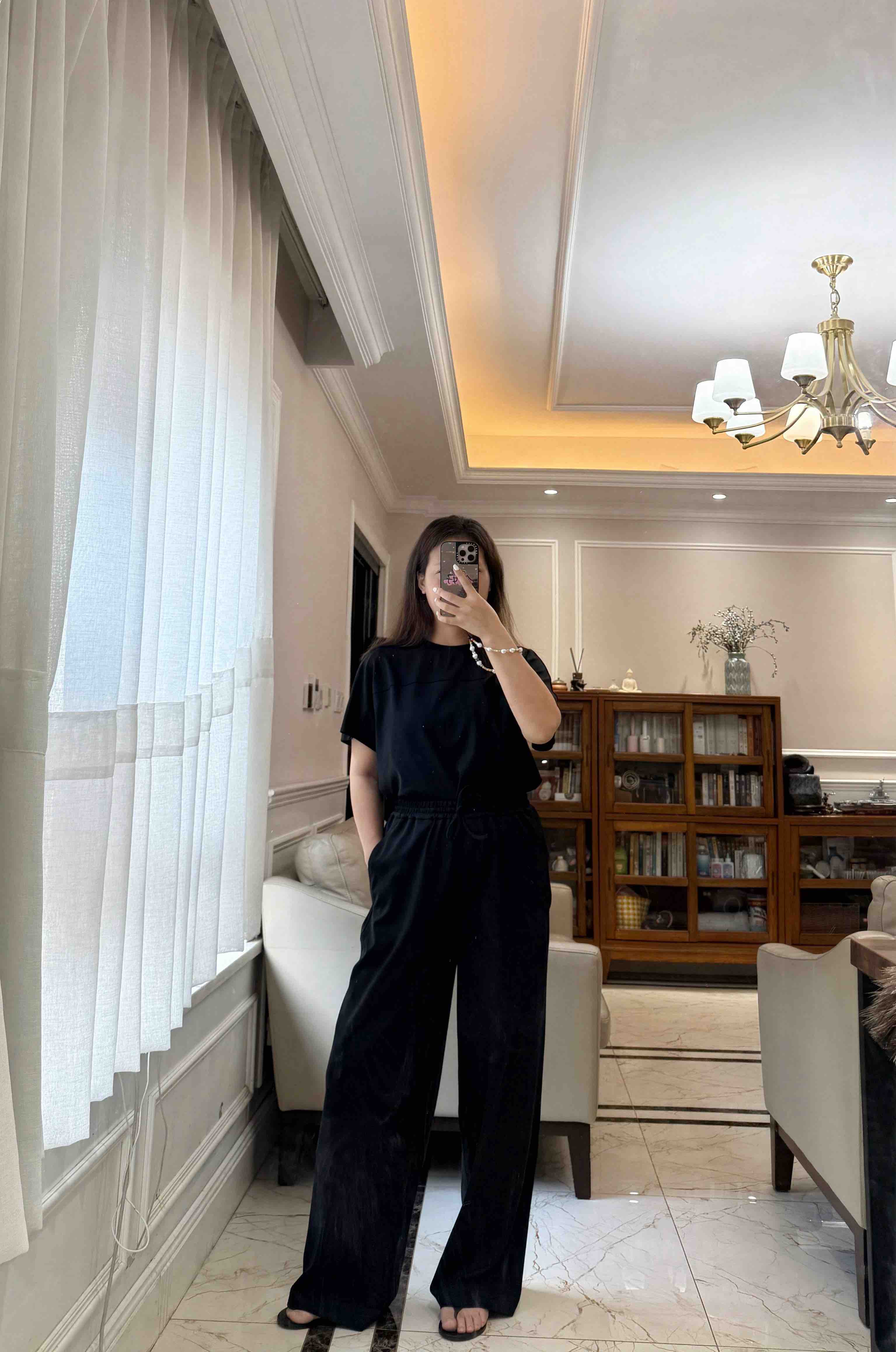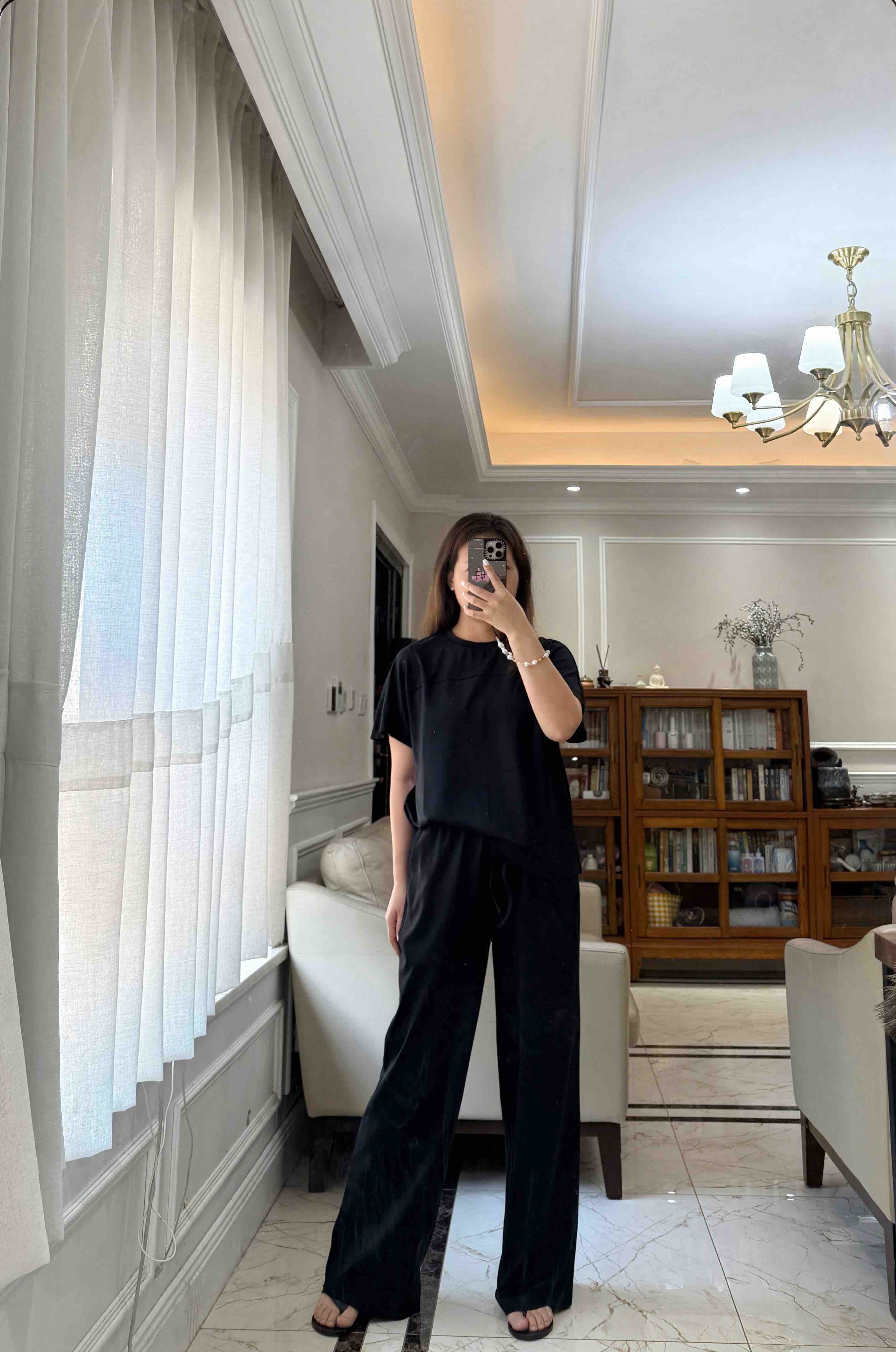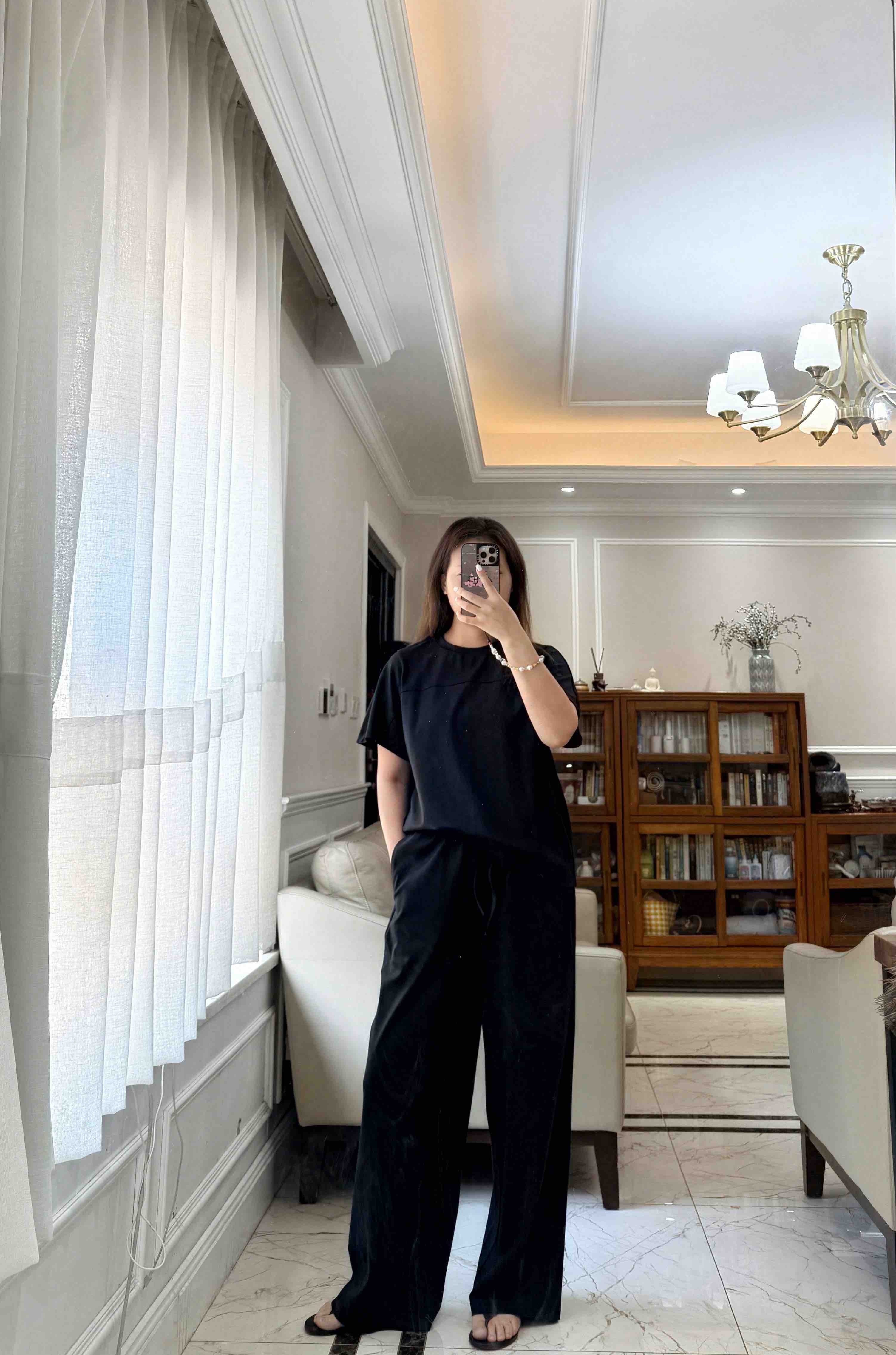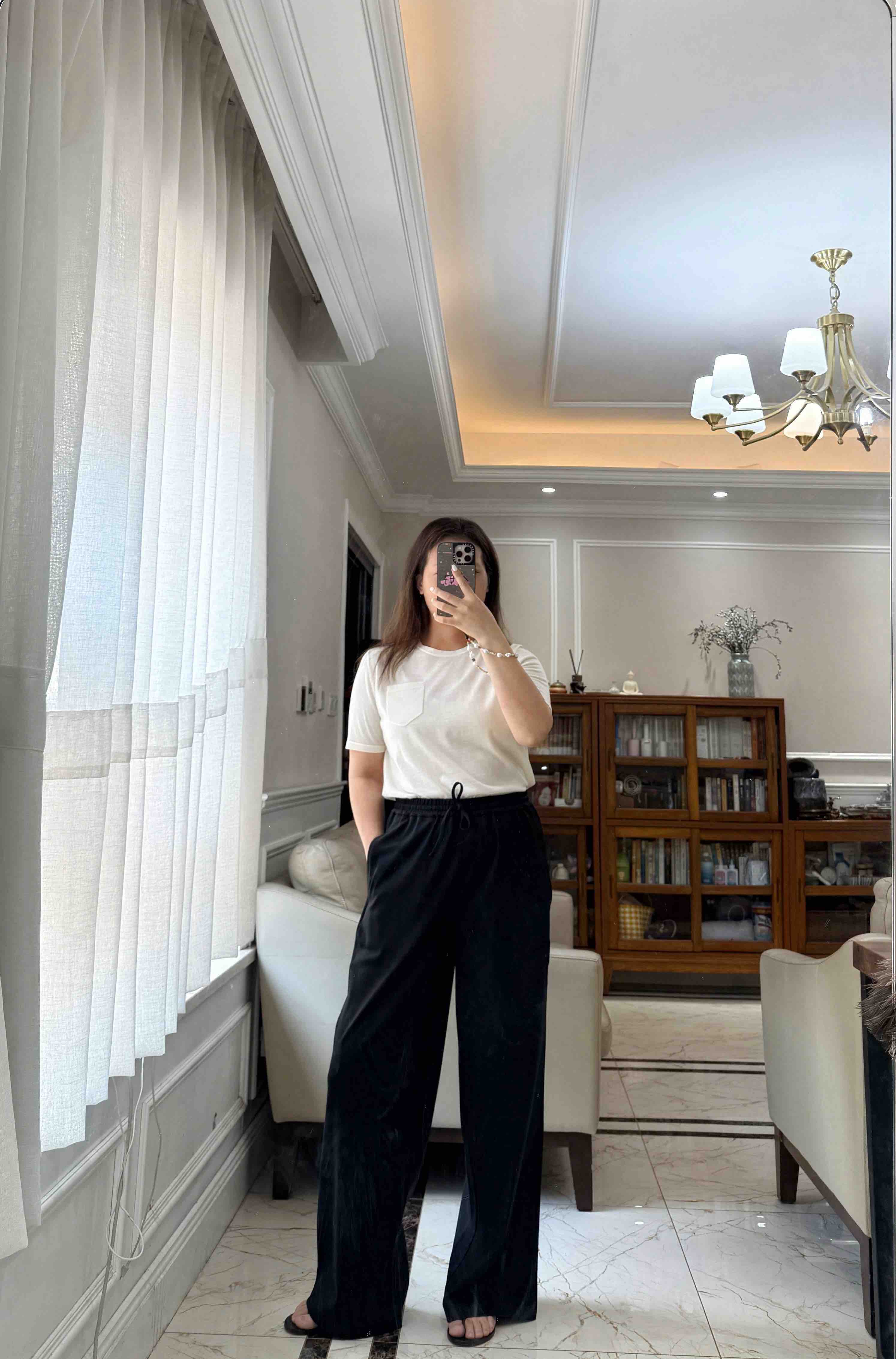 尤其裤子,松紧腰休闲抽绳设计的,是一条超级好穿的直身阔腿长裤,春夏秋季节都好穿。