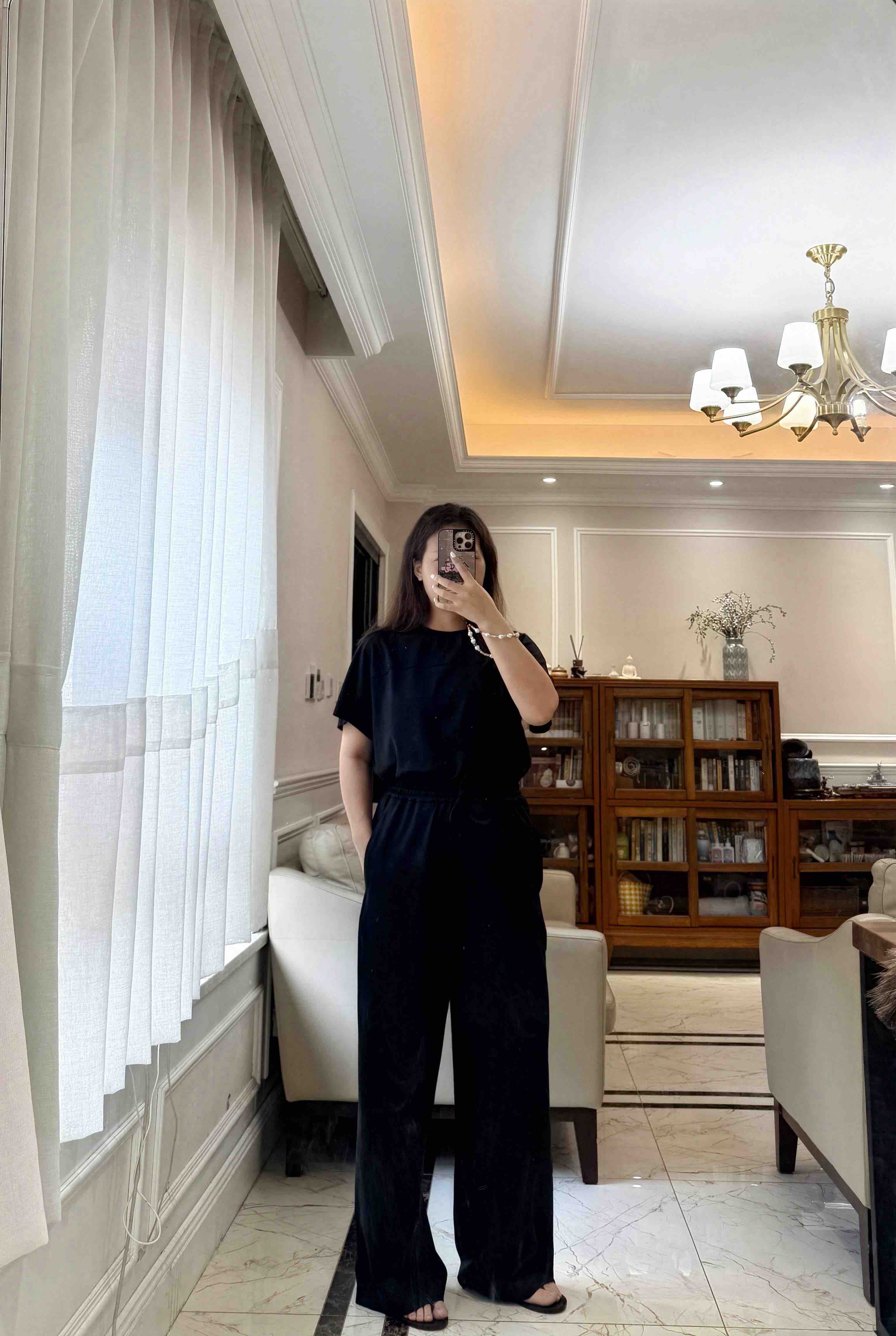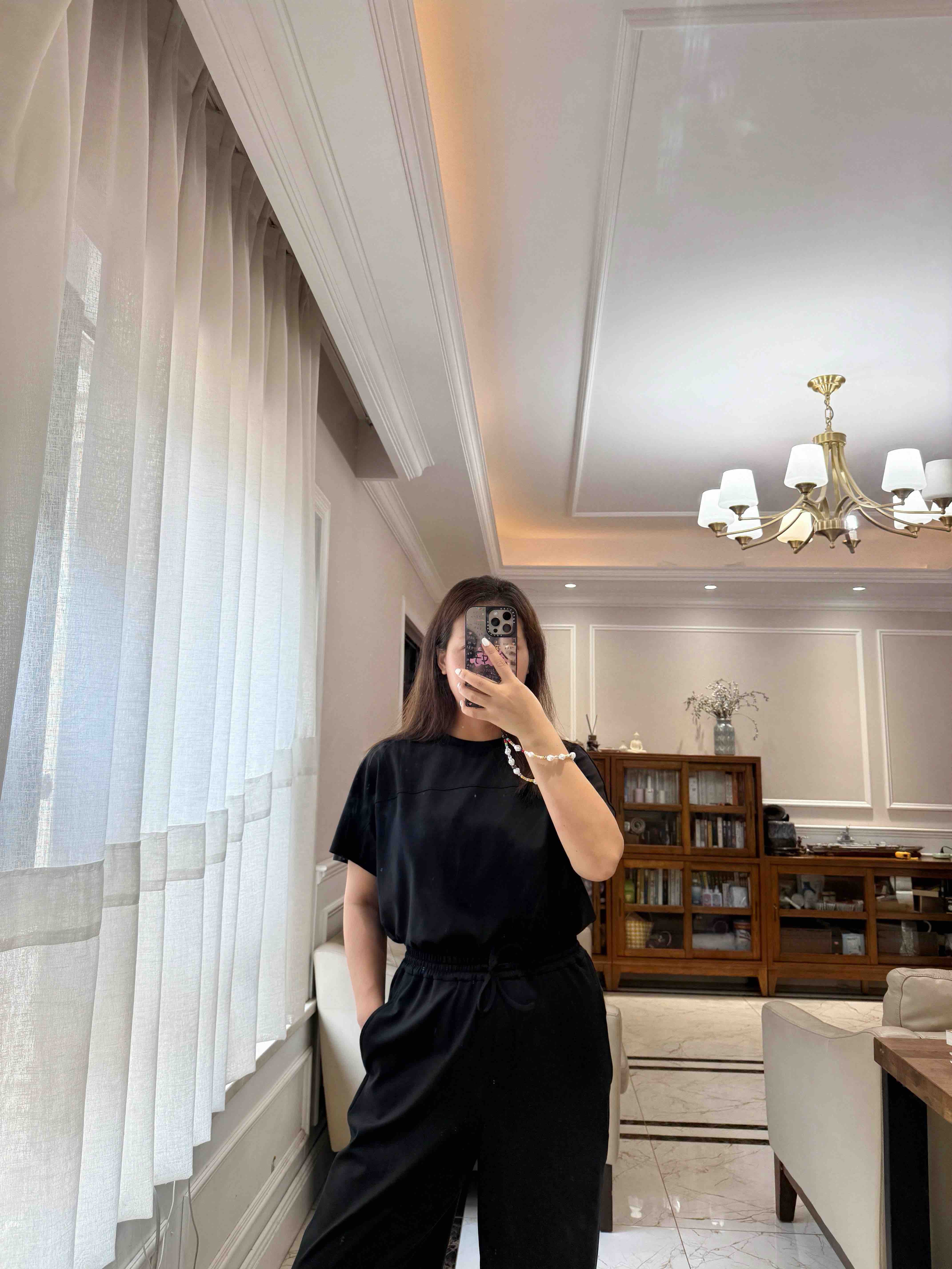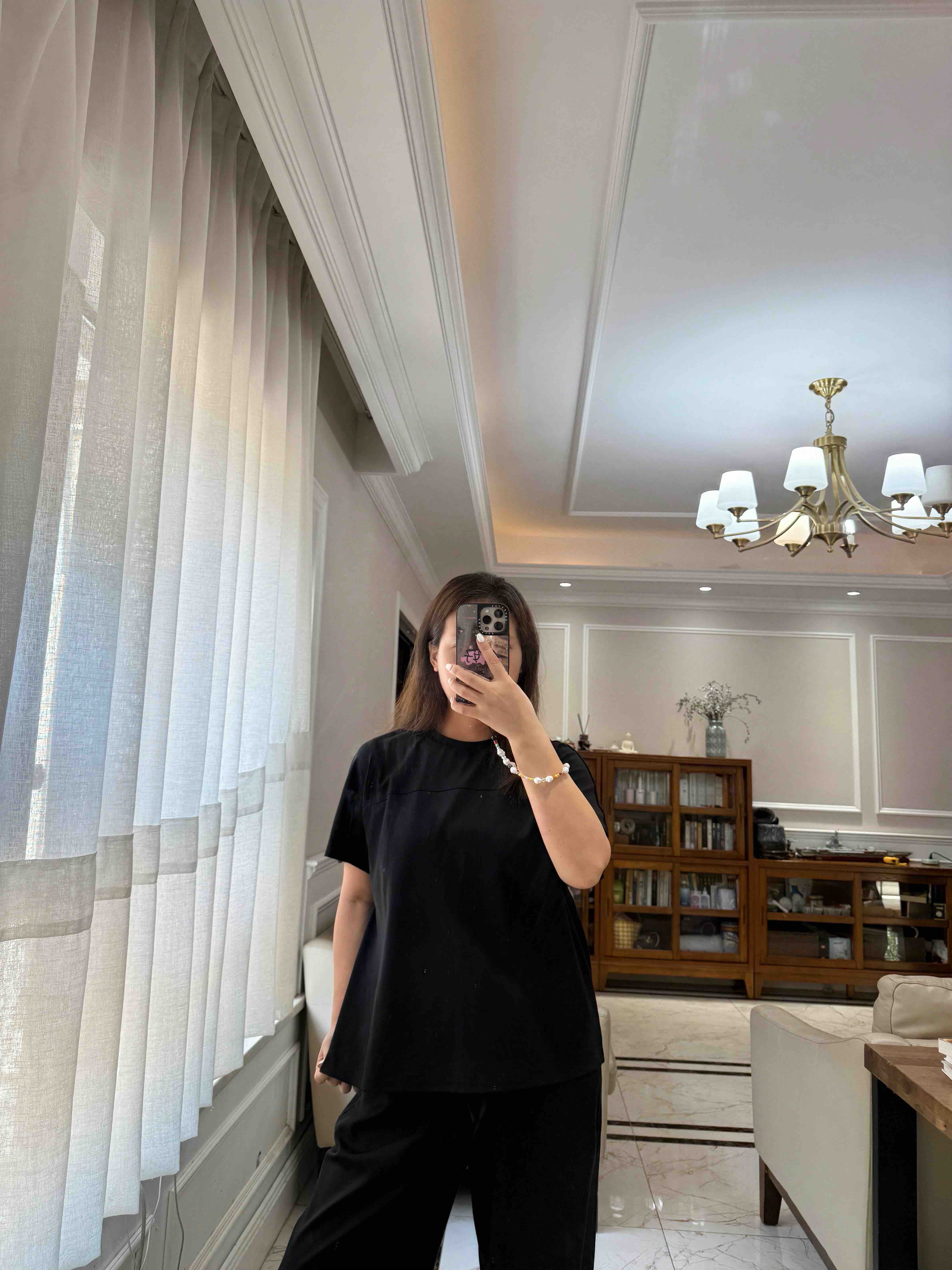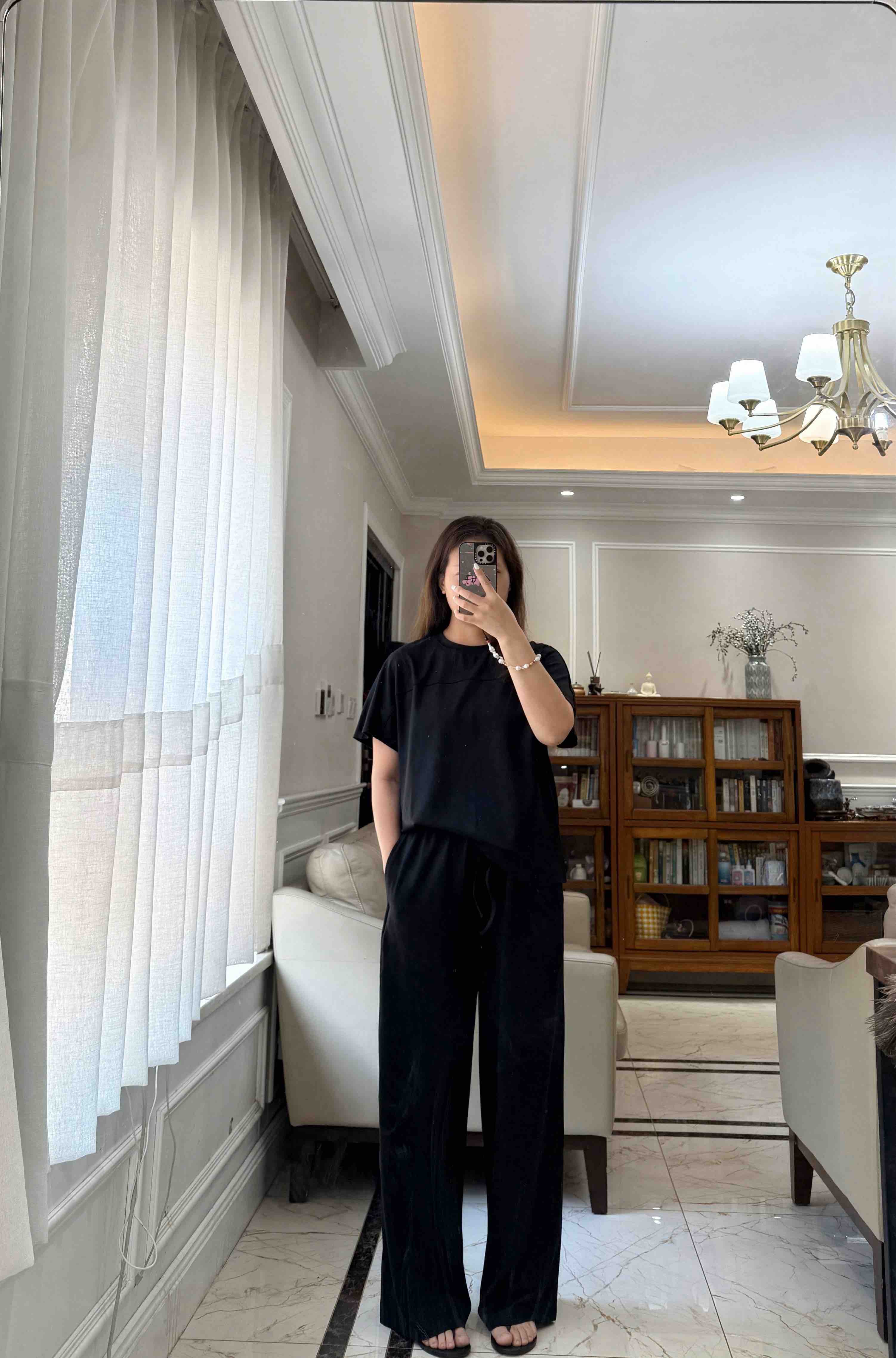 尤其裤子,松紧腰休闲抽绳设计的,是一条超级好穿的直身阔腿长裤,春夏秋季节都好穿。