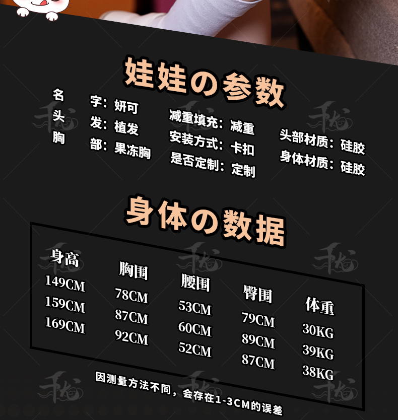 桃花坞千优 新款妍可(猫耳)硅胶可选TPE实体娃娃真人充气活体女人手办成人性男人发泄用品倒模