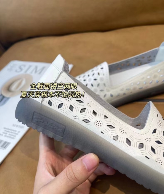 这款网眼妈妈鞋,设计大气又有气质, 完全长在了妈妈的高标准审美上! 高级耐看,就一个米白经典百搭色, 夏天穿,正合适! 鞋型显瘦不挑人,对腿型的包容性真的很强, 上脚超显秀气,增添淑女气质, 不挑脚型,简单又好穿! 重点是鞋底真的超级柔软~ 给妈妈们不一样的穿鞋体验!