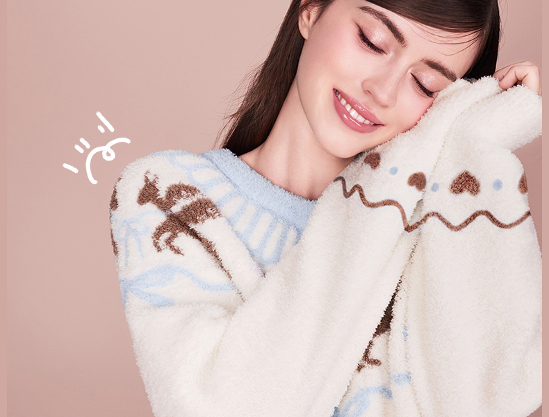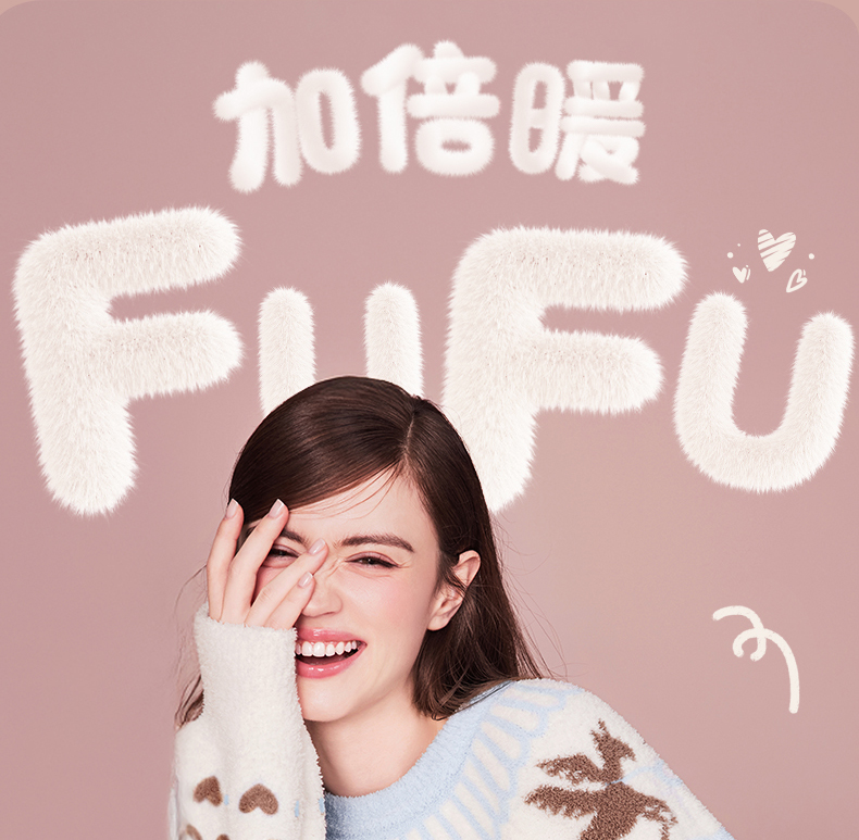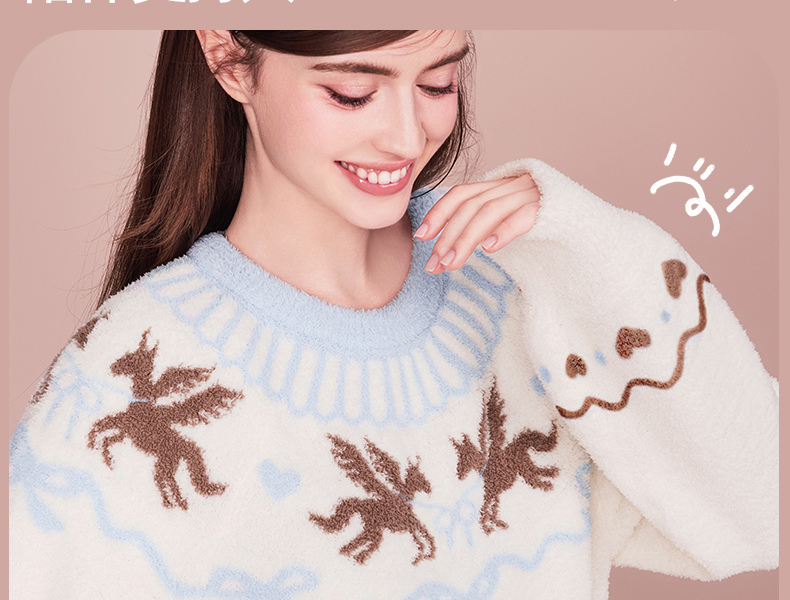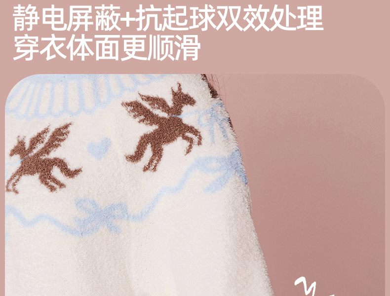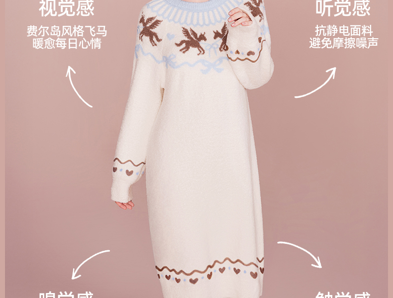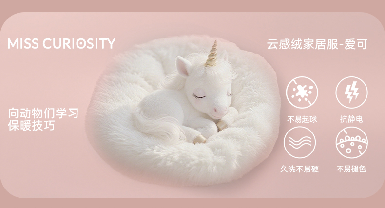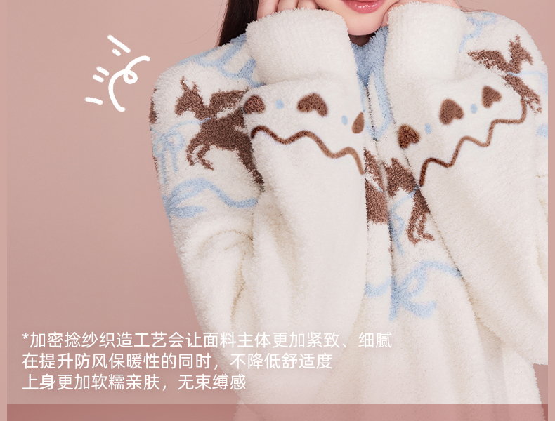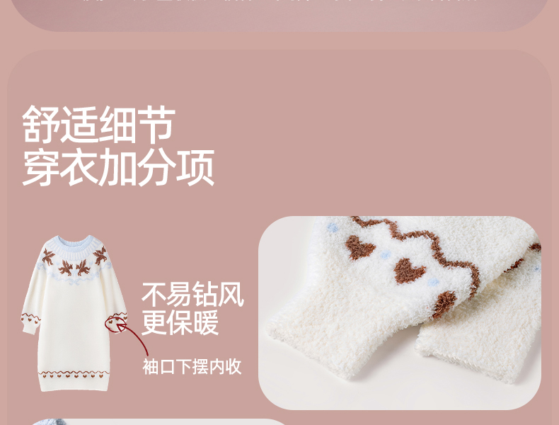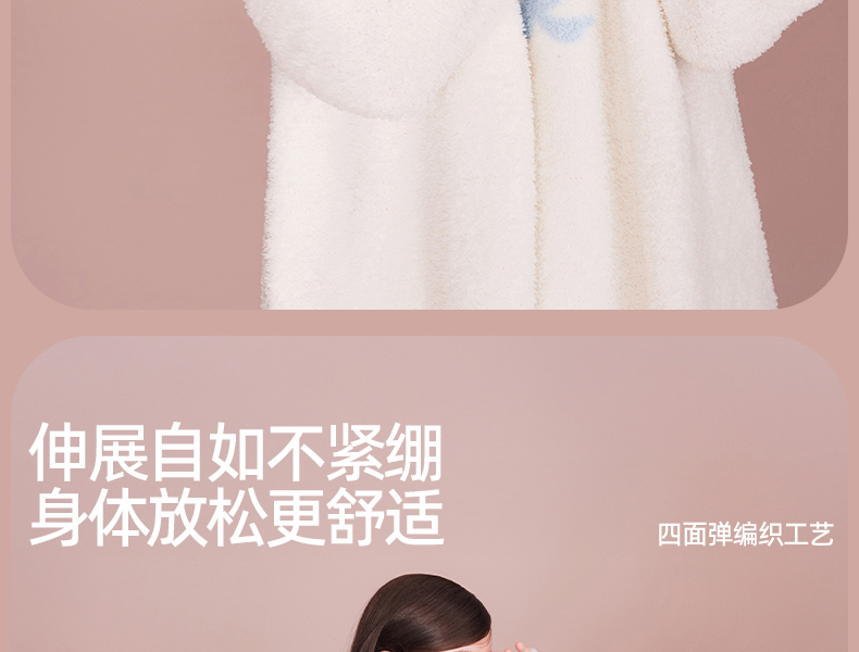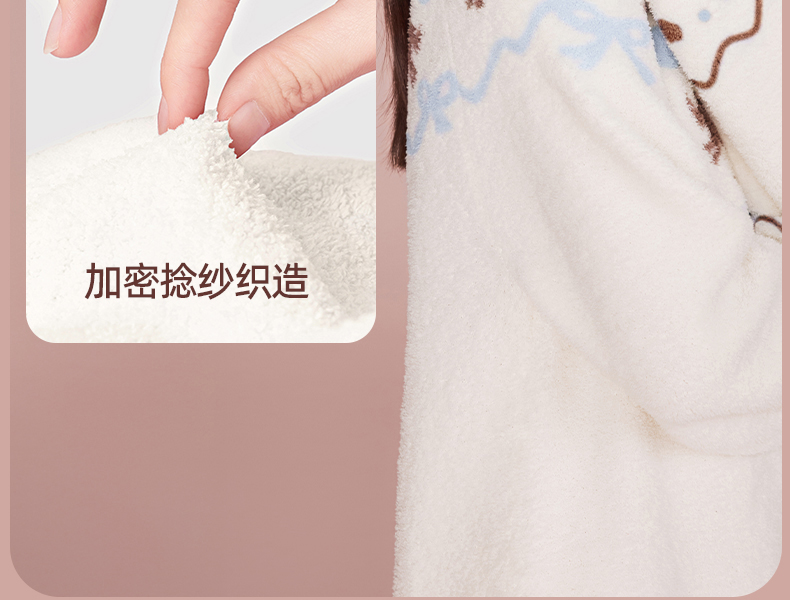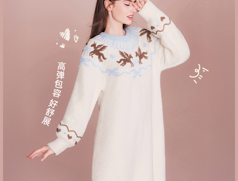 好奇蜜斯半边绒家居服女珊瑚绒睡裙秋冬睡衣加厚可外穿柔软抗静电 爱可