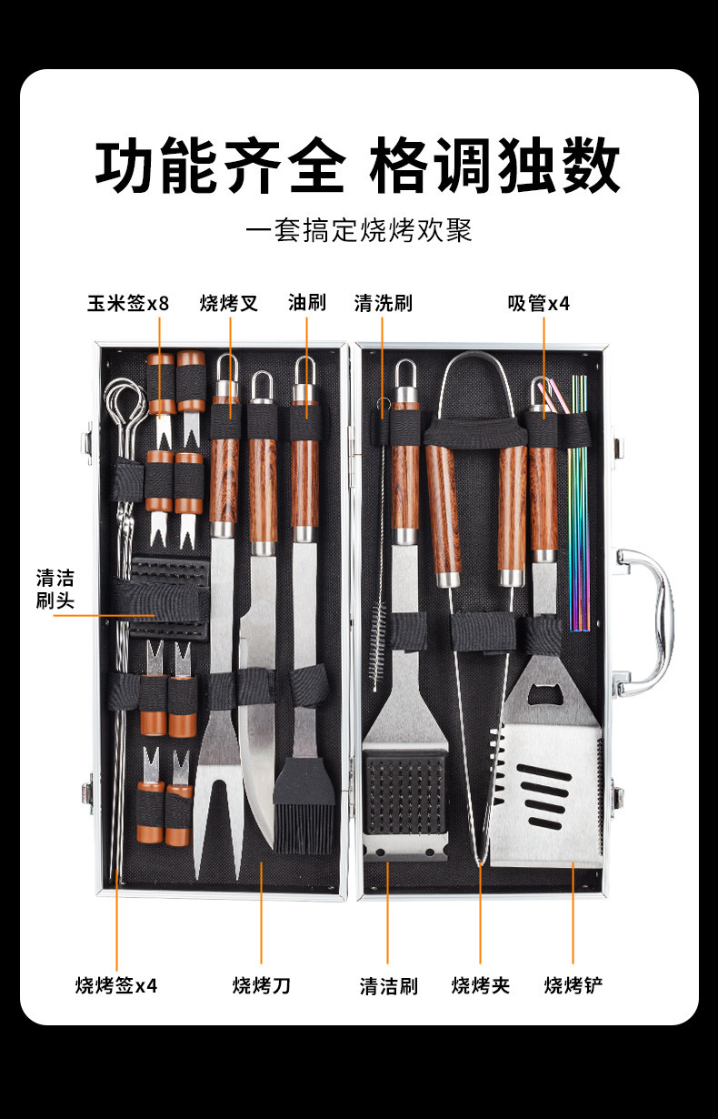 【烧烤工具24件套❗一套搞定烧烤欢聚】不锈钢铝箱组合烧烤套装BBQ用具高端烧烤具户外露营烧烤工具24件。ri