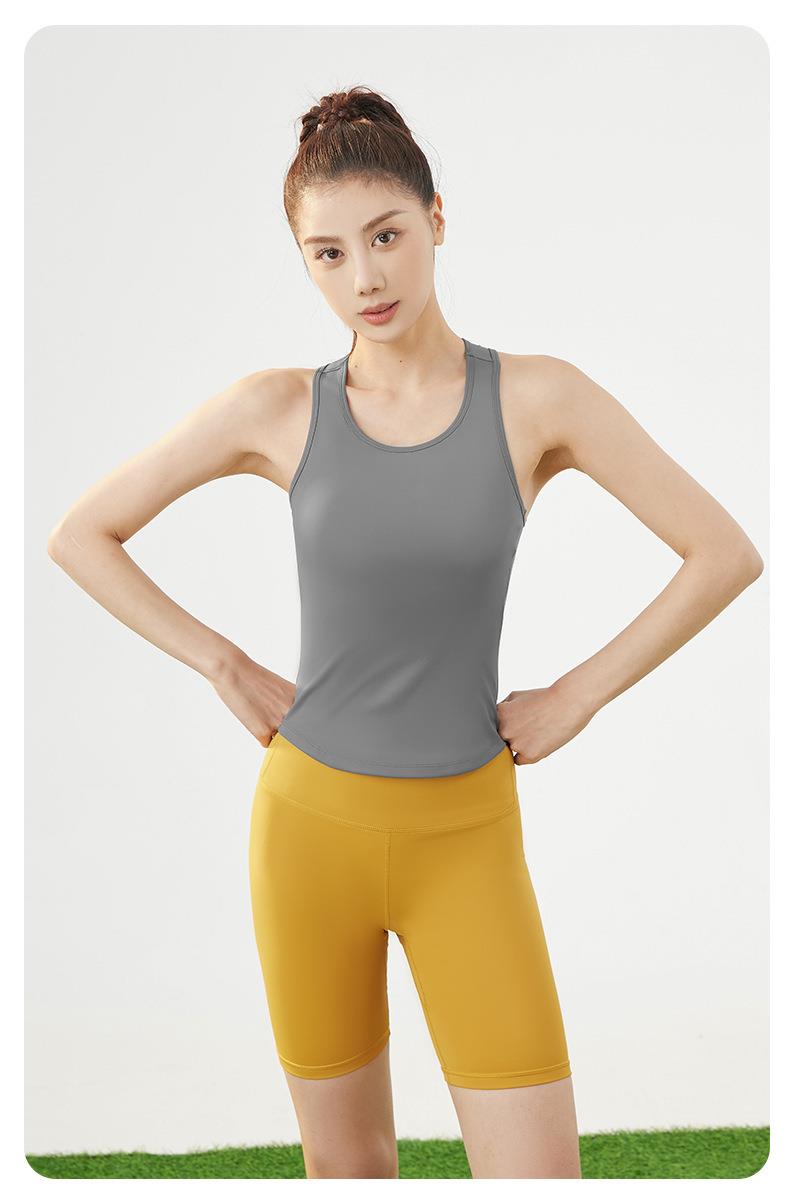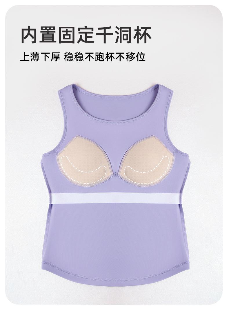 聚衣堂蜜桃瑜伽背心4D高弹固定杯圆领紧身防走光不跑杯运动背心