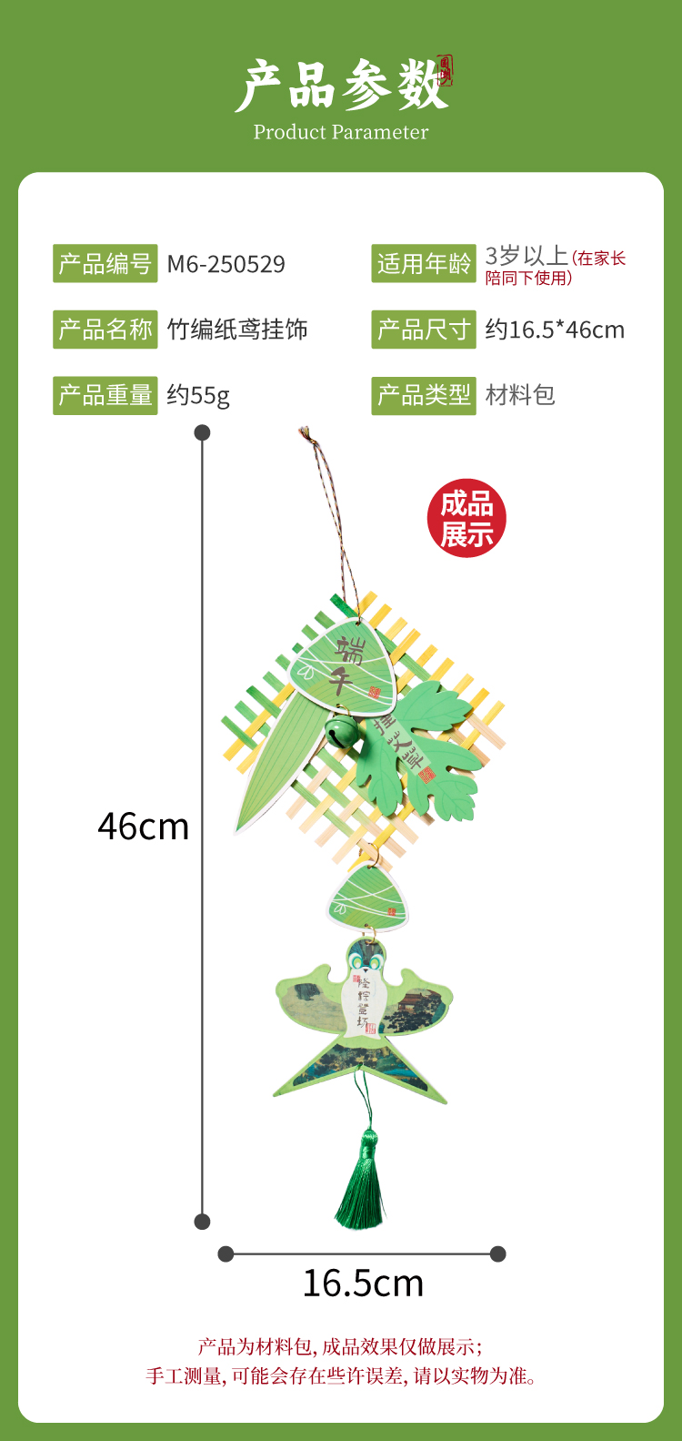 端午节非遗竹编纸鸢挂饰手工diy材料包儿童团建活动幼儿园装饰