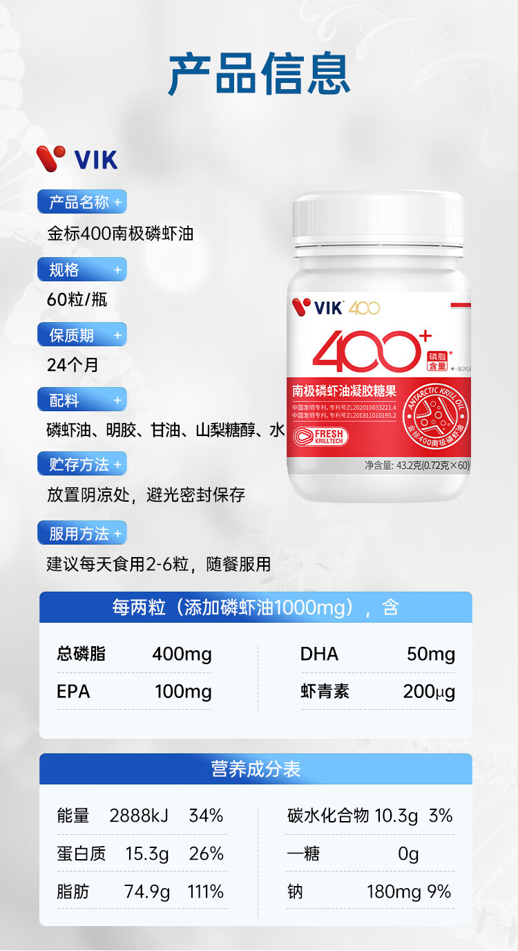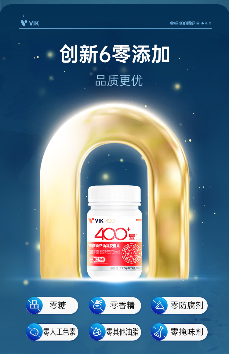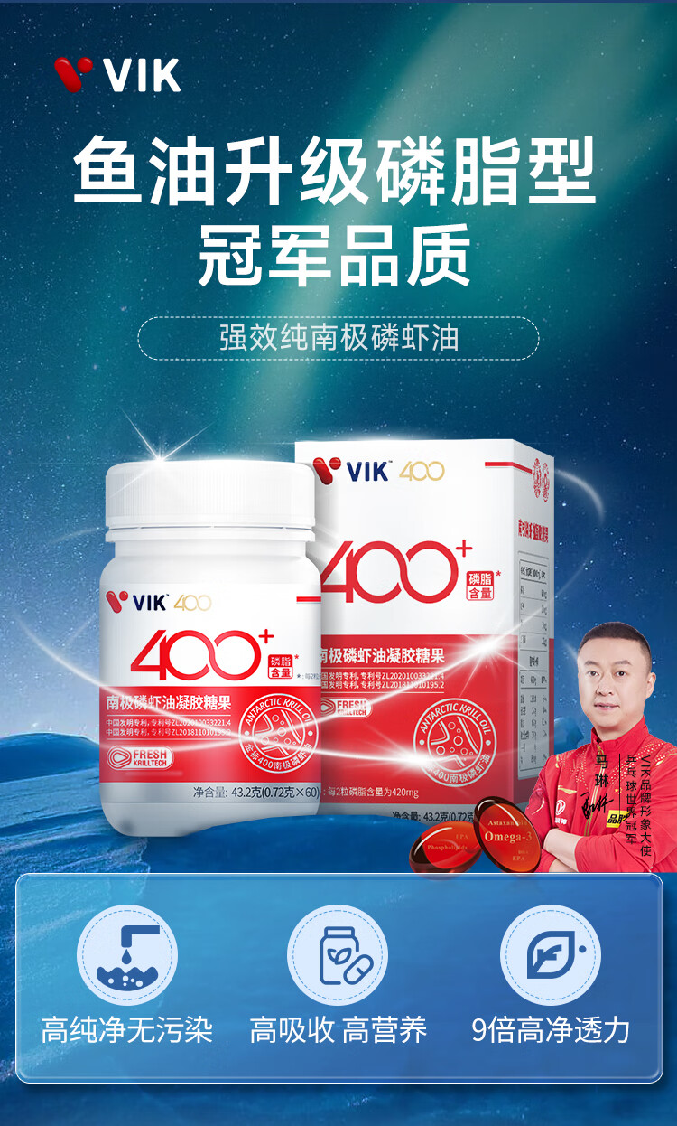 【vikVIK金标400南极磷虾油】VIK纯南极磷虾油60粒金标400深海鱼油升级42_海洋磷脂高吸收易吞服Omega_3DHAepa虾青素中老年成人性价比送礼