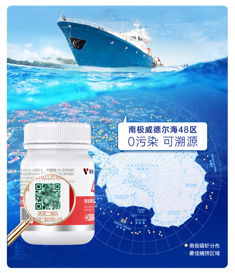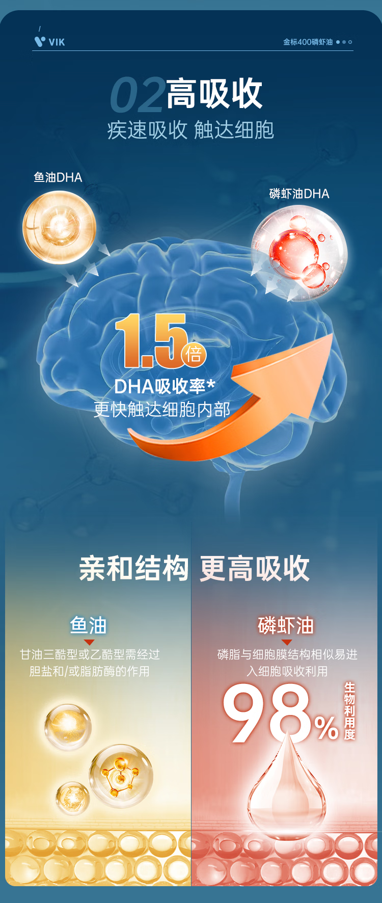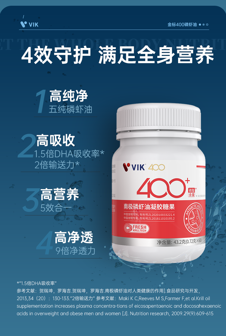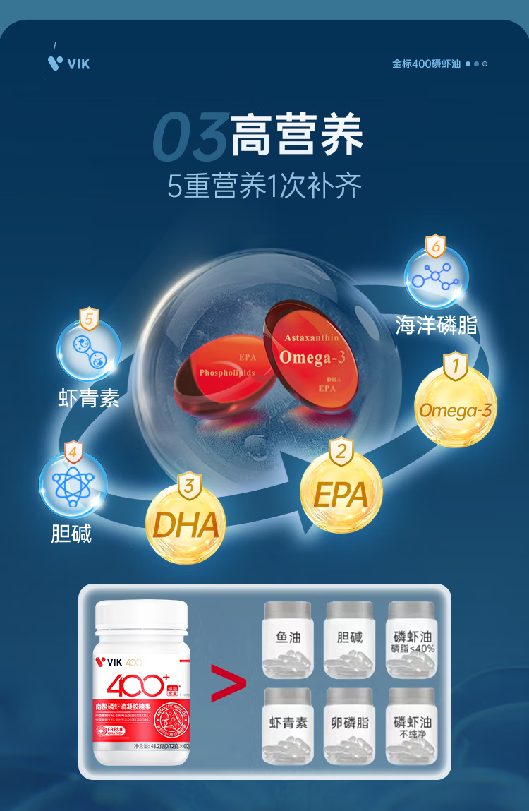 【vikVIK金标400南极磷虾油】VIK纯南极磷虾油60粒金标400深海鱼油升级42_海洋磷脂高吸收易吞服Omega_3DHAepa虾青素中老年成人性价比送礼