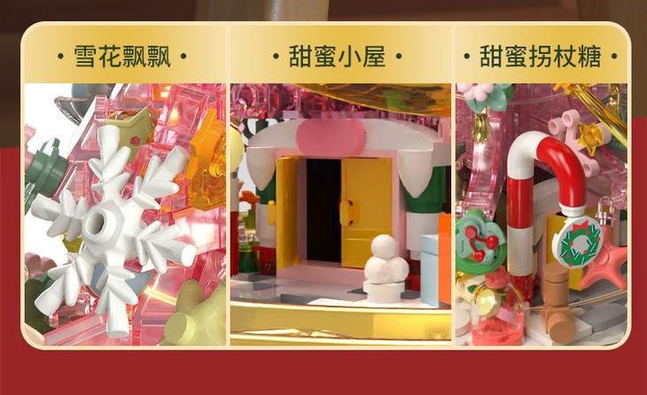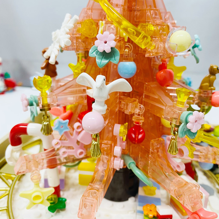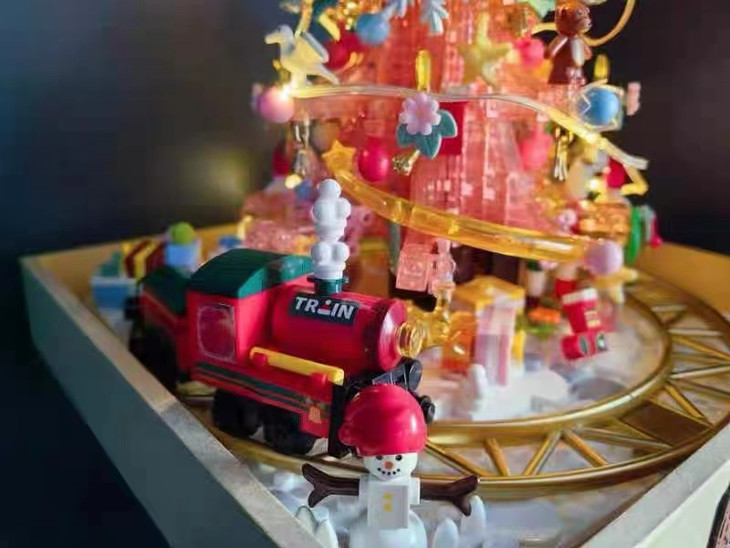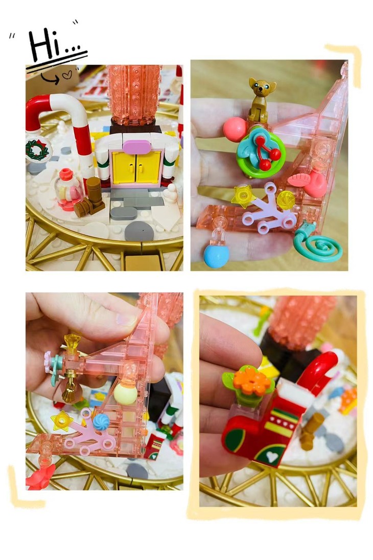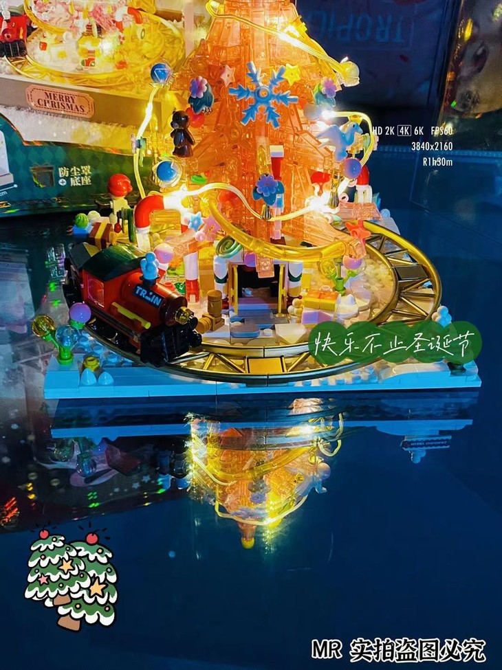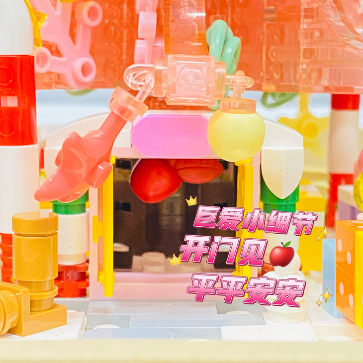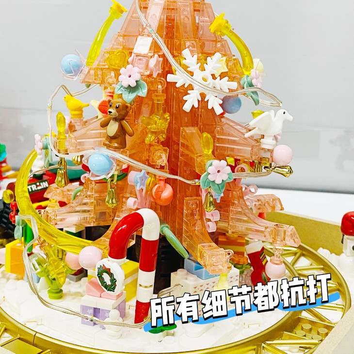 据说品牌老板是个完美主义者,对产品设计精益求精 各种小细节都不放过,开门能遇见平安果,来年顺利平平安安 灯带用的是皮线灯,且连接积木,不是普通灯串 圣诞少不了火车积木也安排上 圣诞树上更是挂满各种小物件等,超多超多小细节等着您来发现