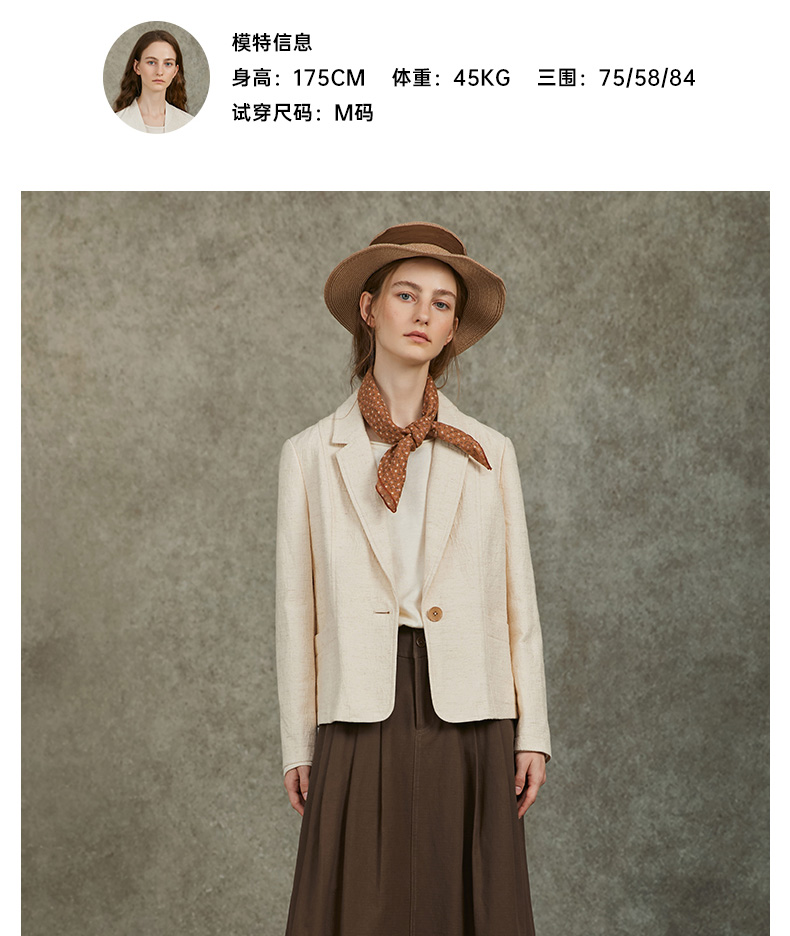 Famecoco原创肌理感提花西装外套短款一粒扣休闲西服FAC6AW012