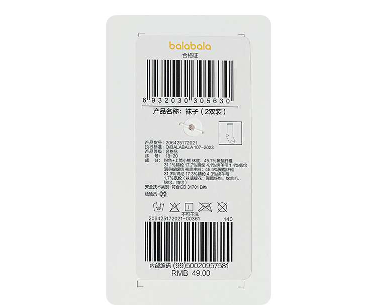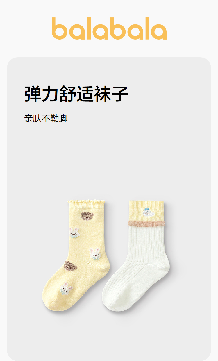 【商场同款】巴拉巴拉儿童袜子秋冬女童学生袜含羊毛保暖萌两双装