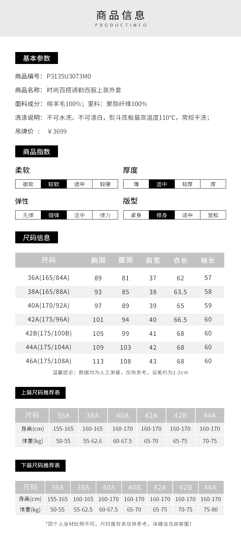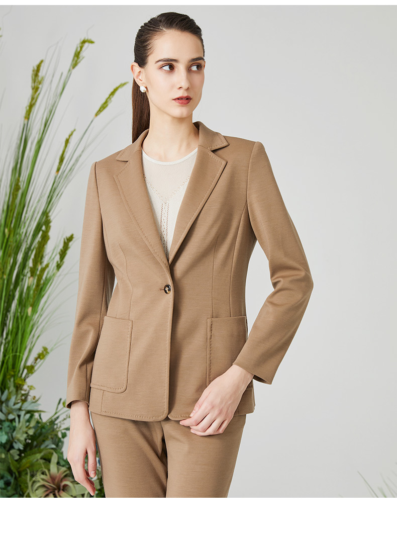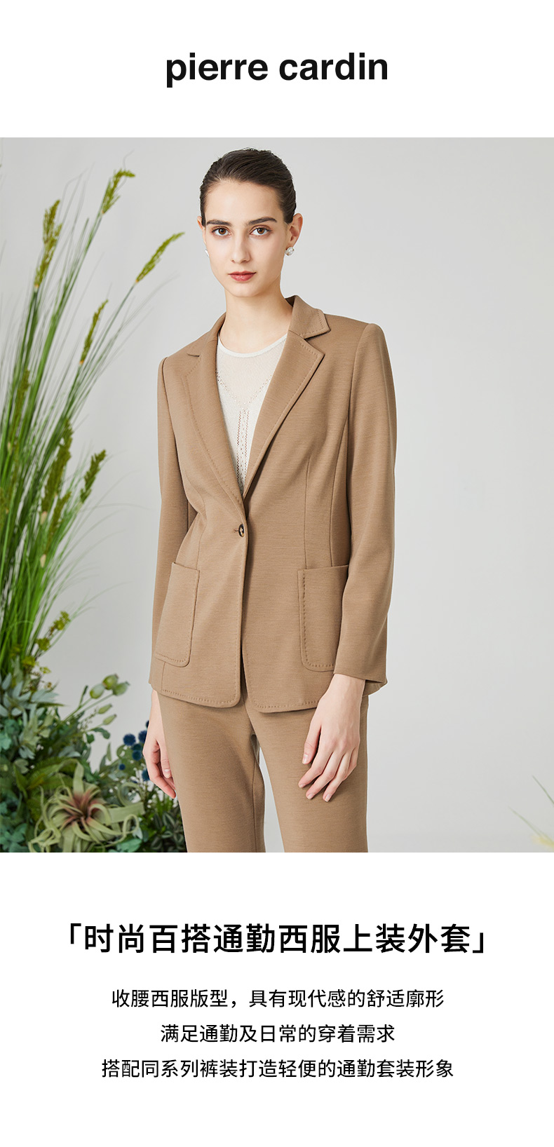 皮尔卡丹女装西服羊毛高级感正装商务通勤上衣外套P3135U3073M0