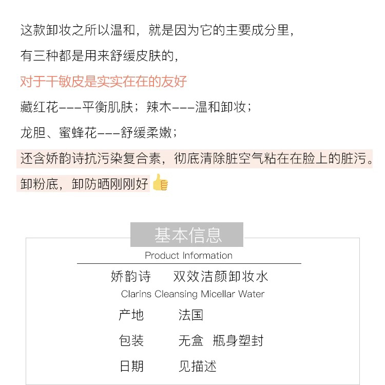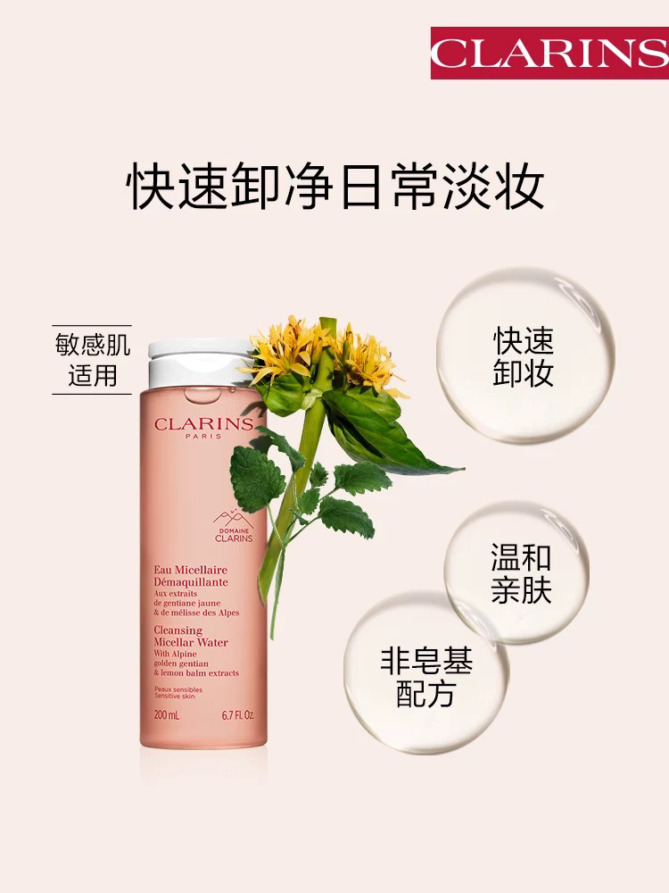 【专柜小样】法国 Clarins娇韵诗 温和双效蜜桃洁颜三合一卸妆水 50ml