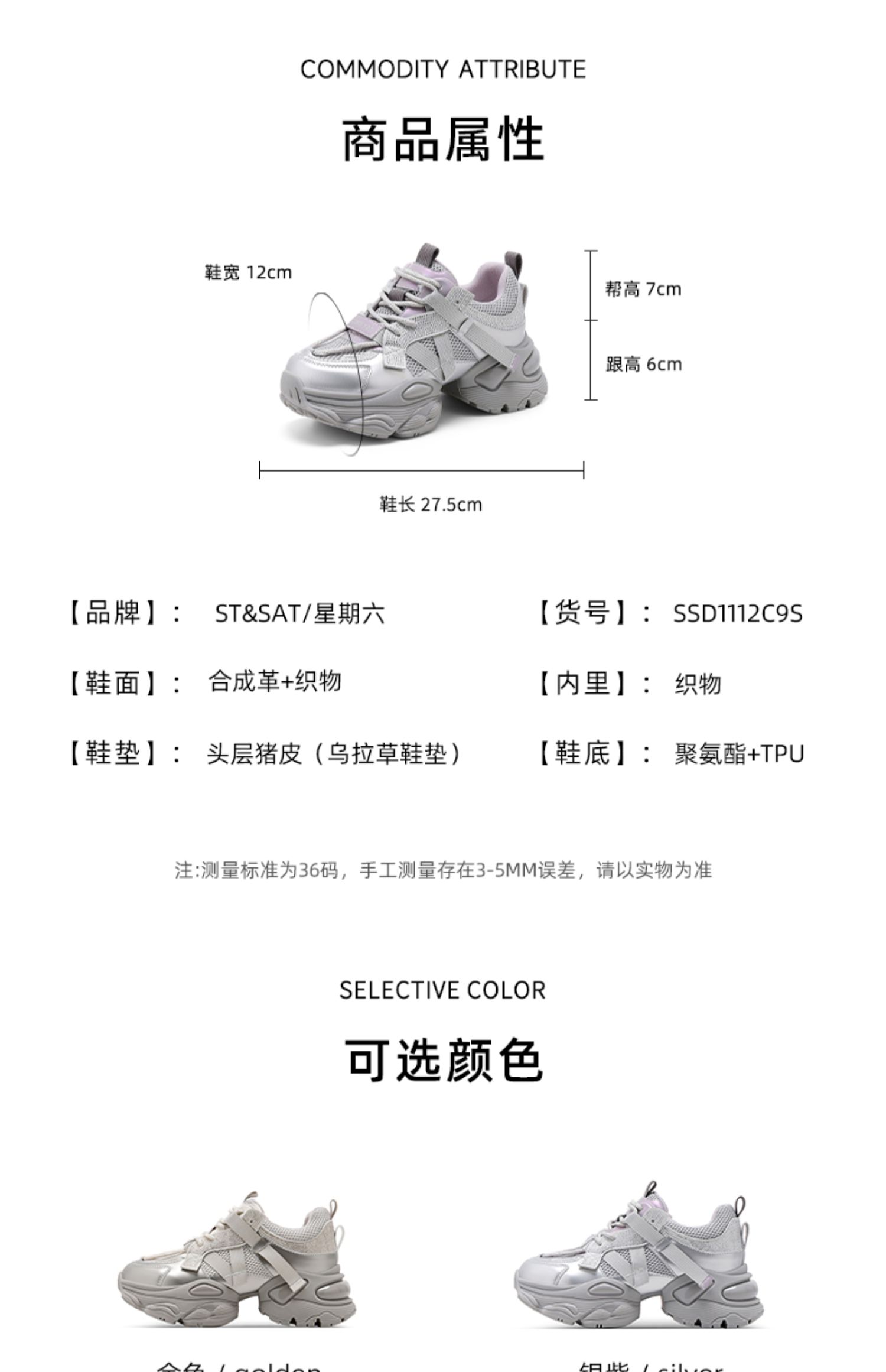星期六休闲运动透气增高显瘦老爹鞋SSD1112C9S