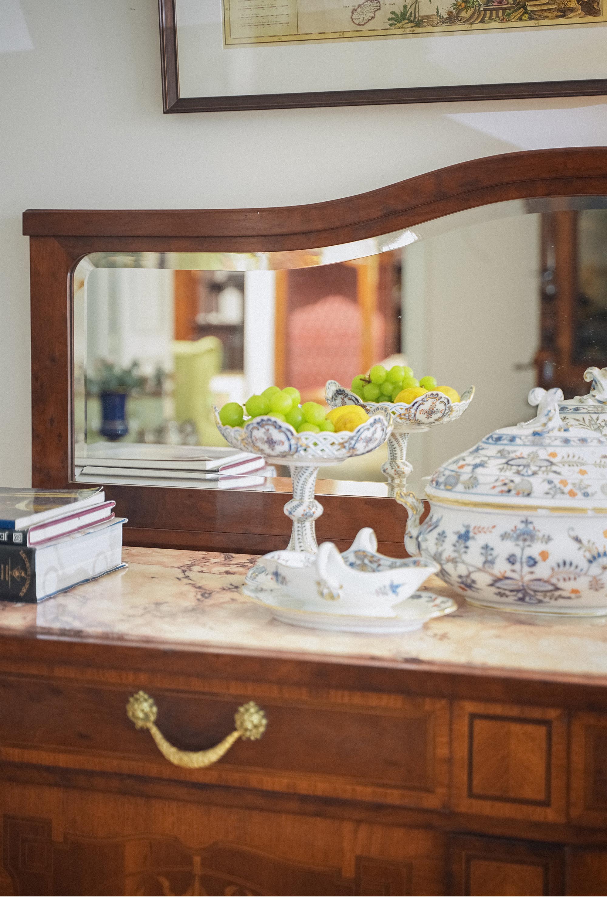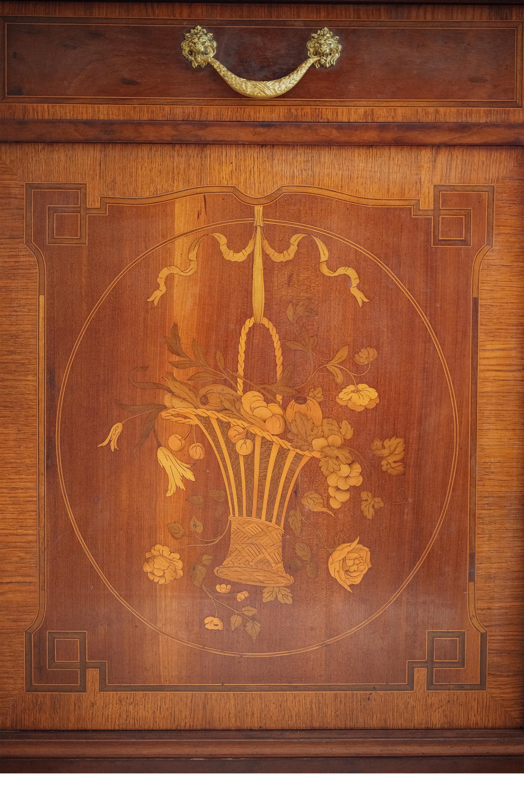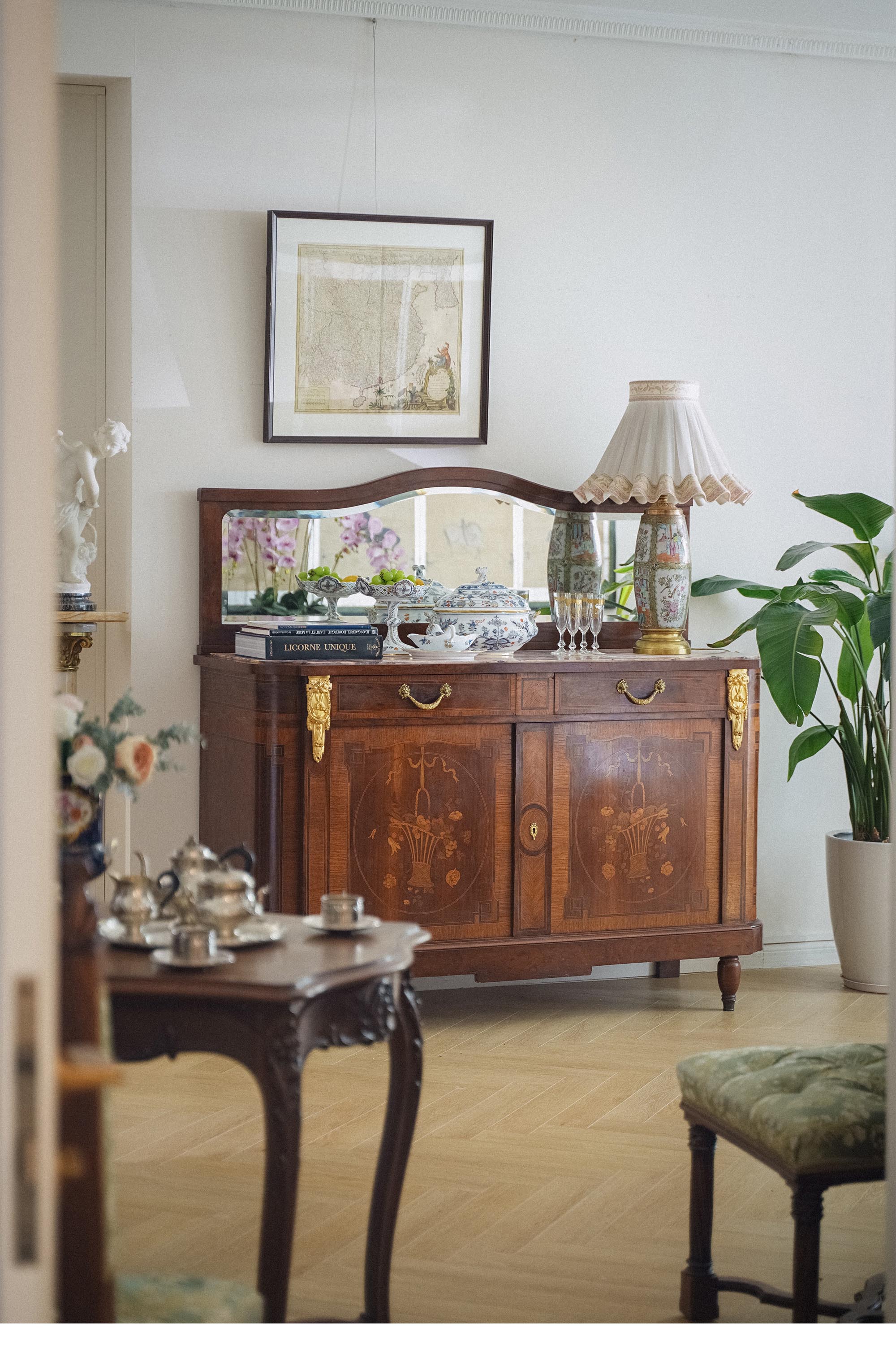 19世纪末法国出品新古典主义风格铜鎏金装饰细木镶嵌带镜大型餐边柜