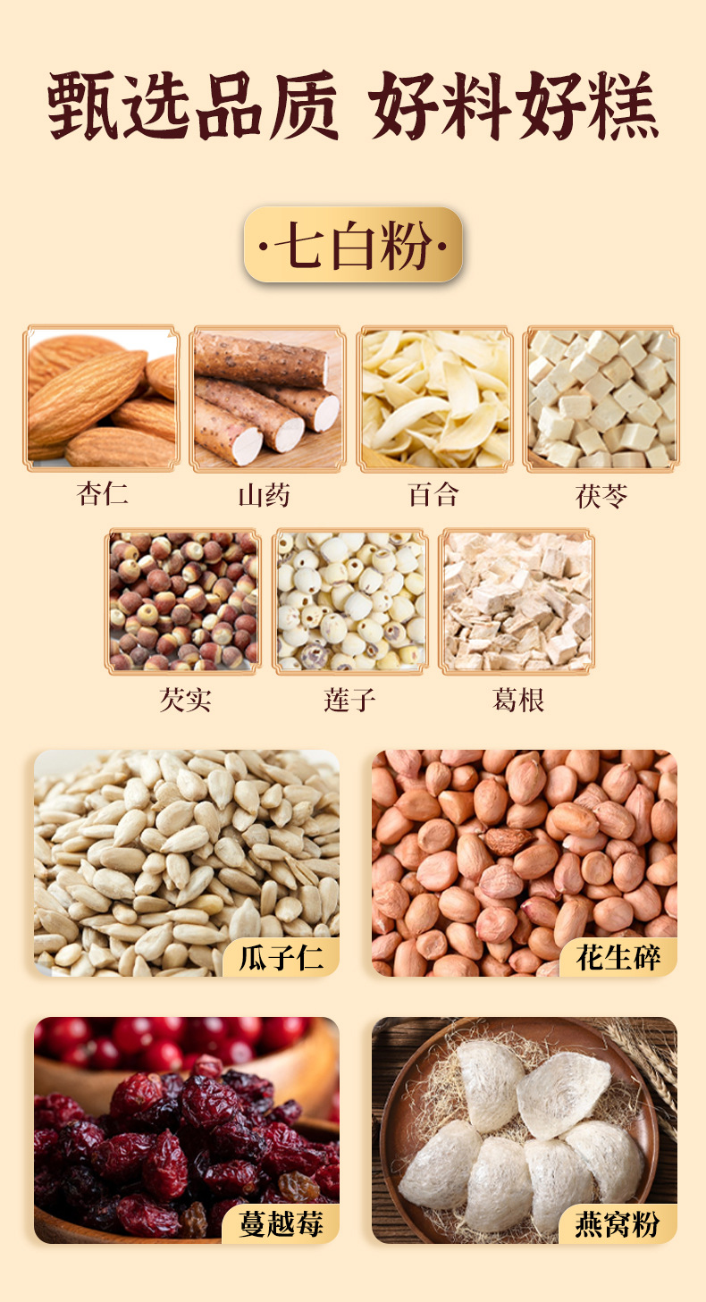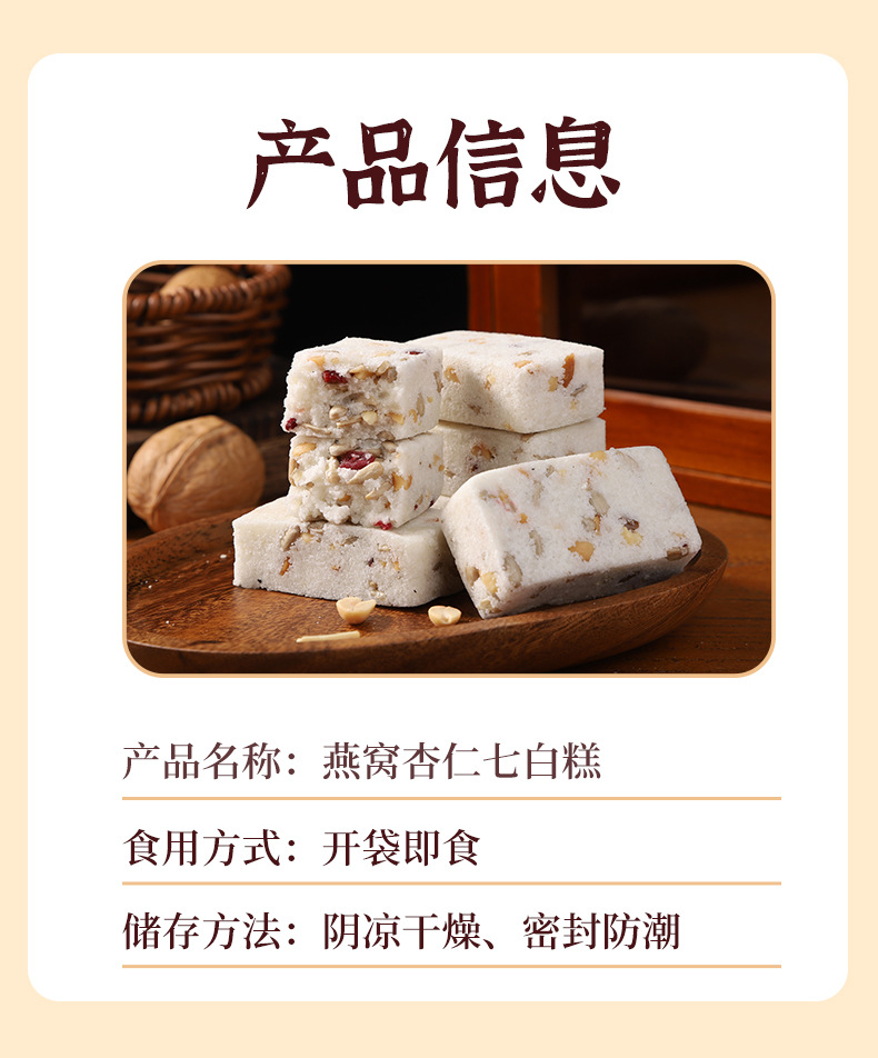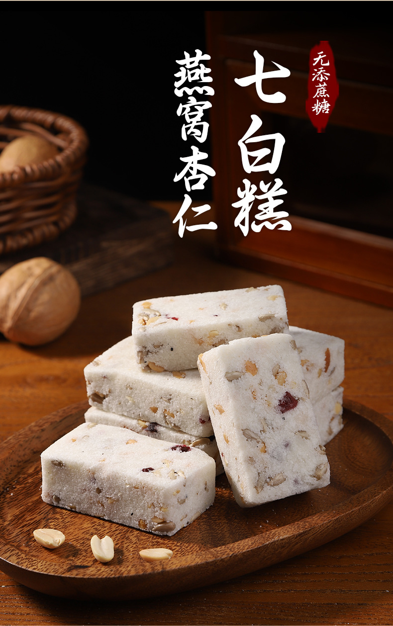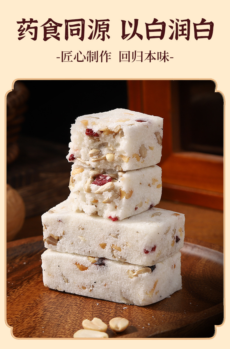 【药食同源❗️燕窝杏仁七白糕】甄选品质原料制作,杏仁/山药/百合/茯苓/芡实/莲子/葛根/瓜子仁/花生/蔓越莓/燕窝,不单独添加蔗糖糕点,美味无负担,早餐代餐下午茶饱腹食品传统茶点L
