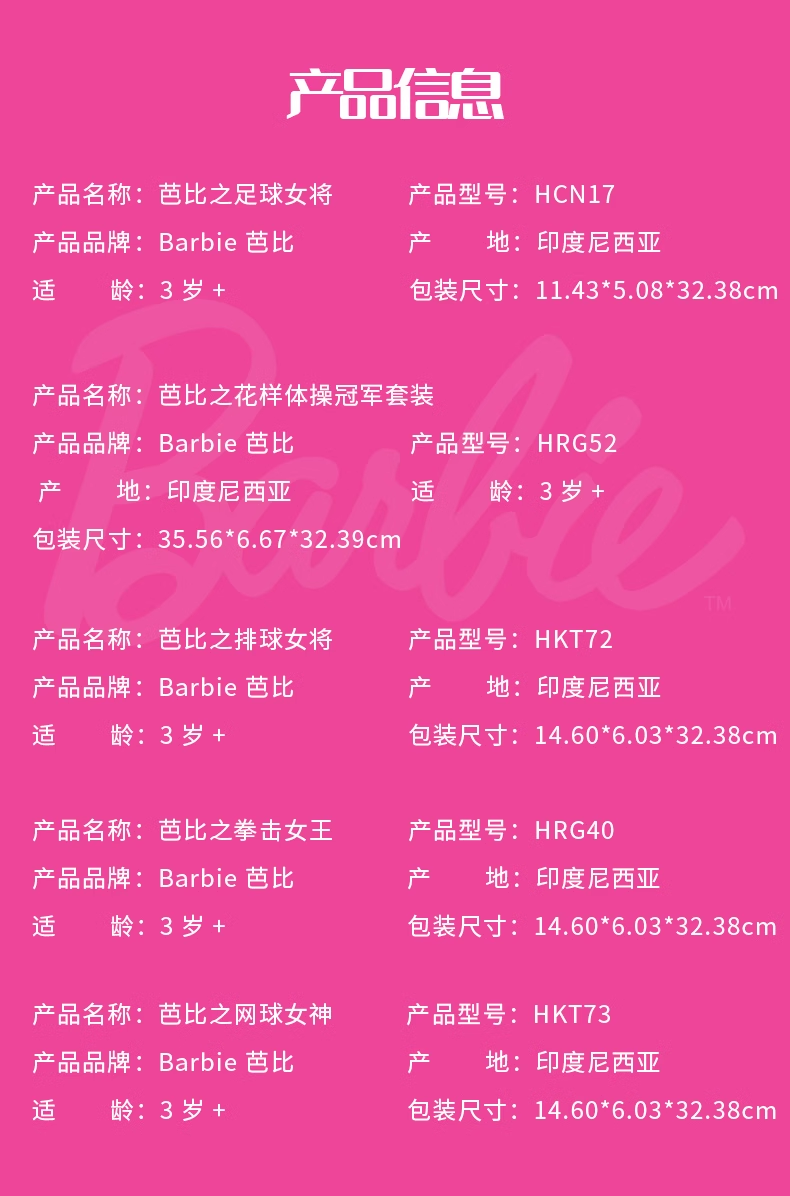 美泰 芭比运动系列 网球&拳击