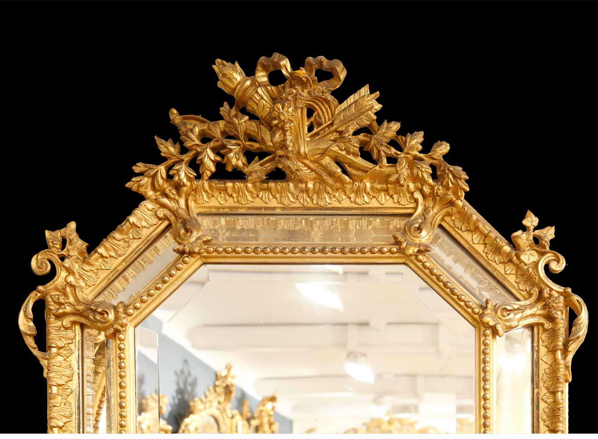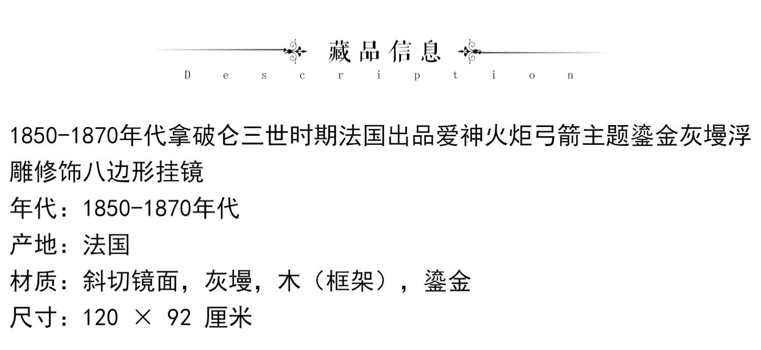 独角鹿西洋古董法国爱神火炬弓箭主题鎏金灰墁浮雕修饰八边形挂镜