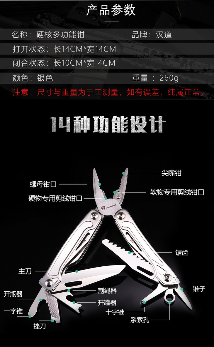 汉道【硬核多功能钳】战术多功能钳子折叠组合edc小刀工具野营求生装备万用工具钳