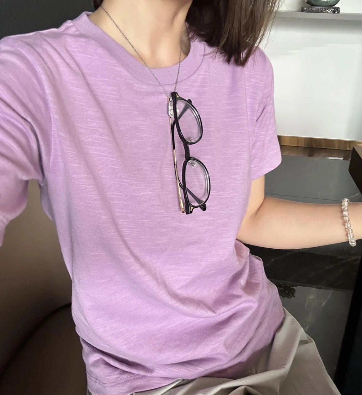 秋瓷炫同款 纯元 AMV圆领短袖T恤 竹节棉短袖TEE 法式慵懒