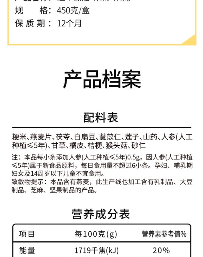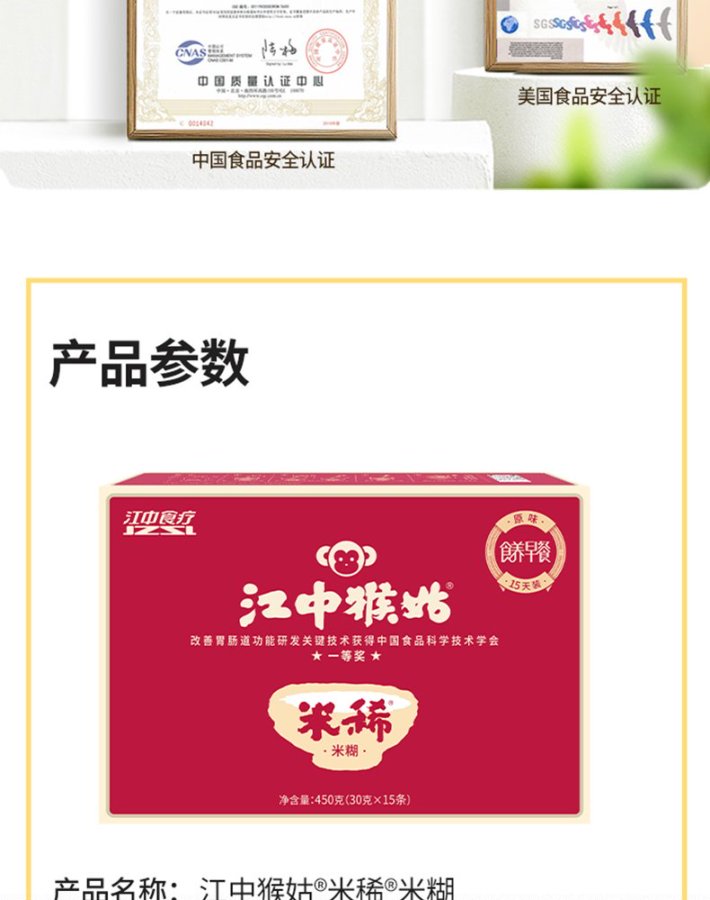 江中猴姑早餐米稀 450g/盒