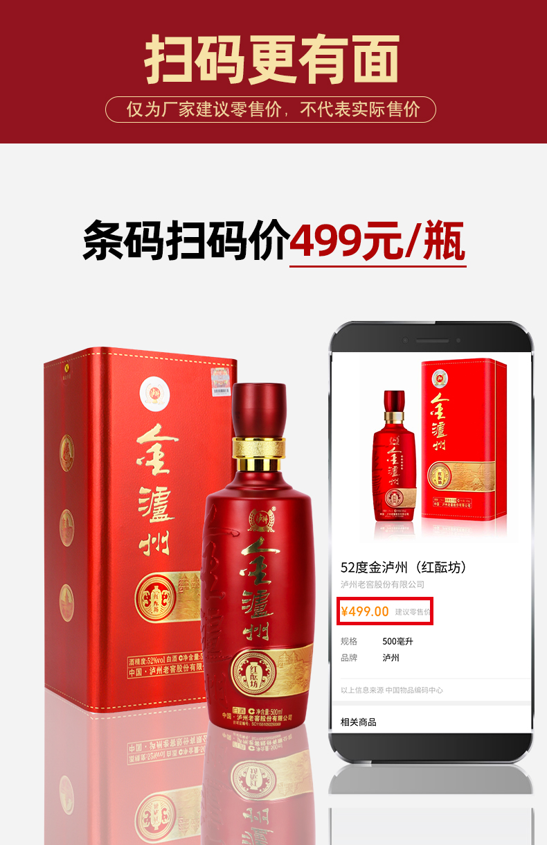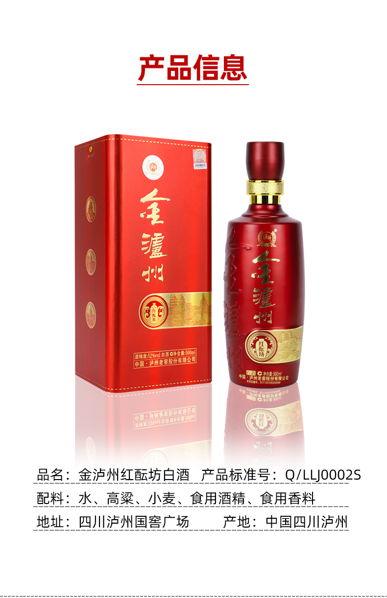 [泸州老窖金泸州红酝坊]52度-500ml*6瓶 高度白酒整箱特价