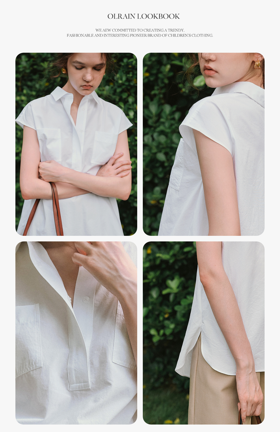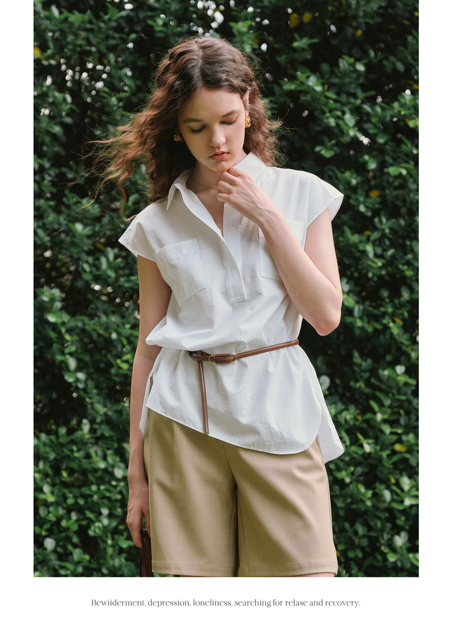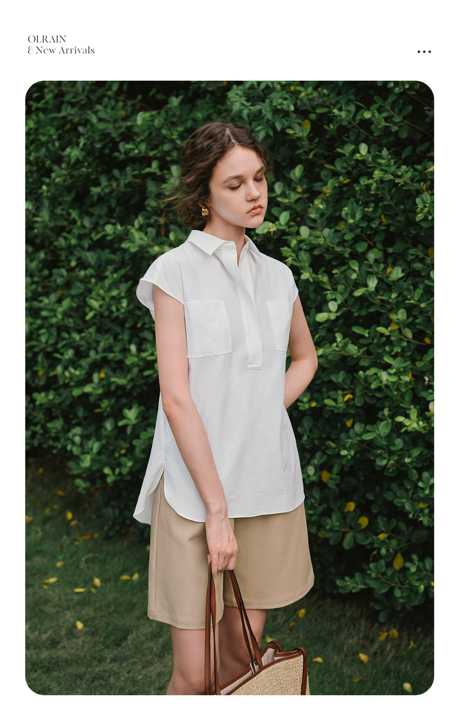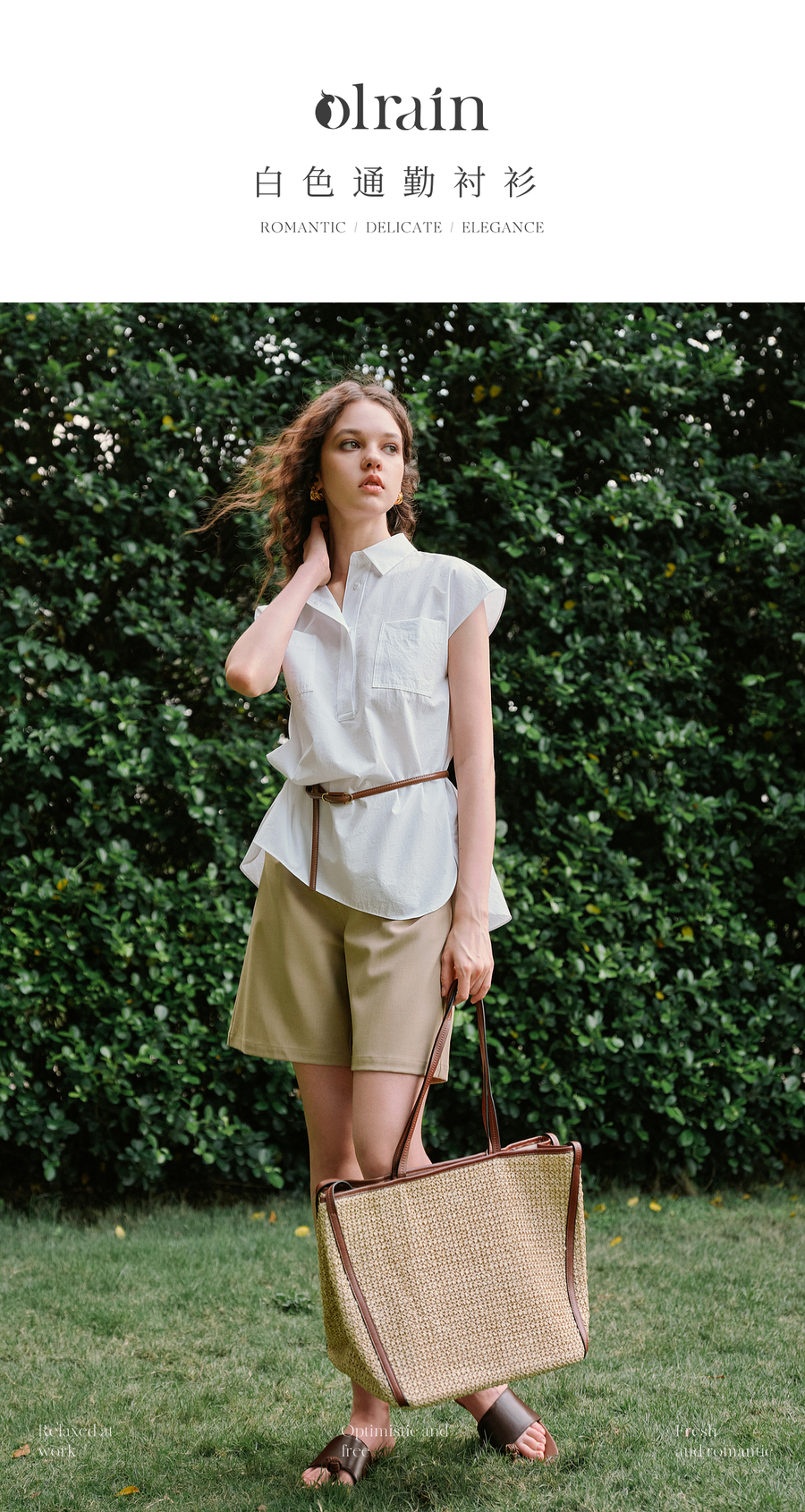 OLrain欧芮儿白色通勤衬衫2025夏季新款休闲宽松弧形开叉下摆设计