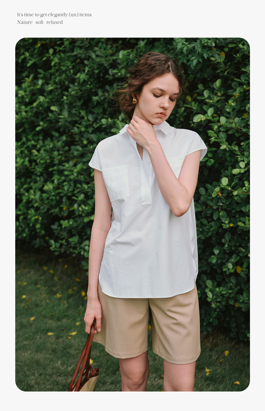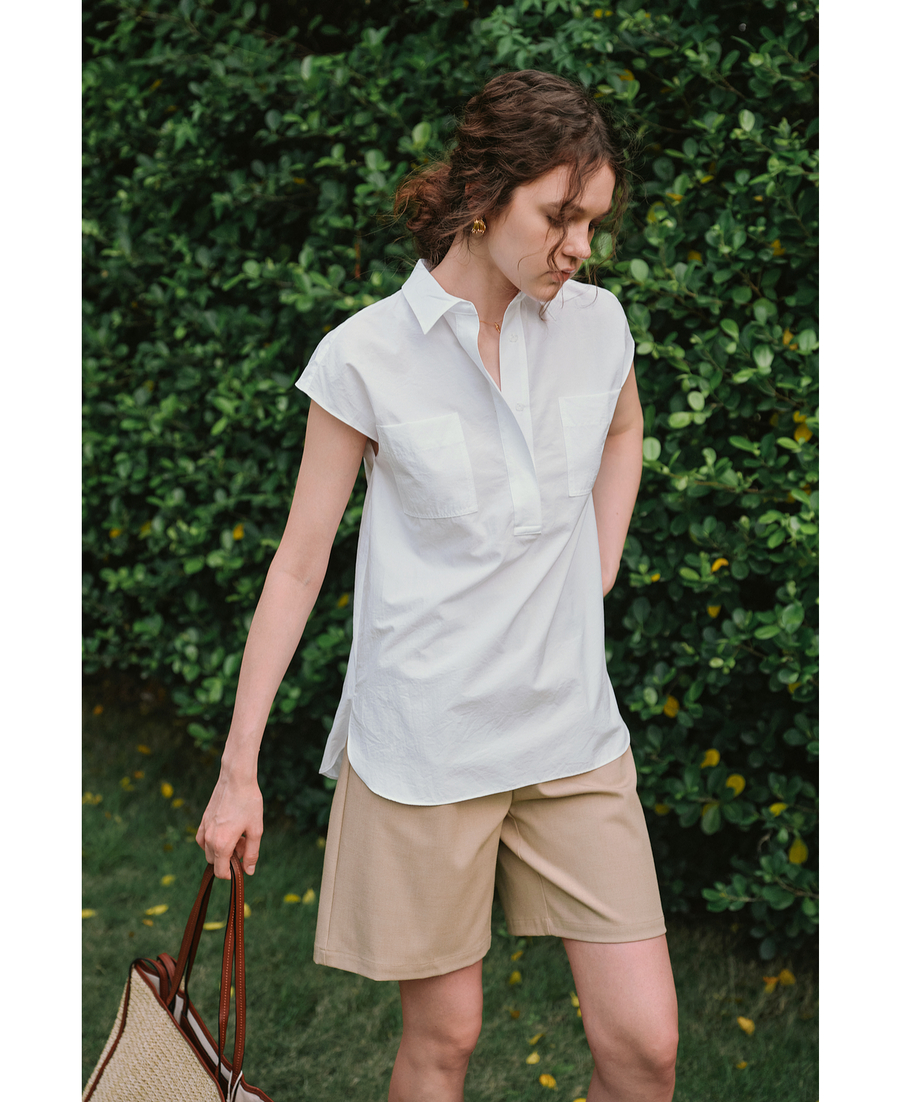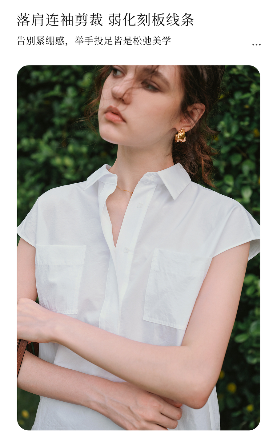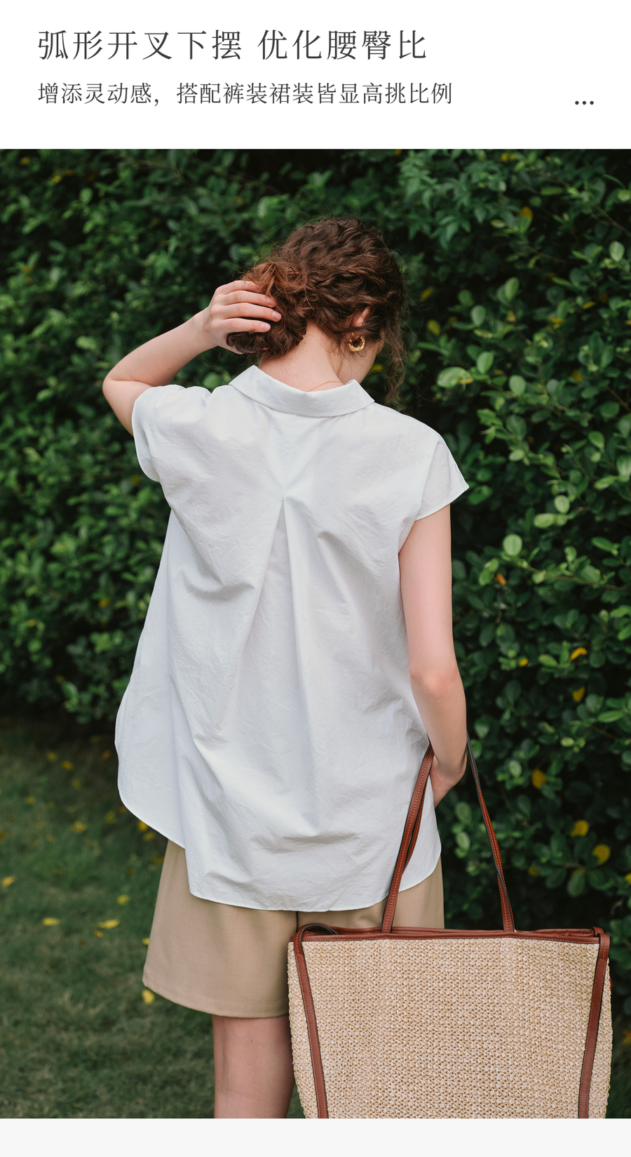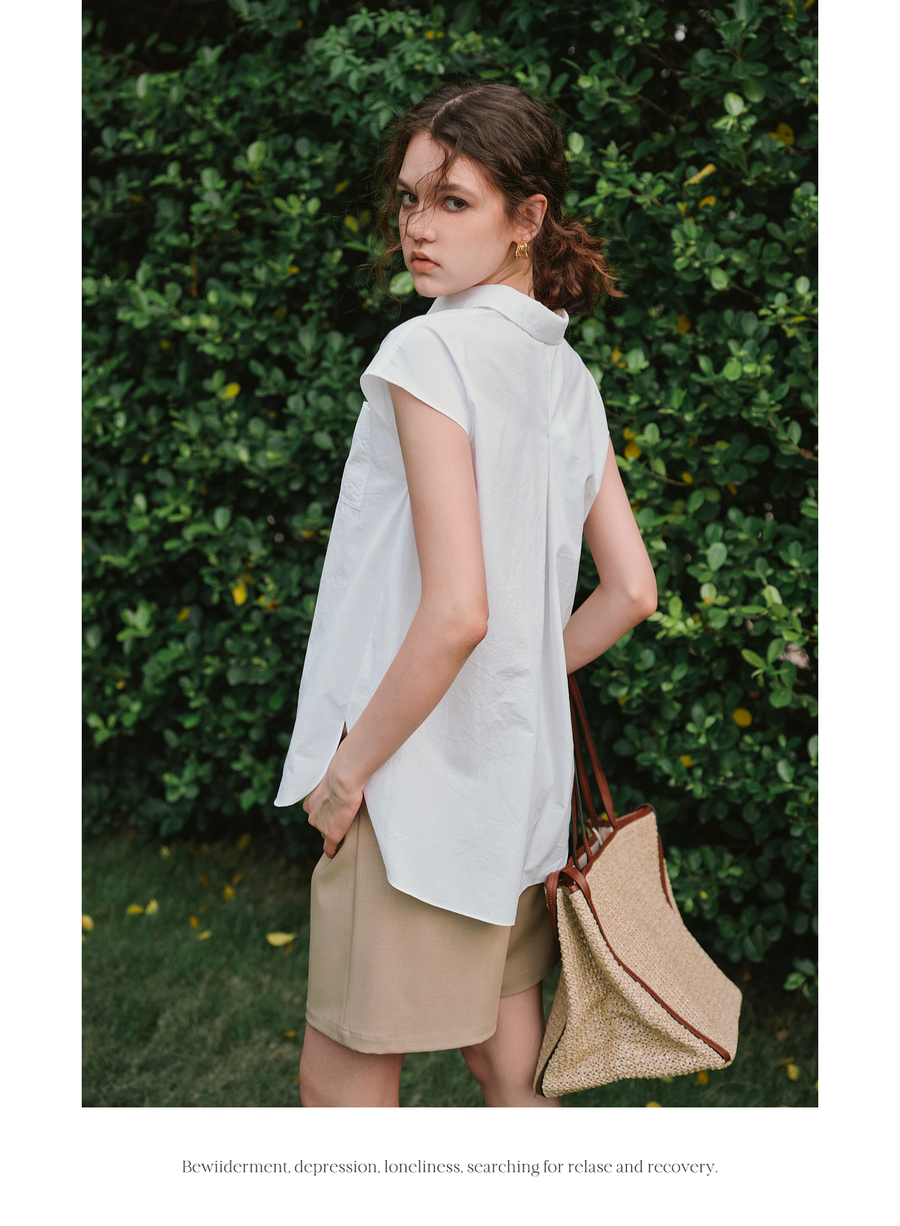 OLrain欧芮儿白色通勤衬衫2025夏季新款休闲宽松弧形开叉下摆设计