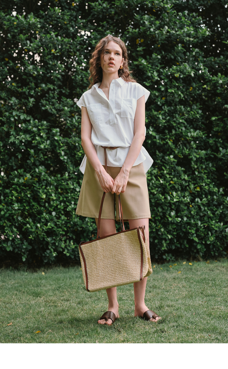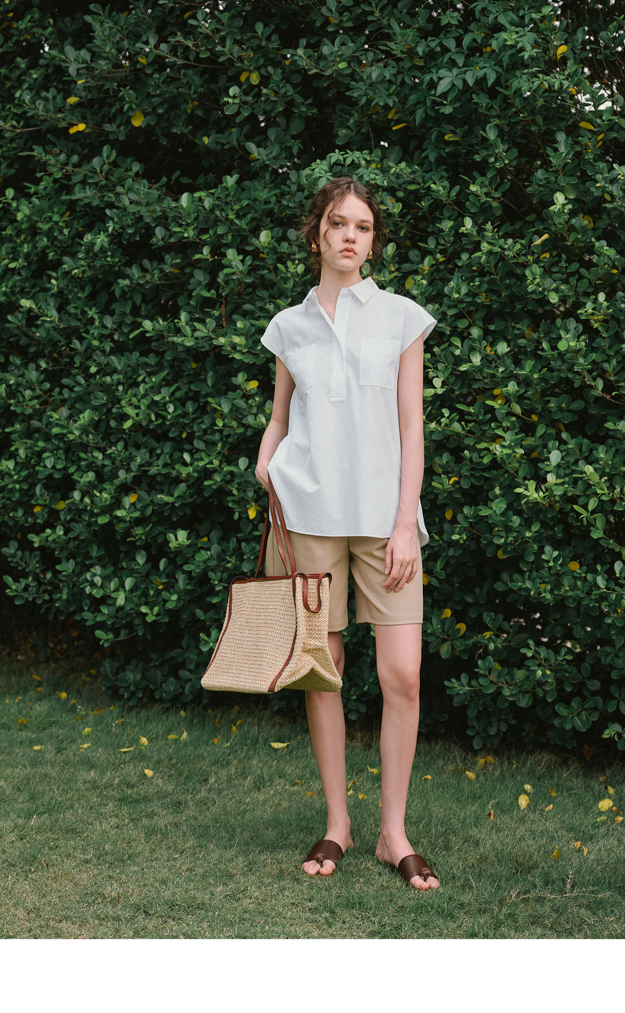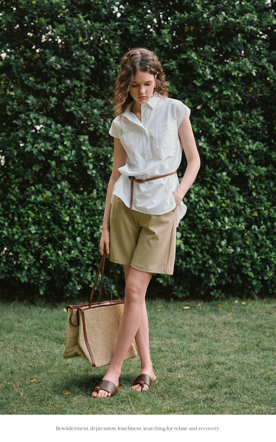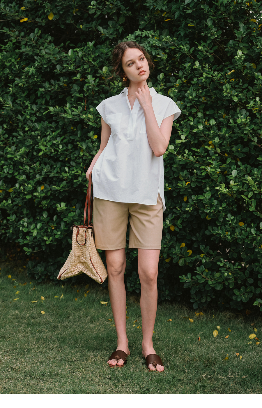 OLrain欧芮儿白色通勤衬衫2025夏季新款休闲宽松弧形开叉下摆设计
