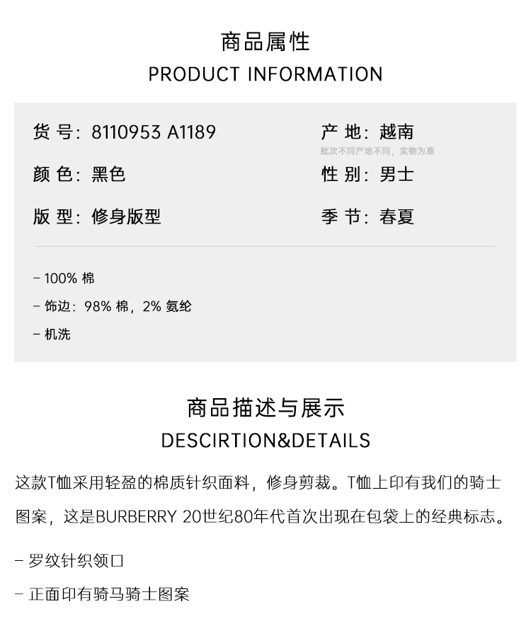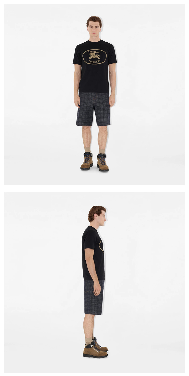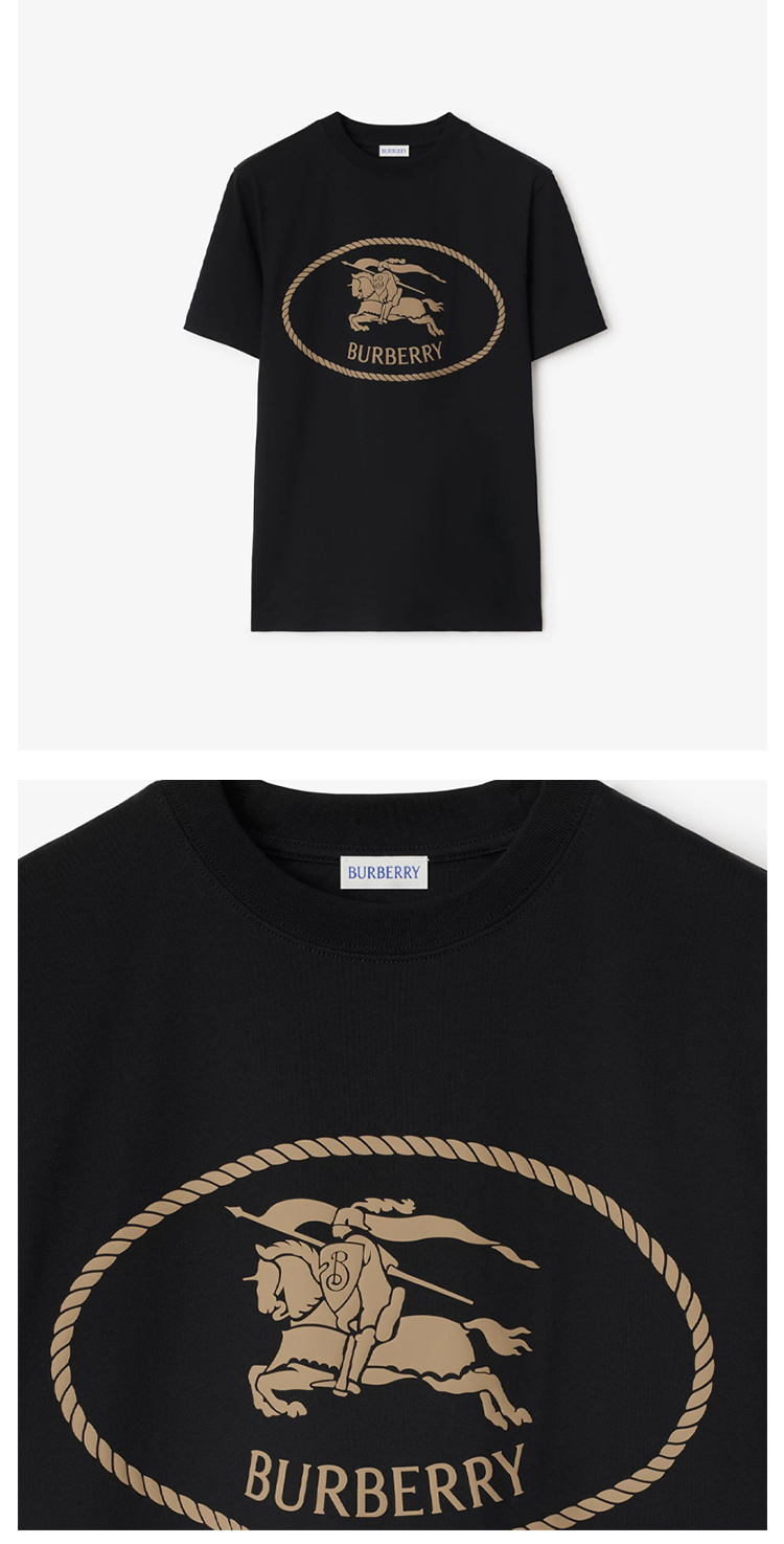BURBERRY 巴宝莉 男士马术骑士印章印花棉质圆领短袖T恤 黑色 8110953 A1189