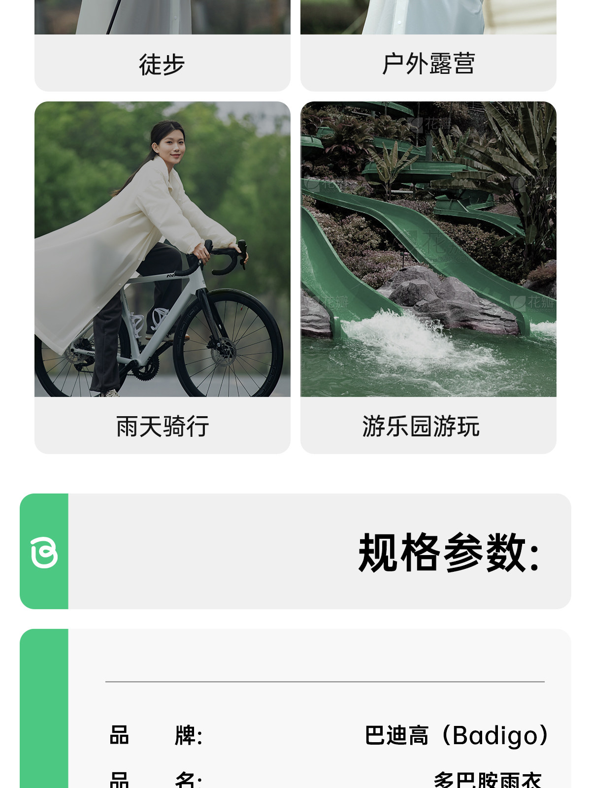 巴迪高雨衣 成人户外登山雨披长款全身防暴雨徒步旅行加厚便携雨衣