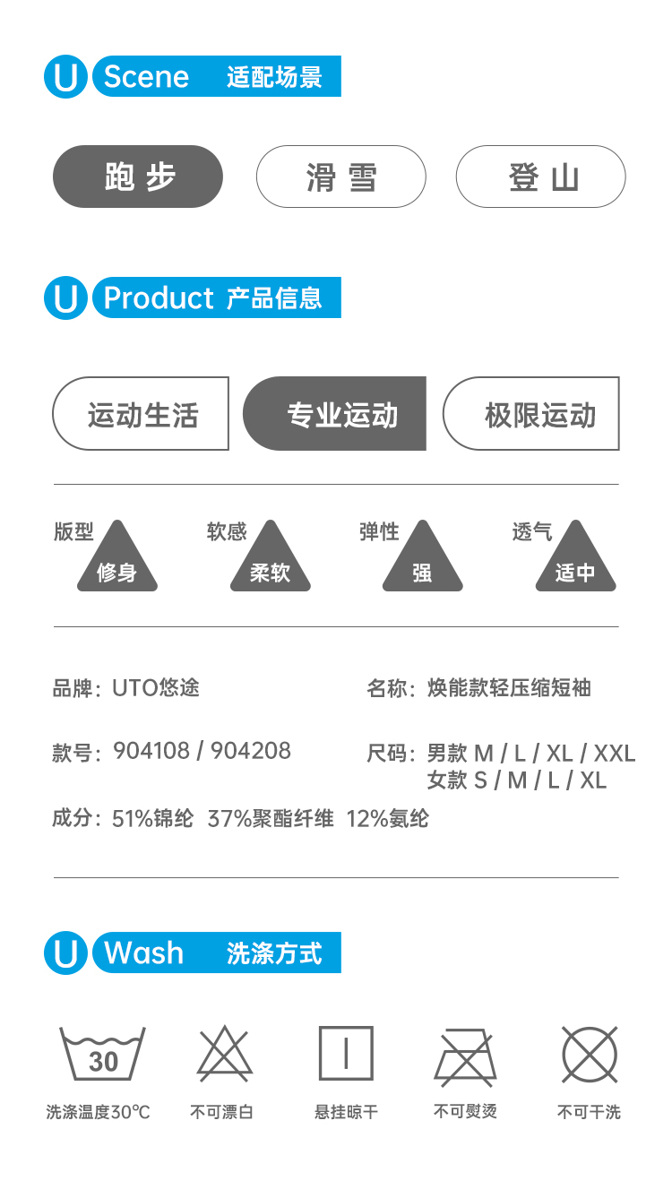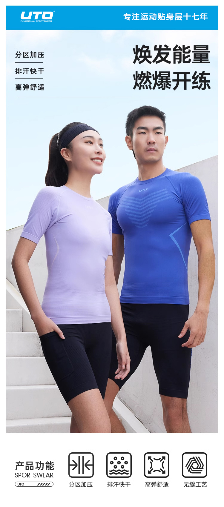 UTO/悠途轻压缩速干短袖夏季轻薄修身男女同款户外健身吸湿排汗
