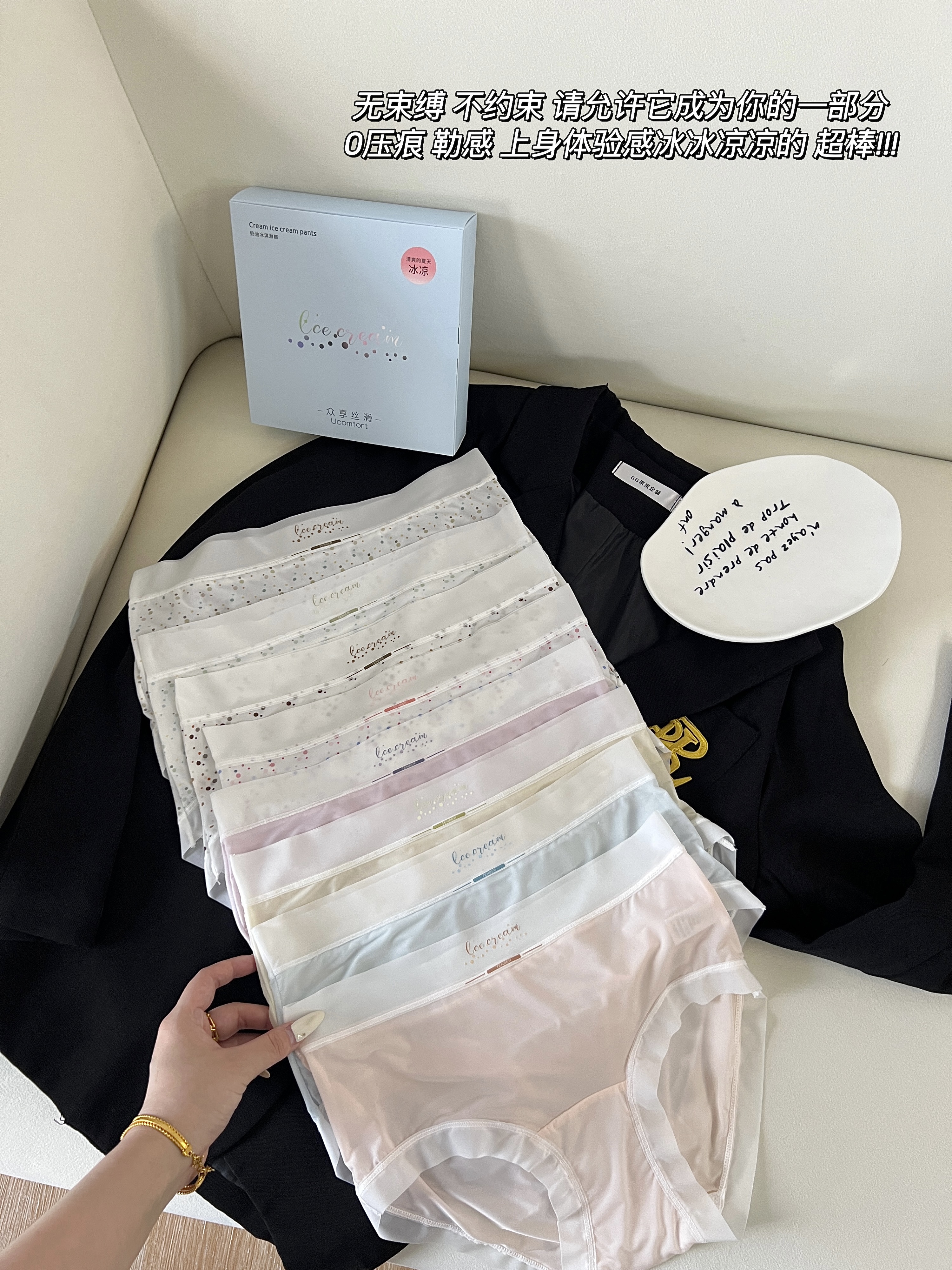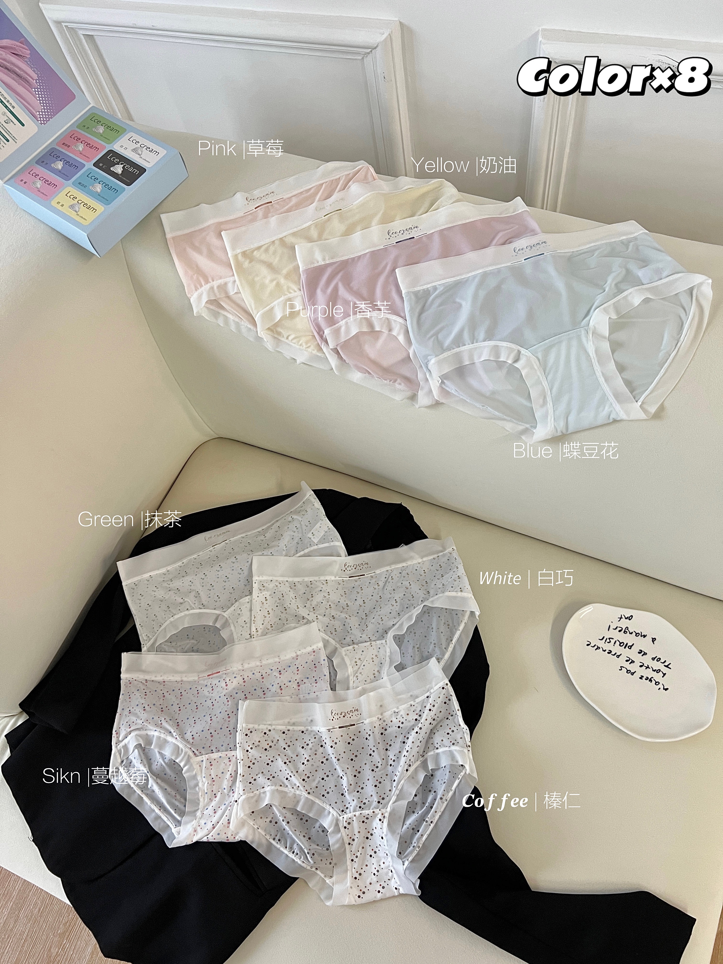 轻!薄!透!妥妥拿捏!【特妮娜 奶油冰淇淋内裤】8条装盲盒包装 加长透气裆部 100A抗菌 无痕触感冰冰凉凉 0压痕 勒感 上身体验感冰冰凉凉的