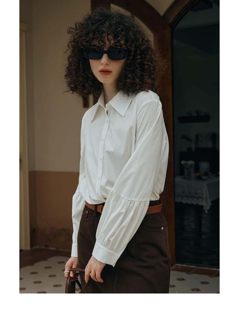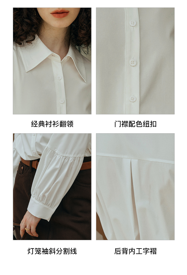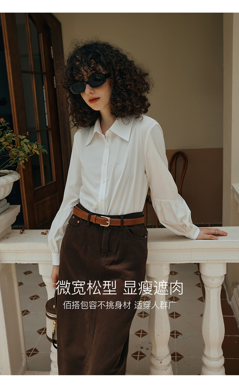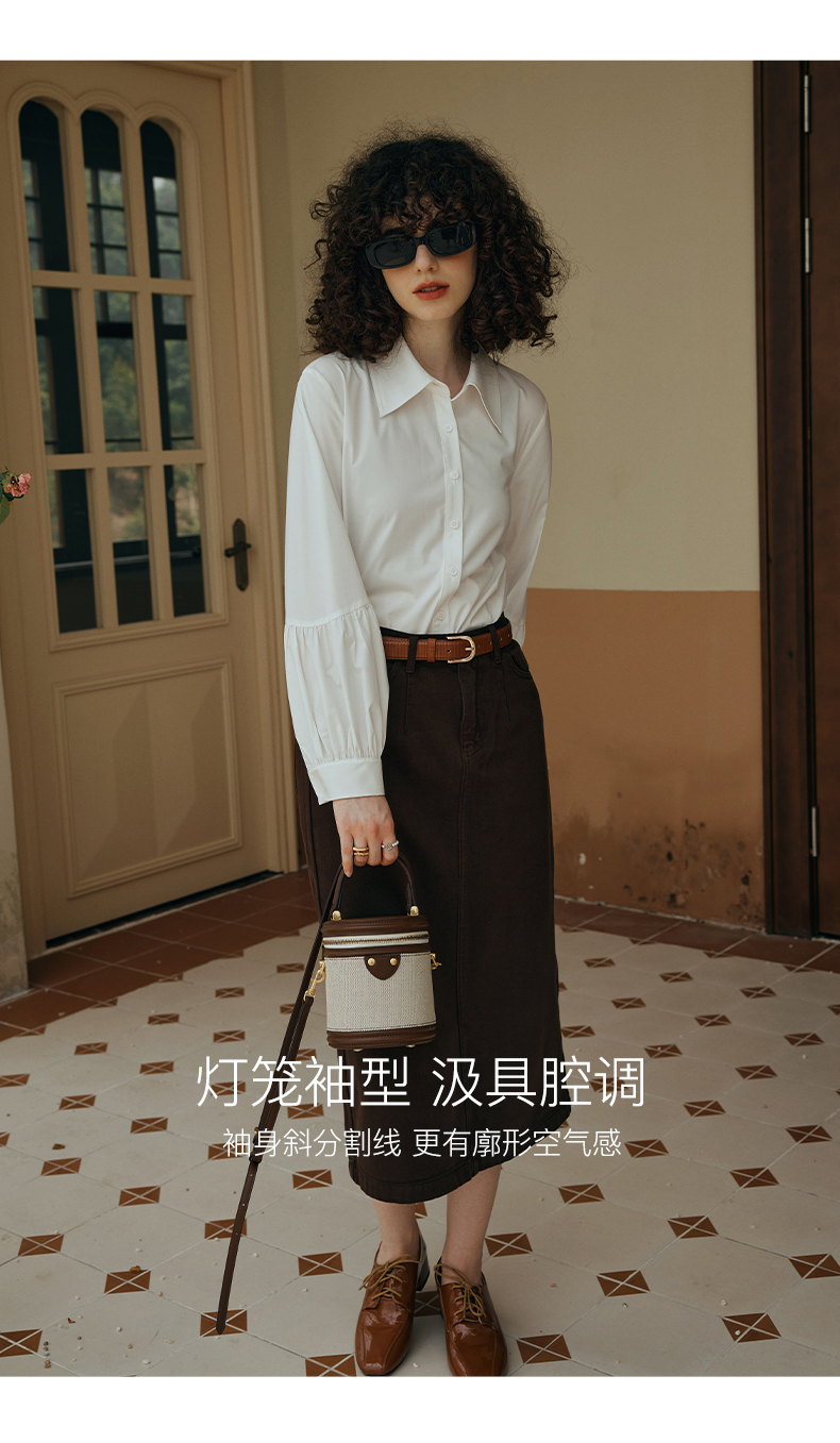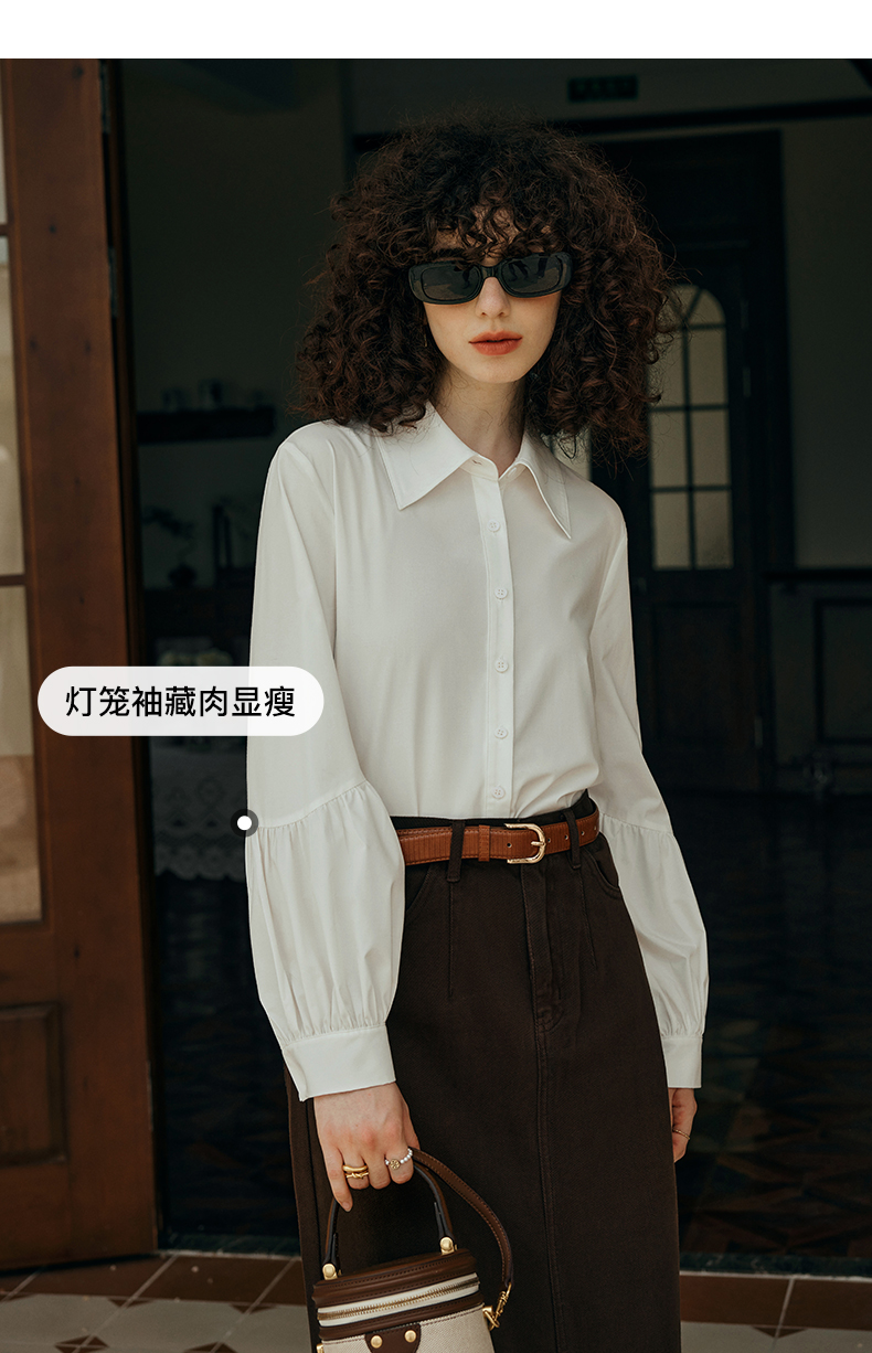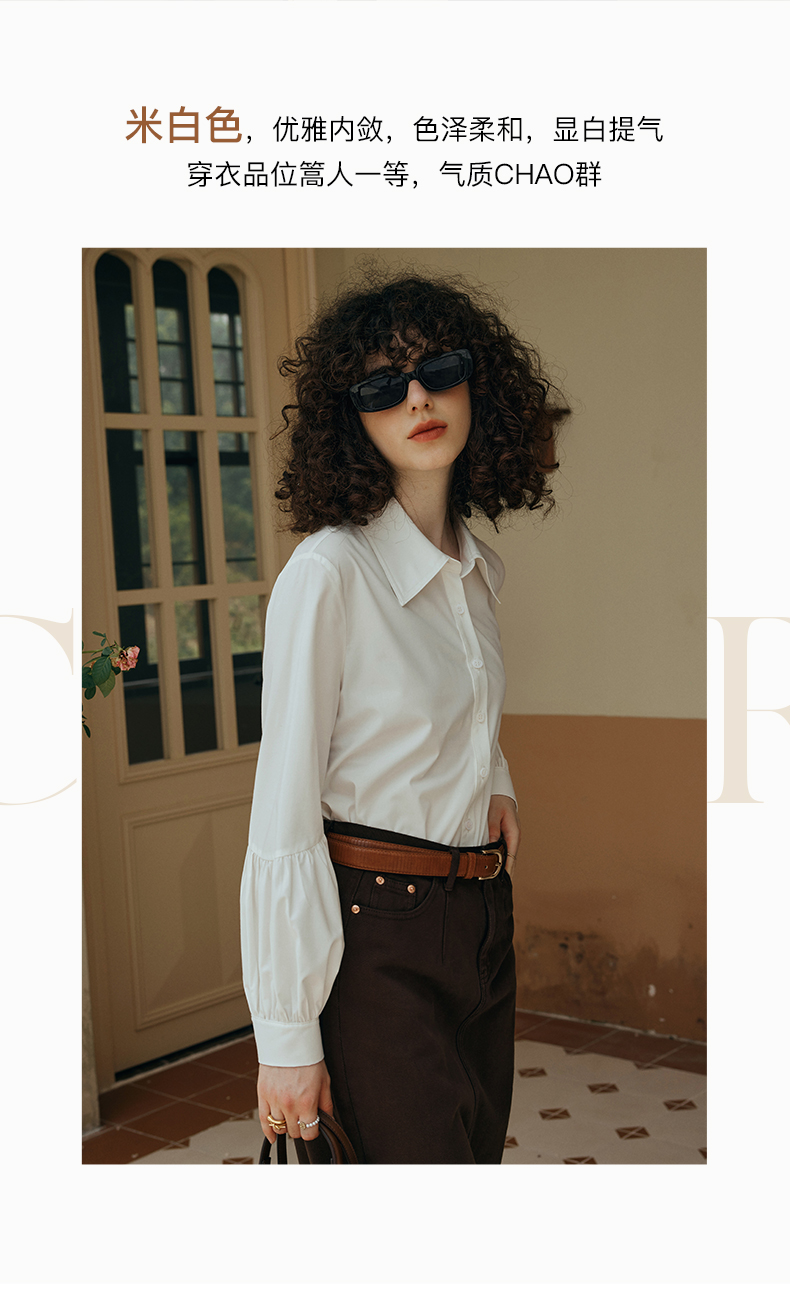 OLrain欧芮儿米白色衬衫女初秋2023年新款宽松复古灯笼袖休闲衬衣