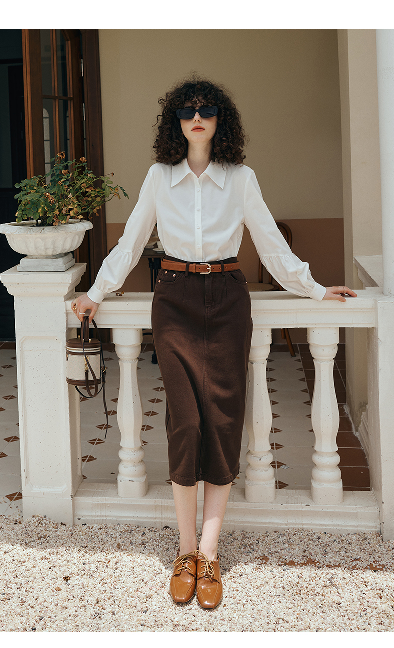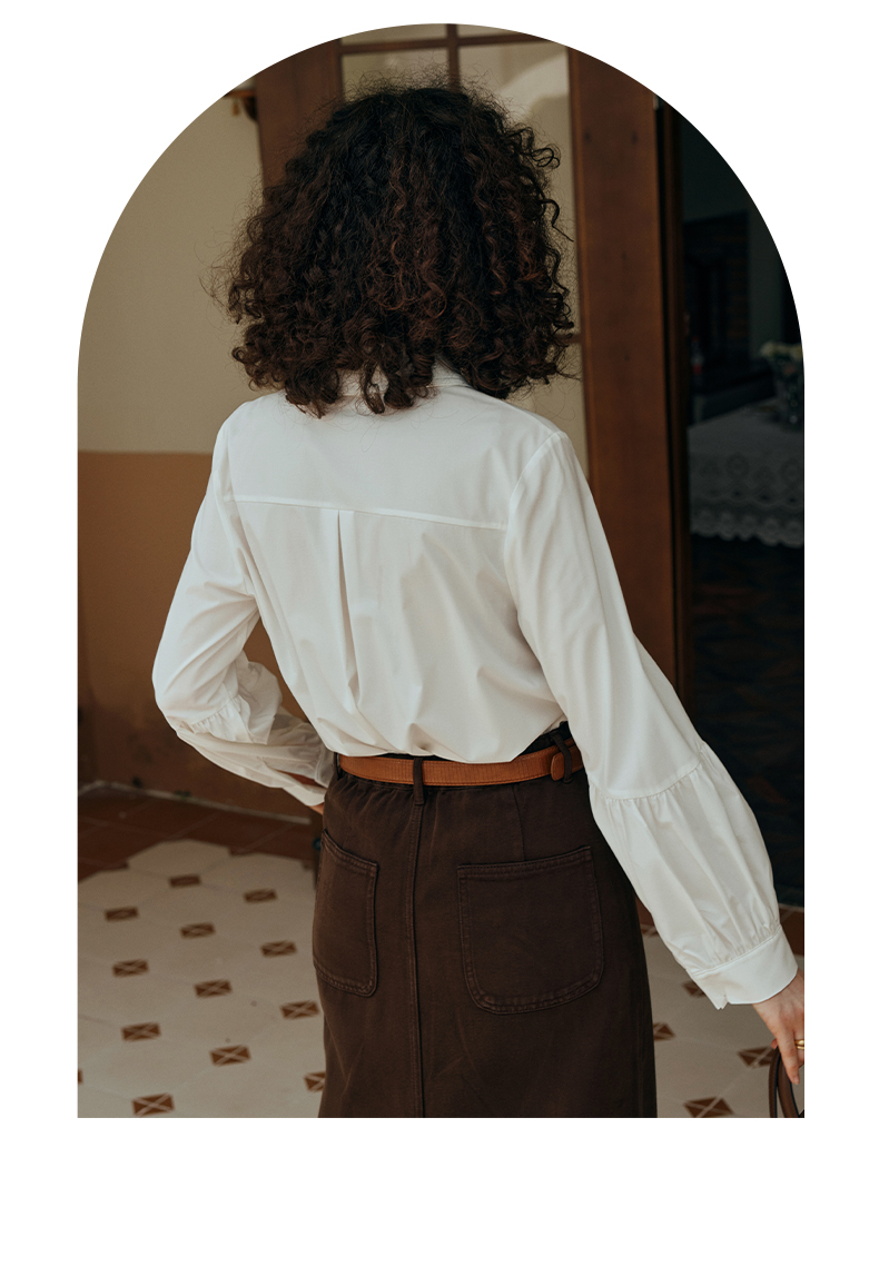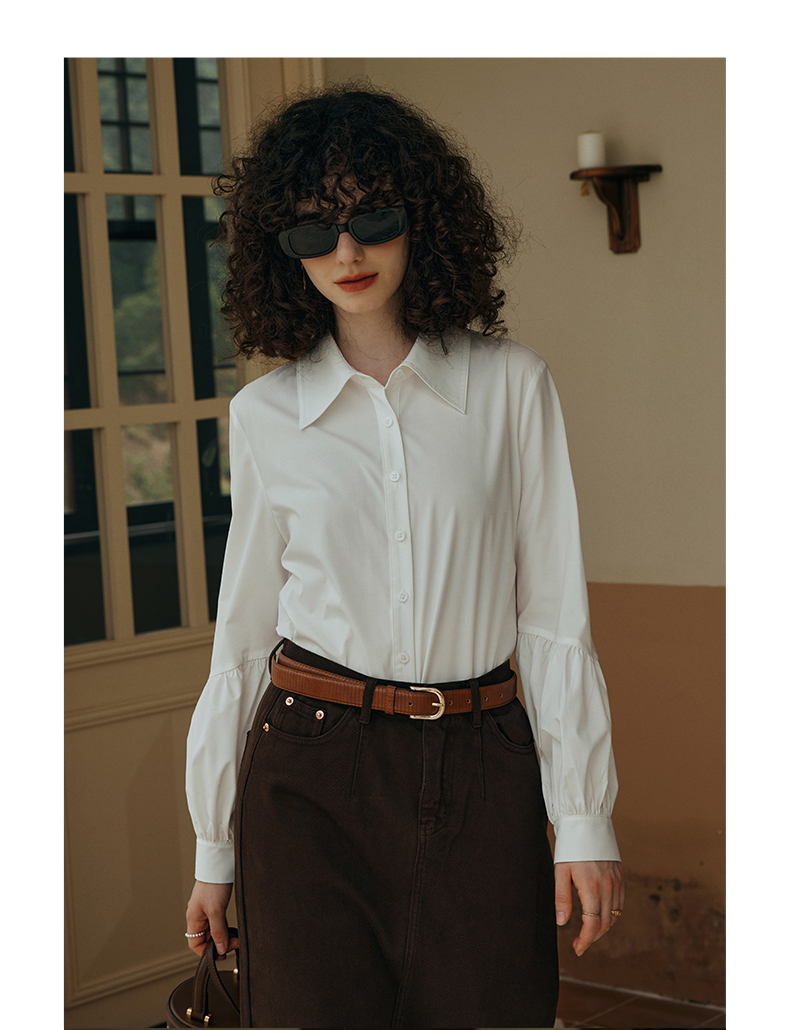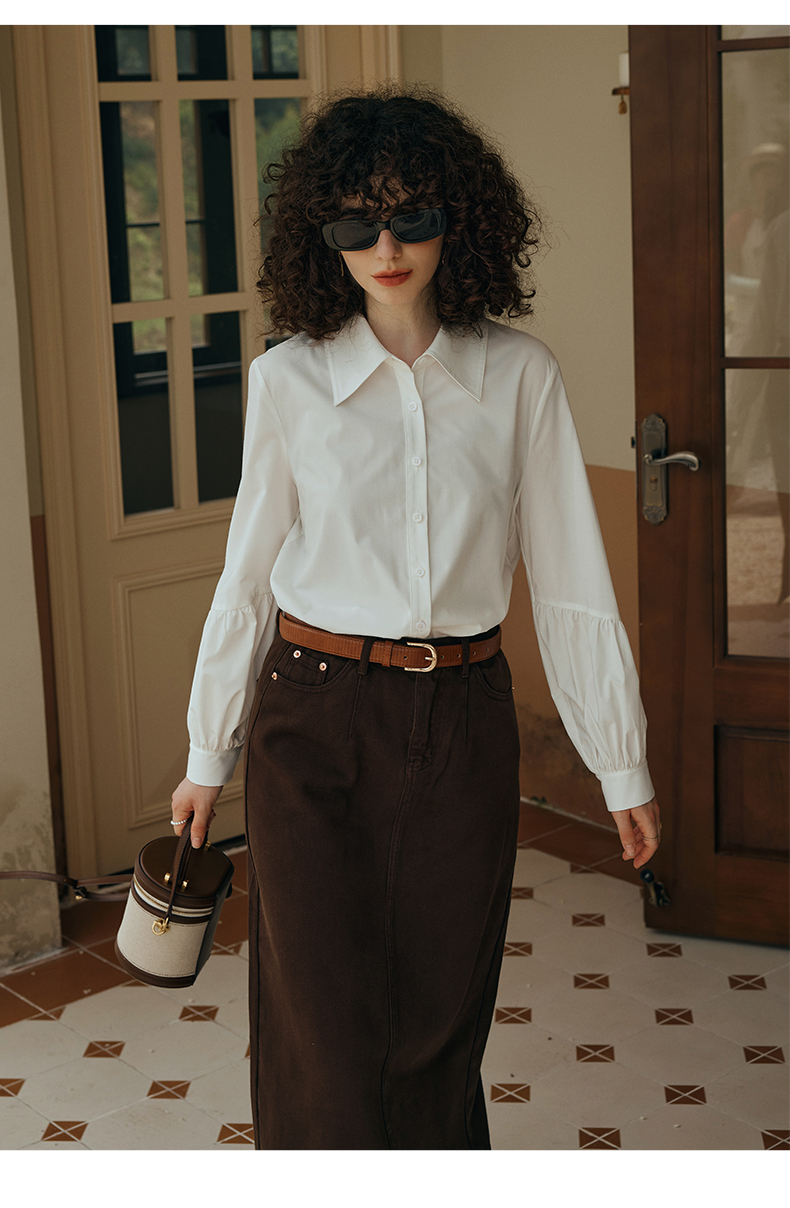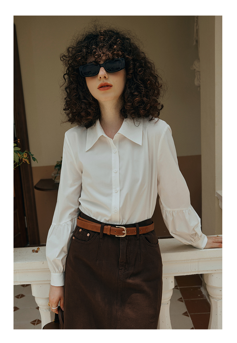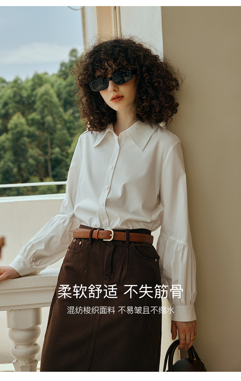 OLrain欧芮儿米白色衬衫女初秋2023年新款宽松复古灯笼袖休闲衬衣