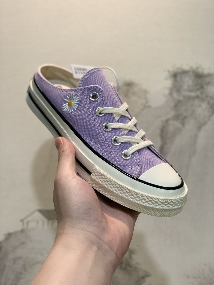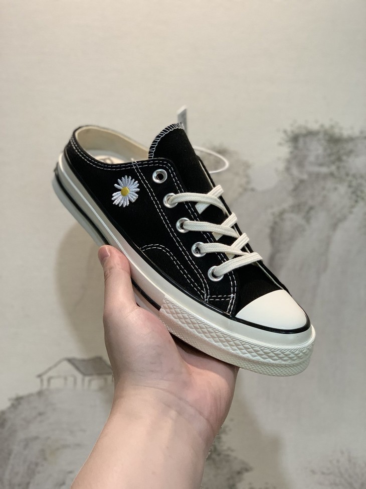 男女鞋硫化工艺#聚氨酯硅蓝PU中底❗权志龙品牌🌼 Converse Chuck Taylor 1970一脚蹬系列复古三星标低帮休闲运动半拖露跟板鞋“黑白雏菊刺绣”167948C