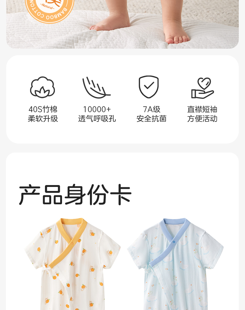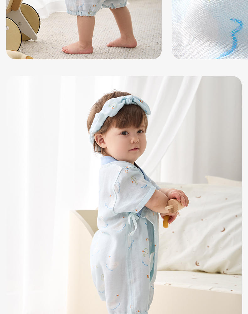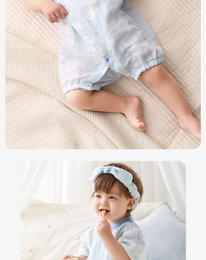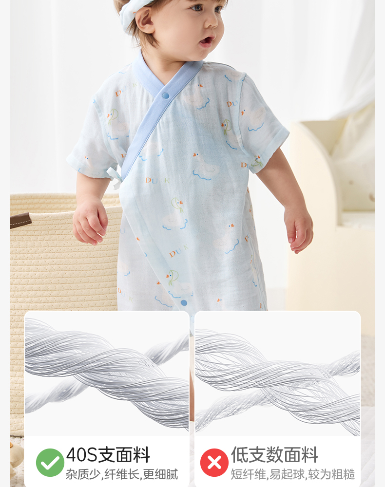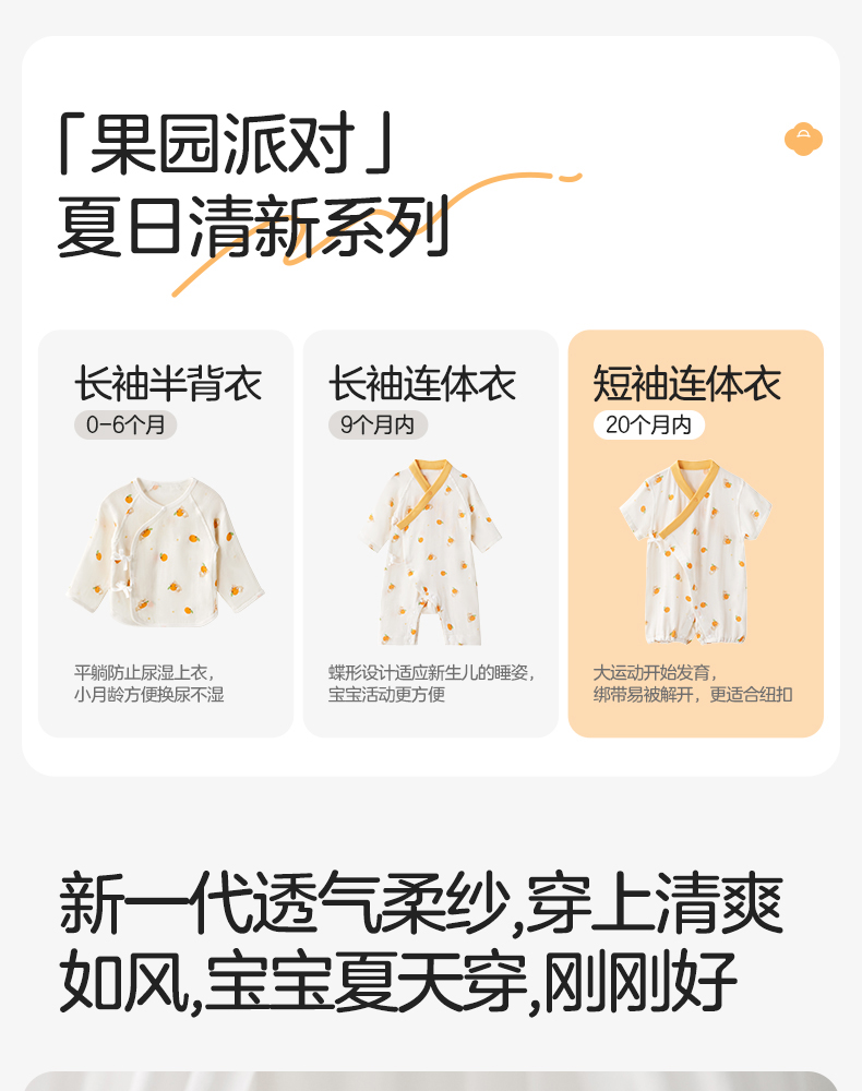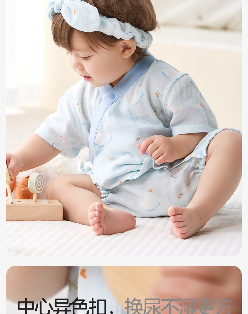 【任选两件,买一送一】婴儿夏季连身衣短袖薄款斜襟爬服
