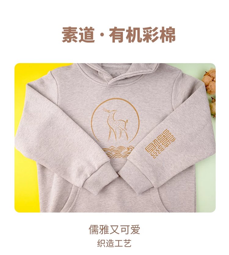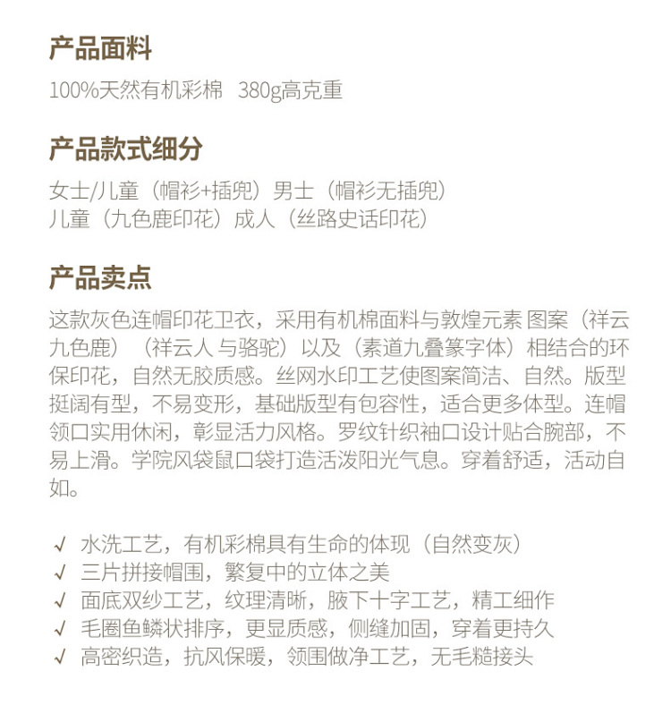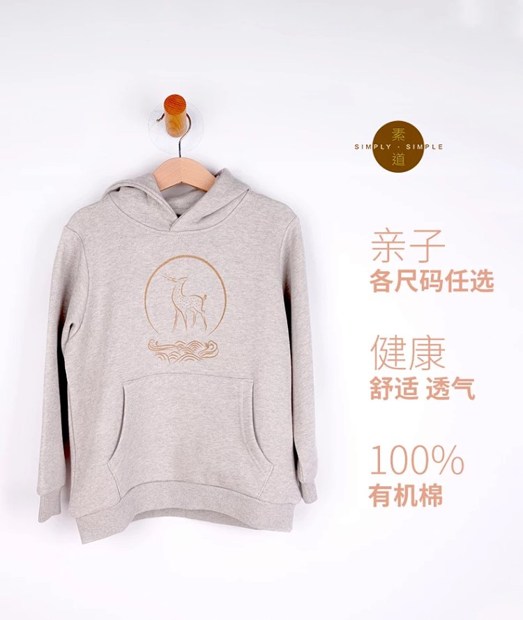 有机棉灰色连帽卫衣 休闲针织帽衫 亲子情侣款 儿童成人男女运动衣 适合春秋季外穿/冬季打底的基础款卫衣 素道敦煌天然有机彩棉织造 舒适安全健康 [漳州仓]