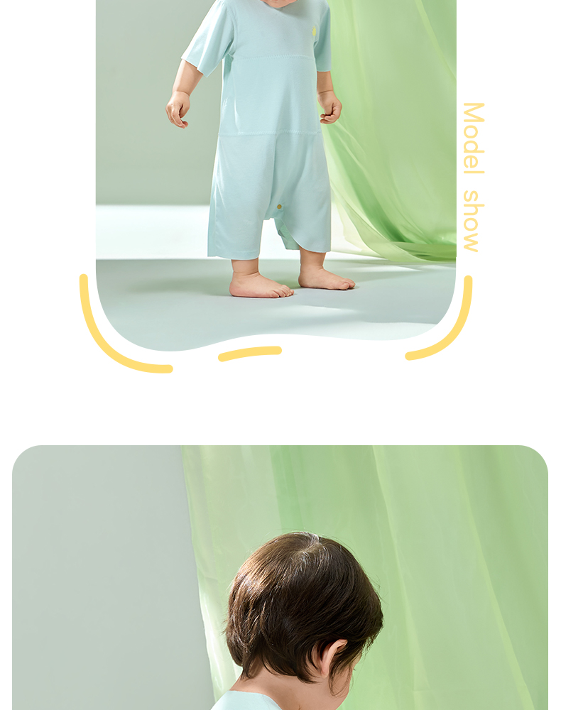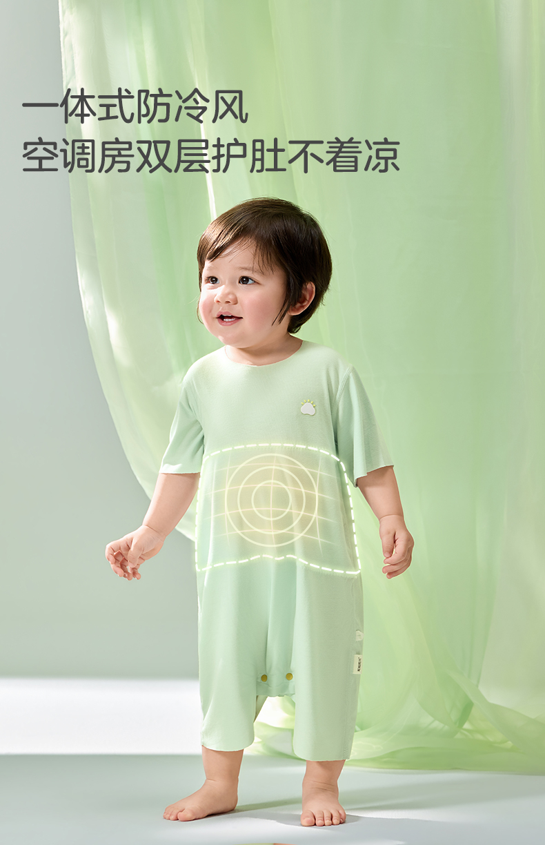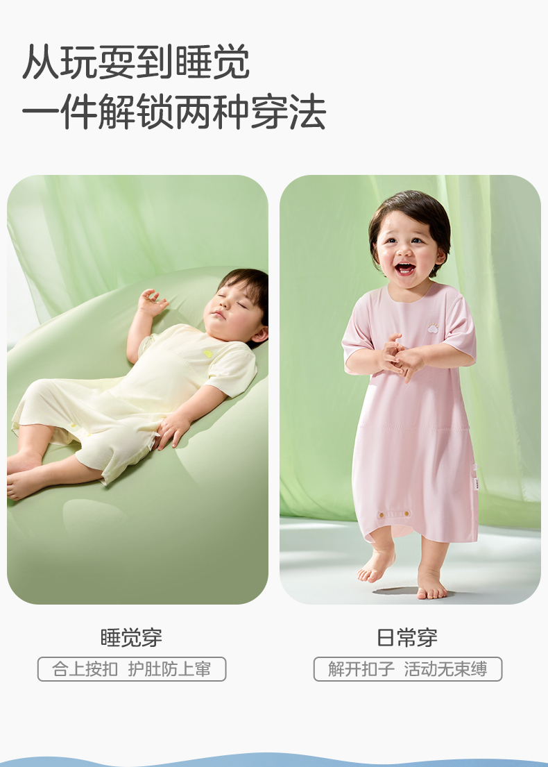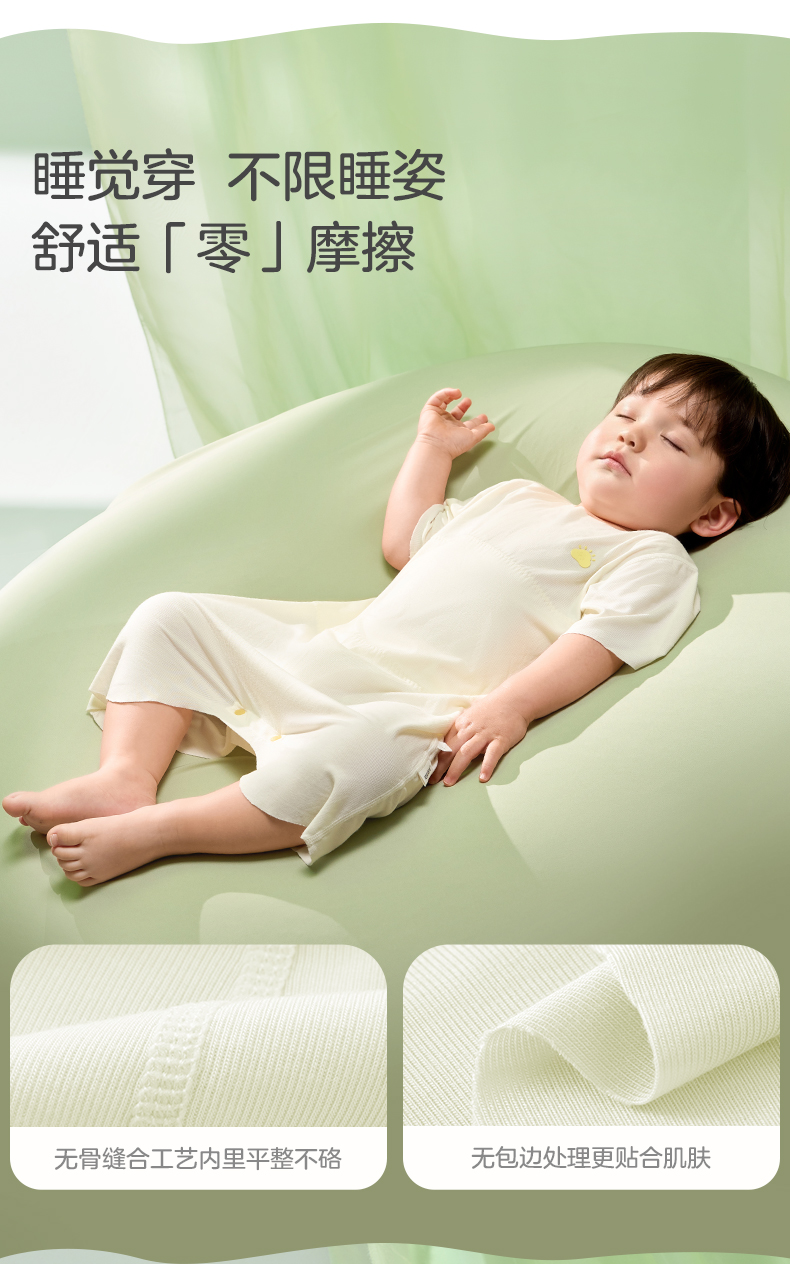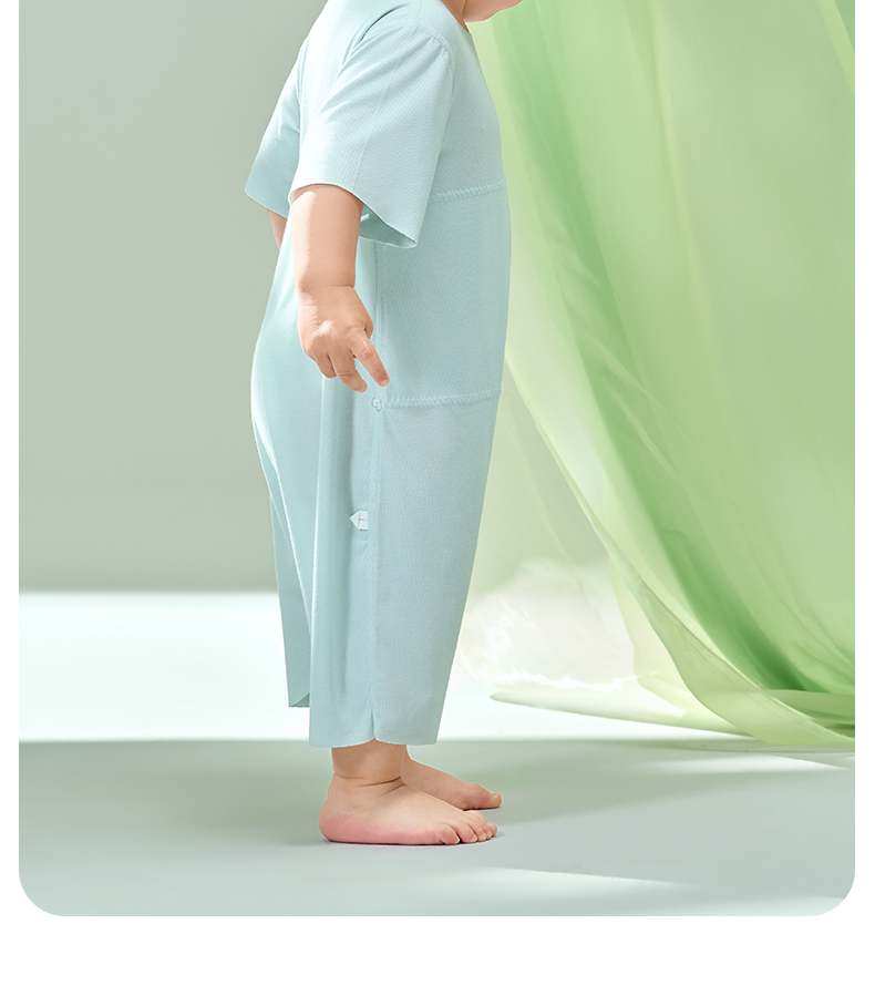 粒粒阳光男女宝短袖睡衣儿童爬服夏季随心裁凉感一体睡衣