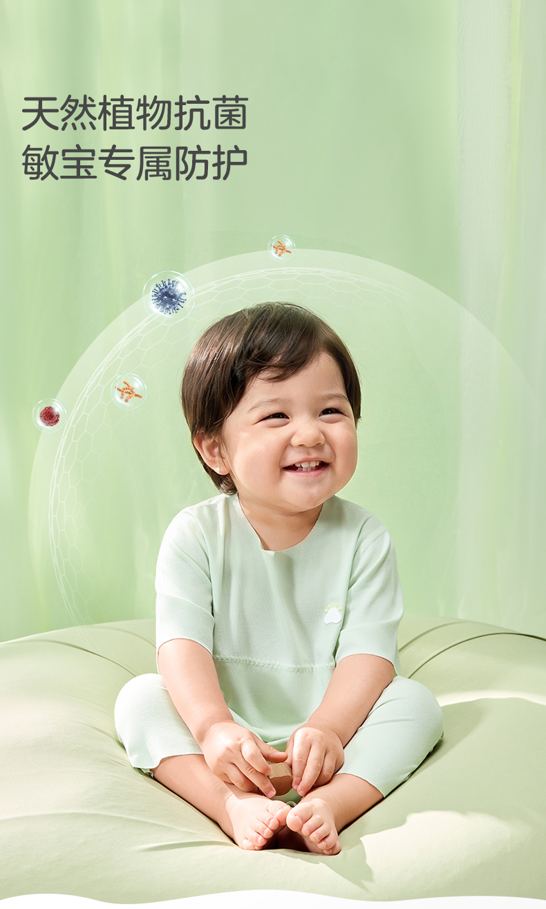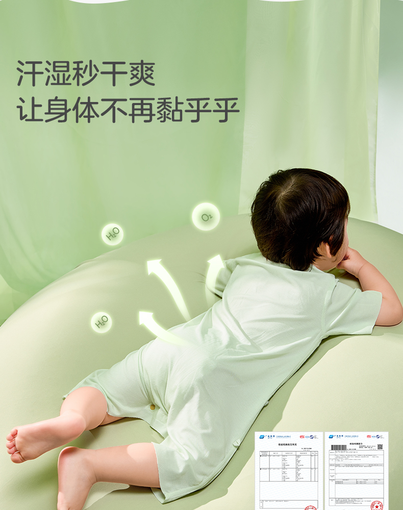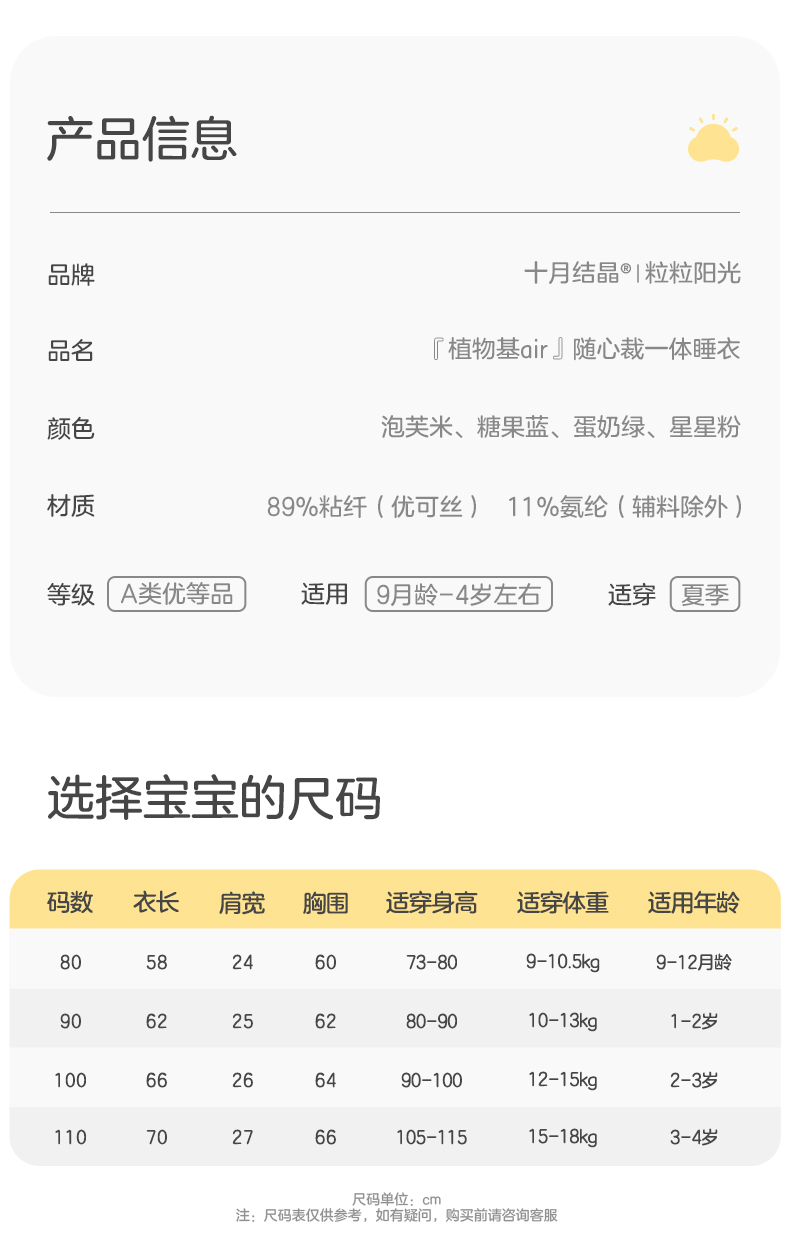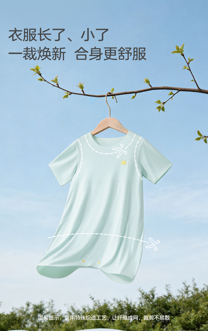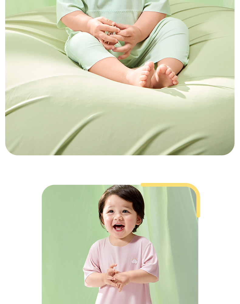 粒粒阳光男女宝短袖睡衣儿童爬服夏季随心裁凉感一体睡衣